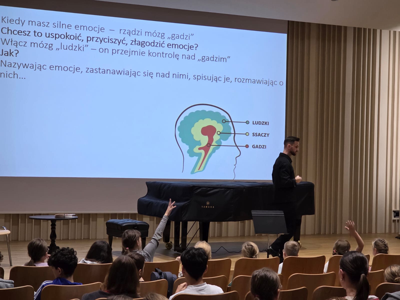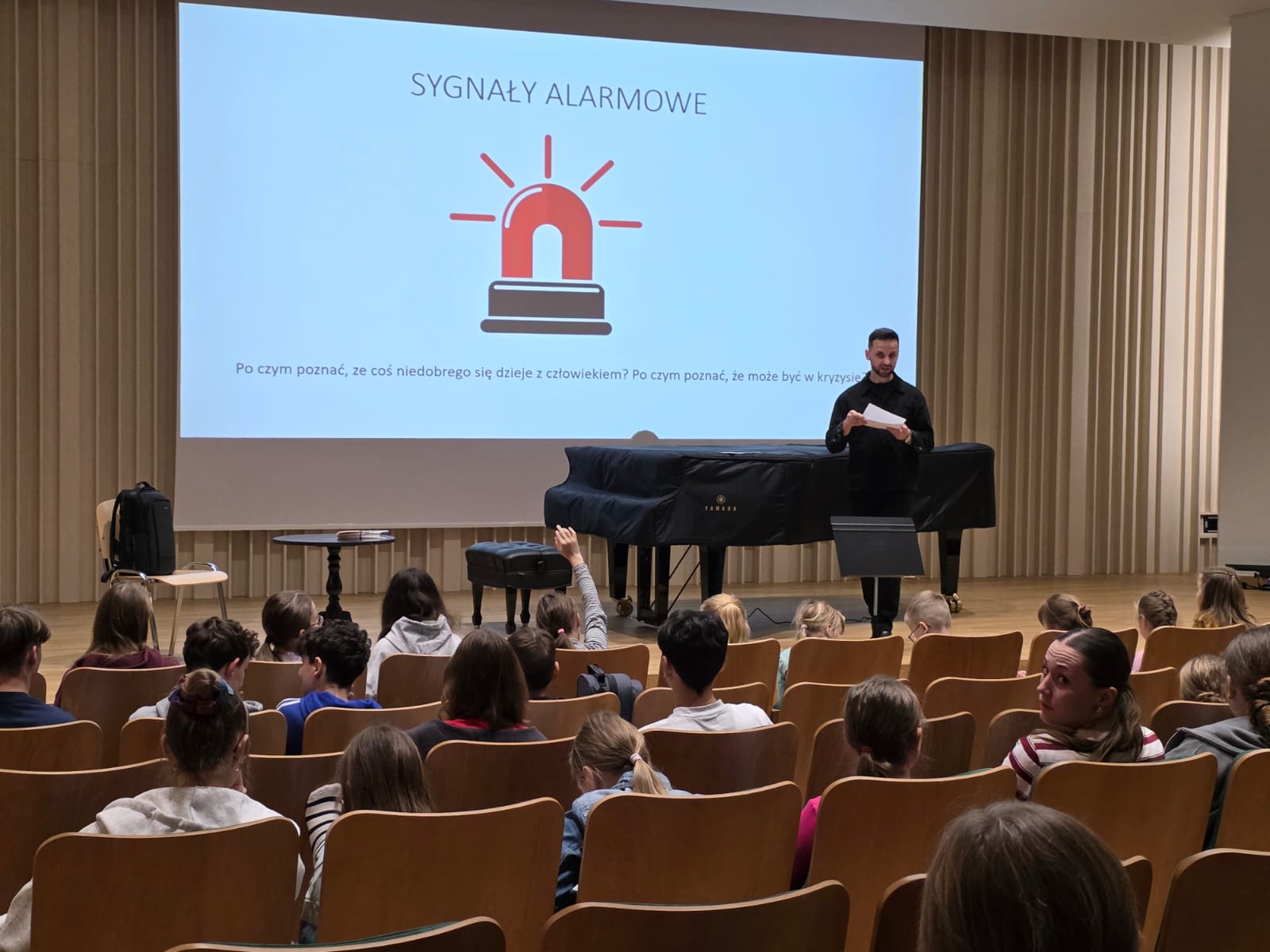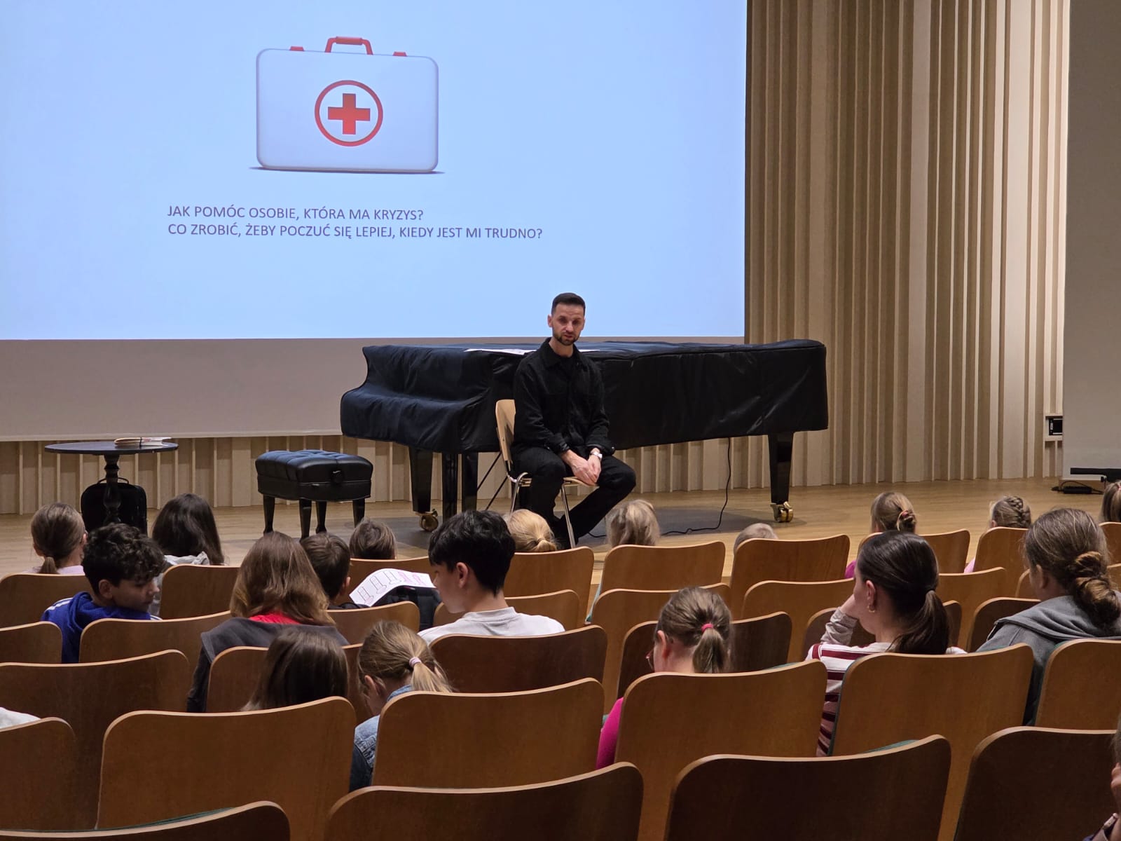W dniu 27 listopada 2025 r. w sali koncertowej naszej szkoły odbyły się warsztaty psychologiczne skierowane do uczniów, poświęcone tematyce zdrowia psychicznego i udzielania wsparcia rówieśnikom w sytuacjach kryzysowych. Zajęcia poprowadził mgr Łukasz Tartas ze Specjalistycznej Poradni Psychologiczno-Pedagogicznej Centrum Edukacji Artystycznej w Gdańsku.