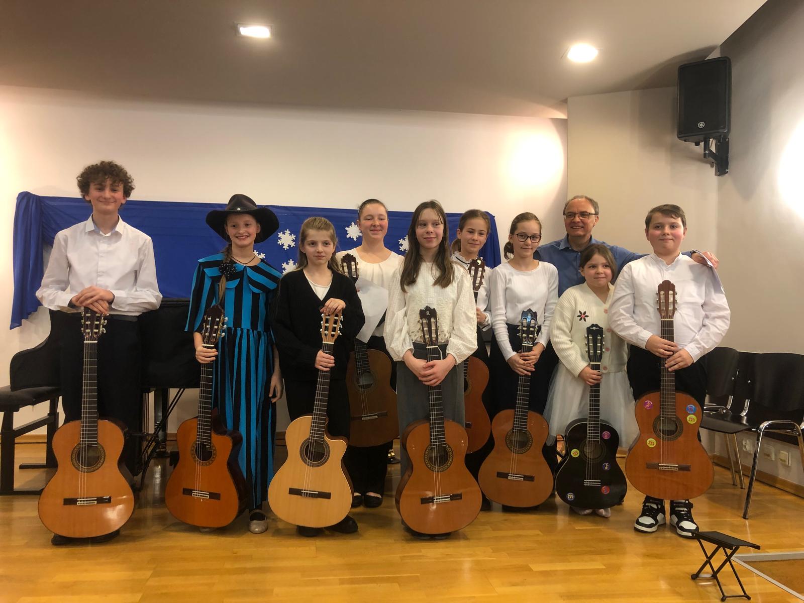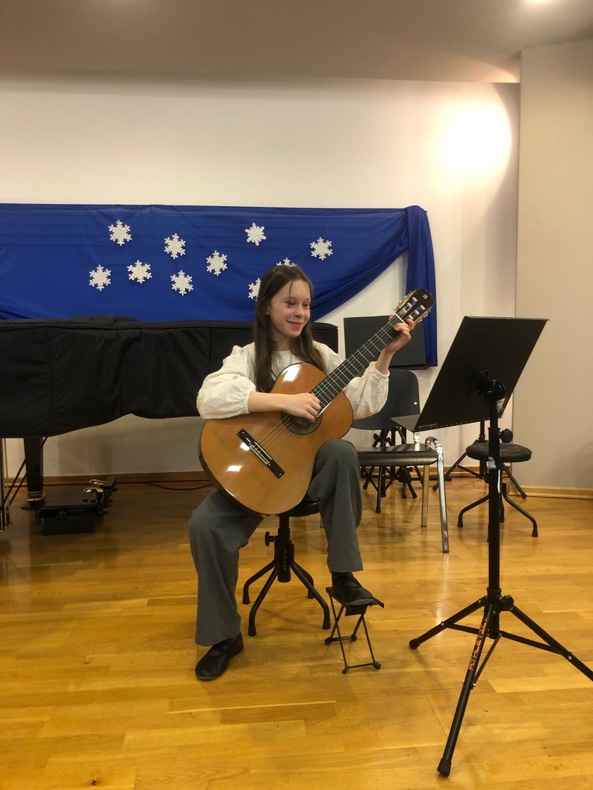 W piątek 24 stycznia 2025 r. w sali kameralnej szkoły odbył się koncert uczniów klasy gitary. Przed zgromadzoną publicznością wystąpili młodzi artyści przygotowani przez Pana Tadeusza Wirzbę. Koncert uczniów to zawsze fantastyczna okazja, by zobaczyć, jak młodzi muzycy rozwijają swoje umiejętności. Oczywiści zaprezentowali się fantastycznie. Atmosfera podczas koncertu uczniów klasy gitary była pełna ekscytacji i emocji, zarówno po stronie wykonawców, jak i widzów. Podczas takich występów czuć prawdziwą więź i radość z nauki muzyki. Młodym muzykom serdecznie gratulujemy!
