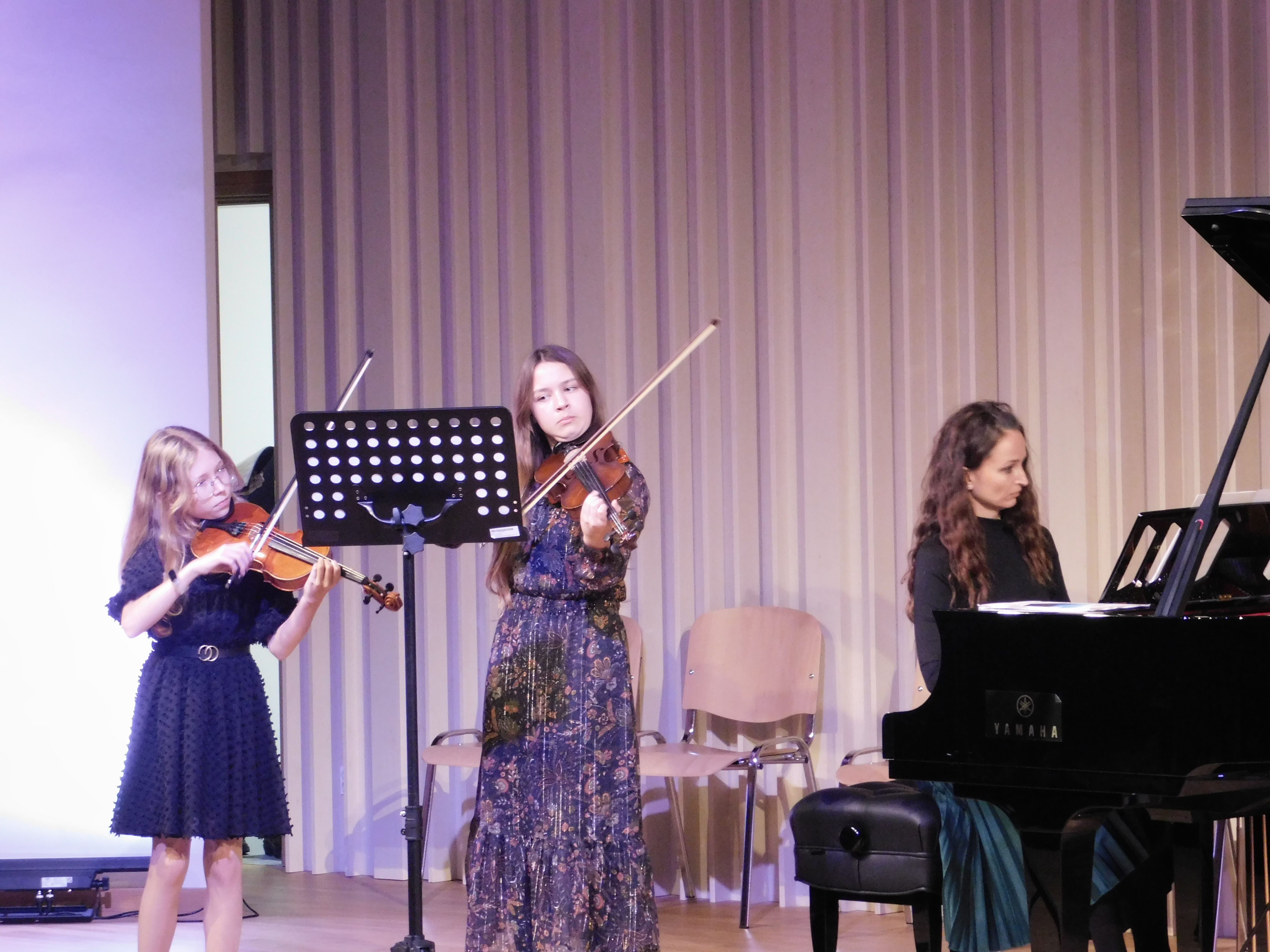 - Julita Głodowska- uczennica klasy skrzypiec Pani Izabeli Hoffmann- Fortuny, akompaniowała Pani Eugenia Mazur,