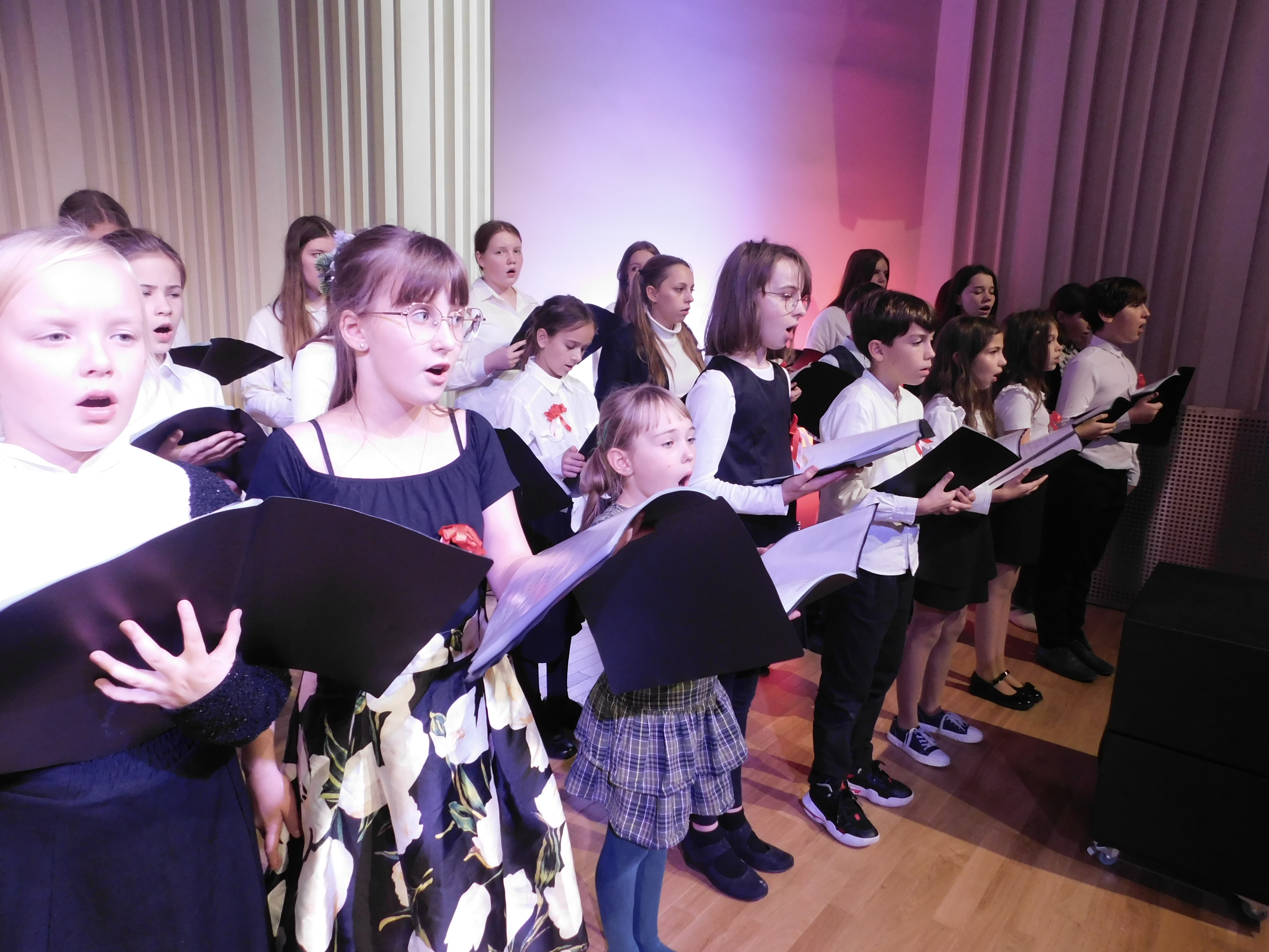 Uroczystość zakończył występ chóru szkolnego, który został przygotowany przez Panią Małgorzatę Bednarek. Chórowi przy fortepianie towarzyszyła Pani Eugenia Mazur.