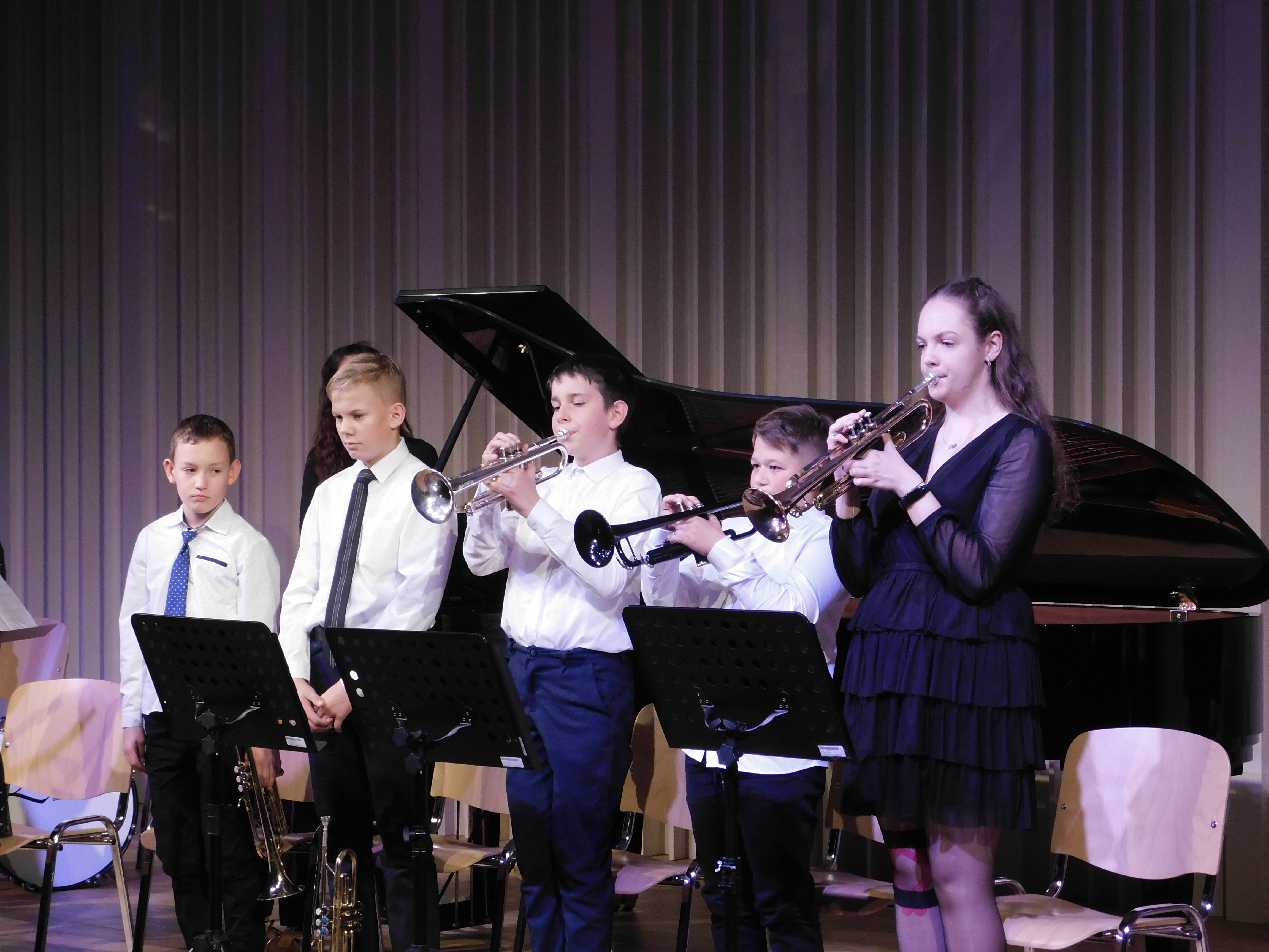 - Tymoteusz Cichosz- uczeń klasy trąbki Pana Wojciecha Bednarka, akompaniowała Pani Eugenia Mazur,