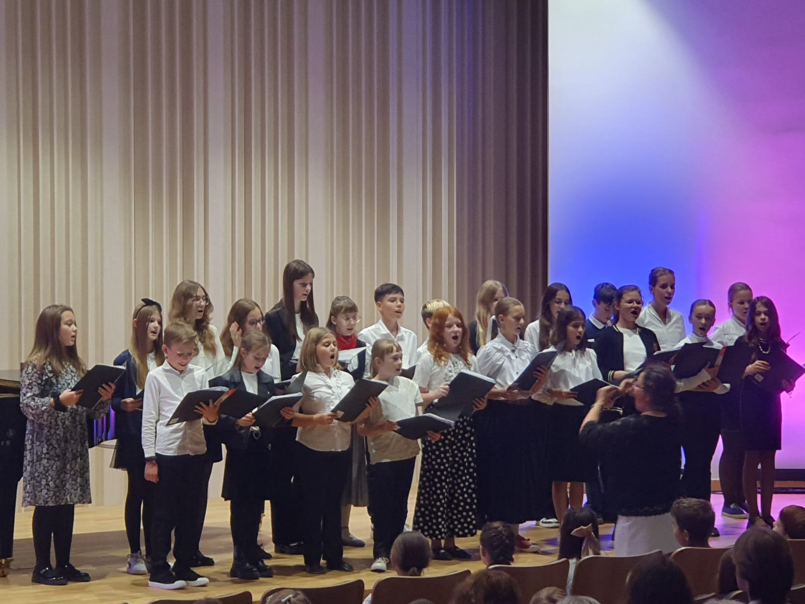 Po zakończeniu ślubowania dyrektor szkoły zaprosiła gości do wysłuchania koncertu z okazji Dnia Edukacji Narodowej w wykonaniu uczniów naszej szkoły.
