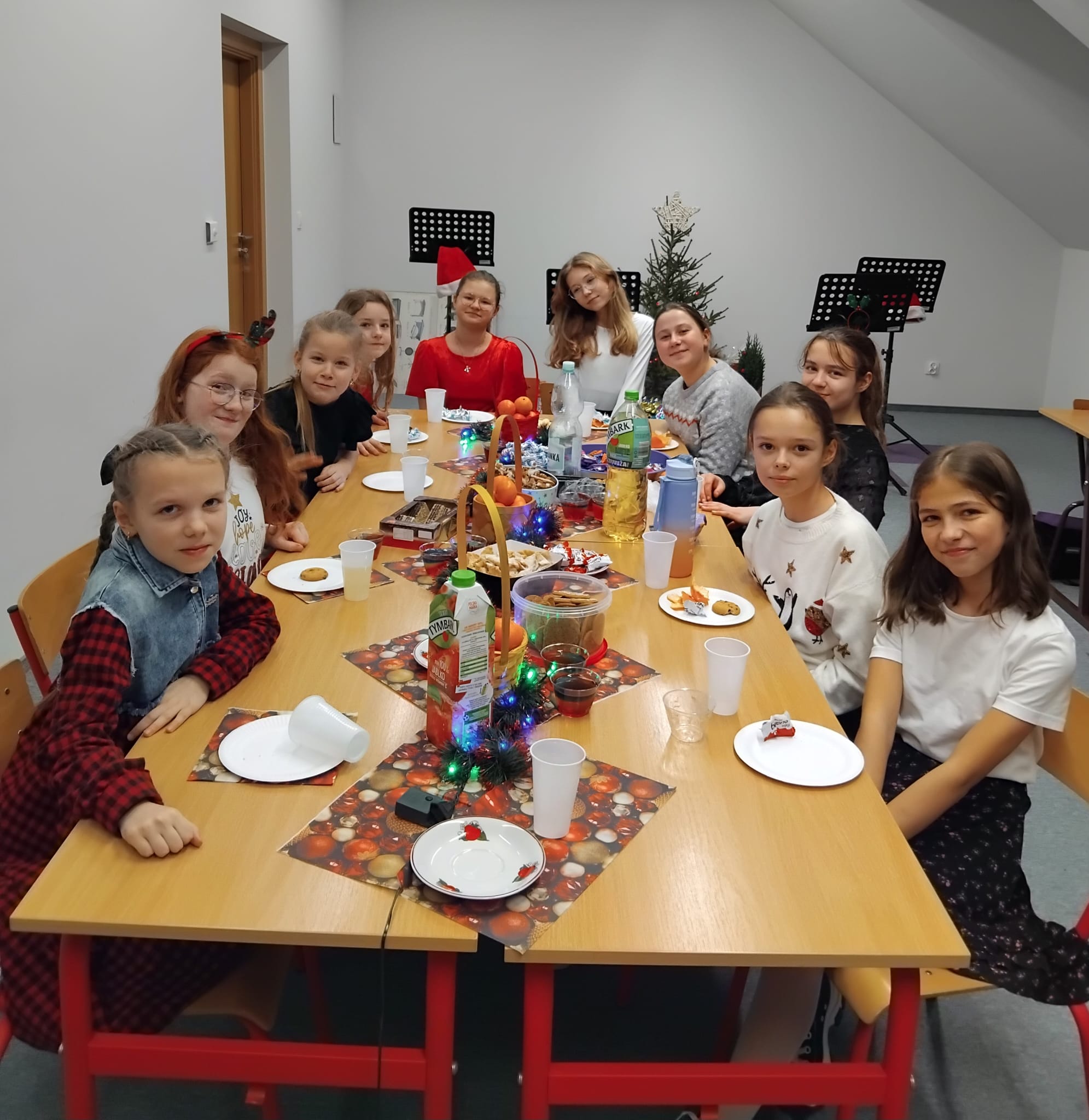 Wigilia uczniów klasy skrzypiec Pani Izabeli Hoffmann- Fortuny to piękna tradycja, w którym uczniowie mają okazję spotkać się, złożyć sobie życzenia i spędzić czas w atmosferze radości. Podczas spotkania nie zabrakło wspólnego kolędowania, co wprowadziło zgromadzonych w świąteczny nastrój. Na wszystkich czekały smakołyki i upominki. Wigilia w gronie rówieśników to doskonała okazja do zacieśnienia relacji, wymiany doświadczeń i wspólnego celebrowania świąt. Uczniowie klasy skrzypiec Pani Izabeli Hoffmann- Fortuny życzą wszystkim WESOŁYCH ŚWIĄT!