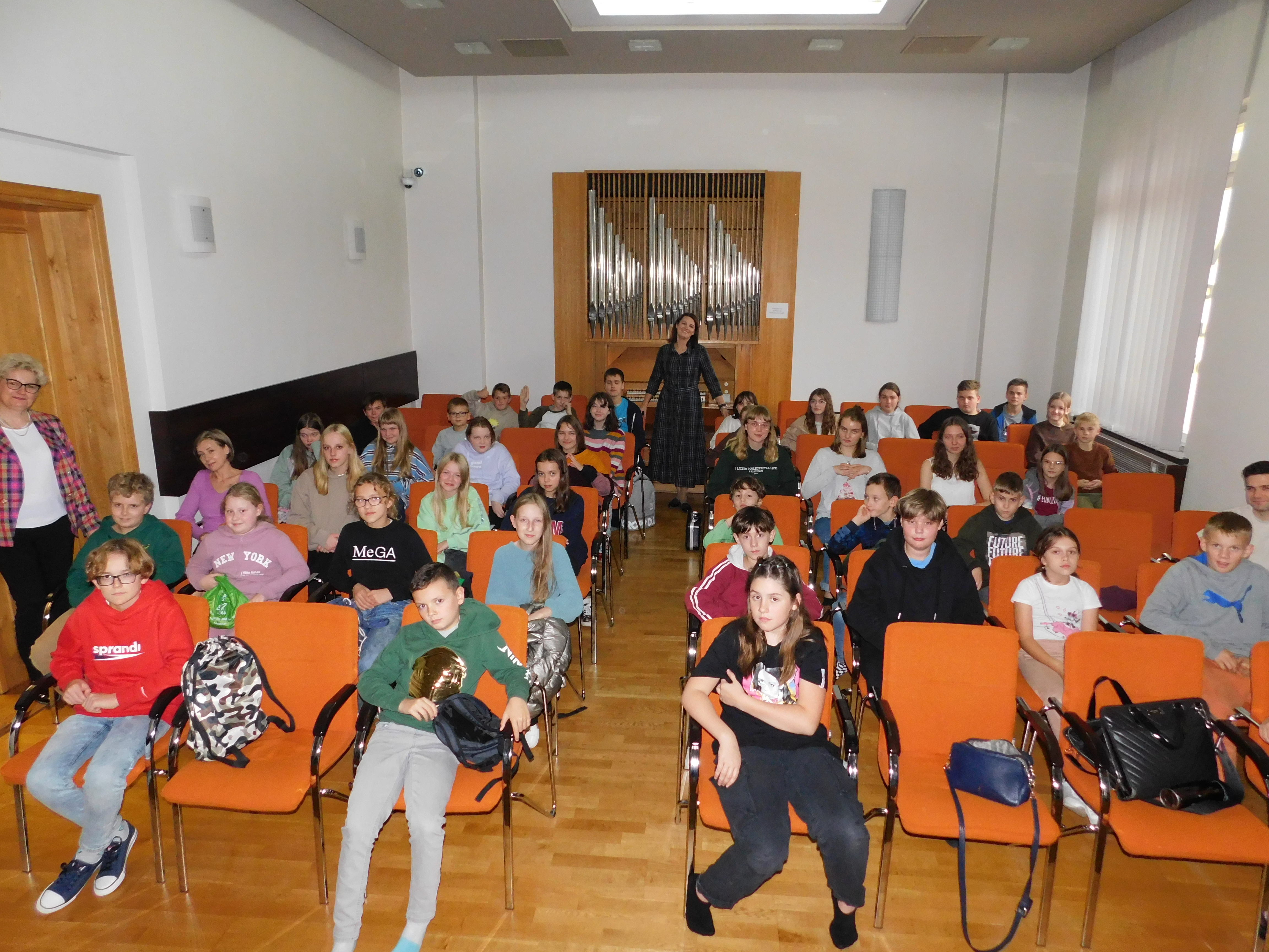 Dnia 18 października 2022 r. na terenie naszej szkoły zorganizowano dla uczniów w dwóch grupach wiekowych spotkanie z psychologiem dr Anną Nogaj. Tematem spotkania było zagadnienie: "Jak ćwiczyć efektywnie i odczuwać satysfakcję z występów publicznych". Pogadanka z psychologiem spotkała się z dużym zainteresowaniem. Uczniowie aktywnie w niej uczestniczyli. Odpowiadali na zadawane pytania, opowiadali o swoich przeżyciach, a także dzielili się opinią na temat poruszanych zagadnień i problemów. Oprócz uczniów w tym dniu odbyło się również spotkanie z psychologiem dla rodziców. Pani psycholog podkreślała, jak ważna w kształceniu muzycznym dziecka jest rola rodzica oraz jakie korzyści płyną z edukacji w szkole artystycznej.