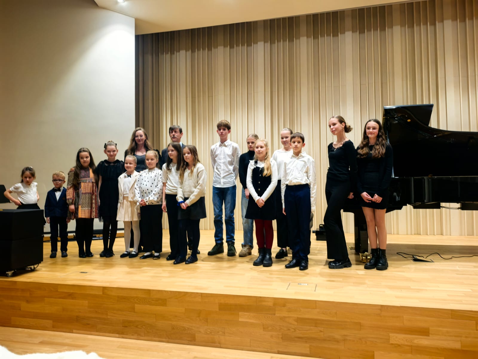 11 grudnia 2025 r. w sali koncertowej naszej szkoły odbył się nastrojowy koncert klasy fortepianu, podczas którego zaprezentowali się uczniowie Pani Klary Jachimczak oraz Pana Andrzeja Nowaka. Młodzi pianiści wprowadzili publiczność w świat muzycznej wrażliwości, prezentując różnorodny repertuar- od subtelnych miniatur po pełne energii utwory. Każdy występ stanowił dowód pięknej pracy i talentu młodych muzyków, a także zaangażowania rodzin w edukację muzyczną młodych artystów.