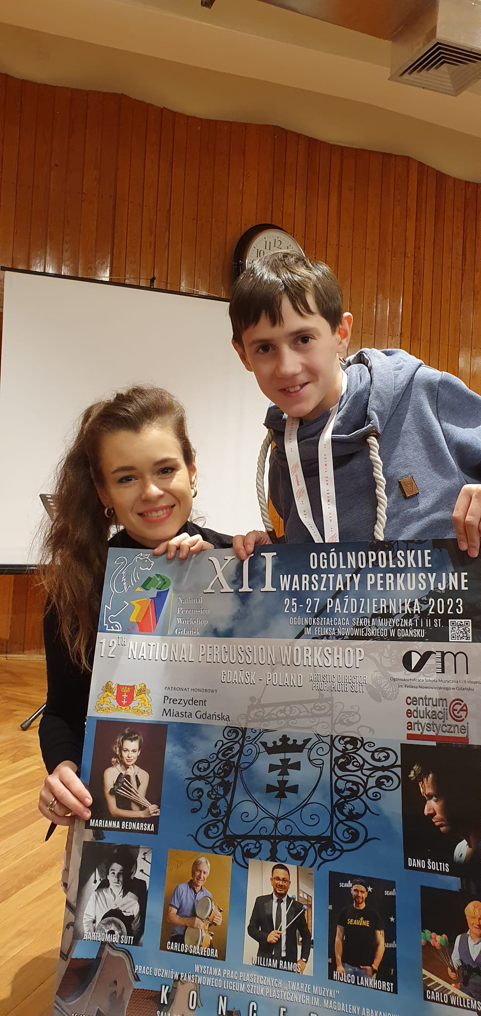 Podobnie, jak w latach ubiegłych nasi uczniowie kasy perkusji wraz z nauczycielem Panem Markiem Czajką wzięli udział w XII Ogólnopolskich Warsztatach Perkusyjnych, które zorganizowane zostały przez OSM I i II stopnia im. Feliksa Nowowiejskiego w Gdańsku w dniach 25- 27 października 2023 r. Warsztaty zostały objęte patronatem Centrum Edukacji Artystycznej w Warszawie i Prezydenta Miasta Gdańska.