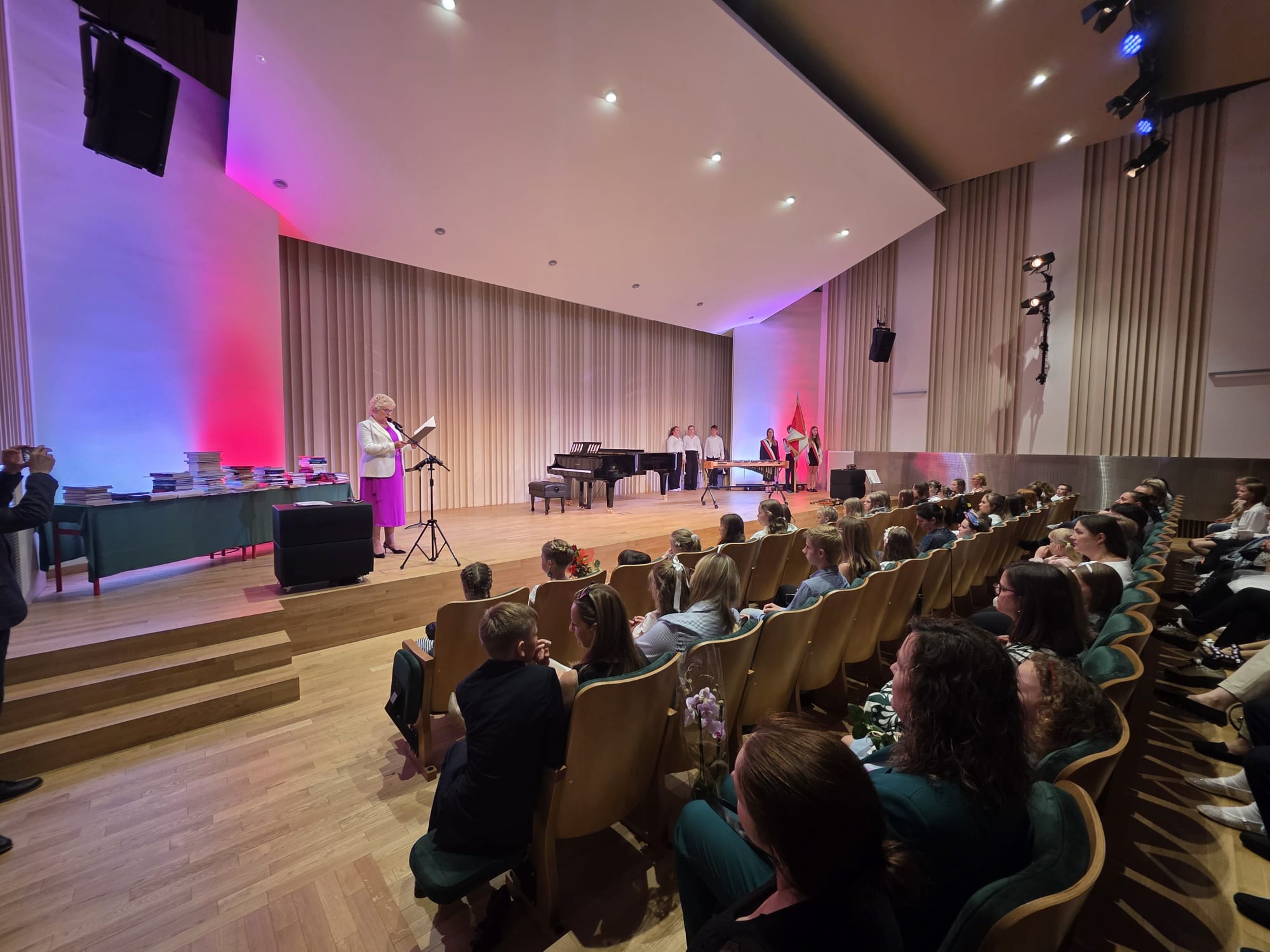 W piątek, 27 czerwca 2025 r., w sali koncertowej naszej szkoły odbyło się uroczyste zakończenie roku szkolnego 2024/2025. Był to wyjątkowy dzień pełen wzruszeń, podsumowań i wspólnej radości z osiągnięć naszych uczniów.