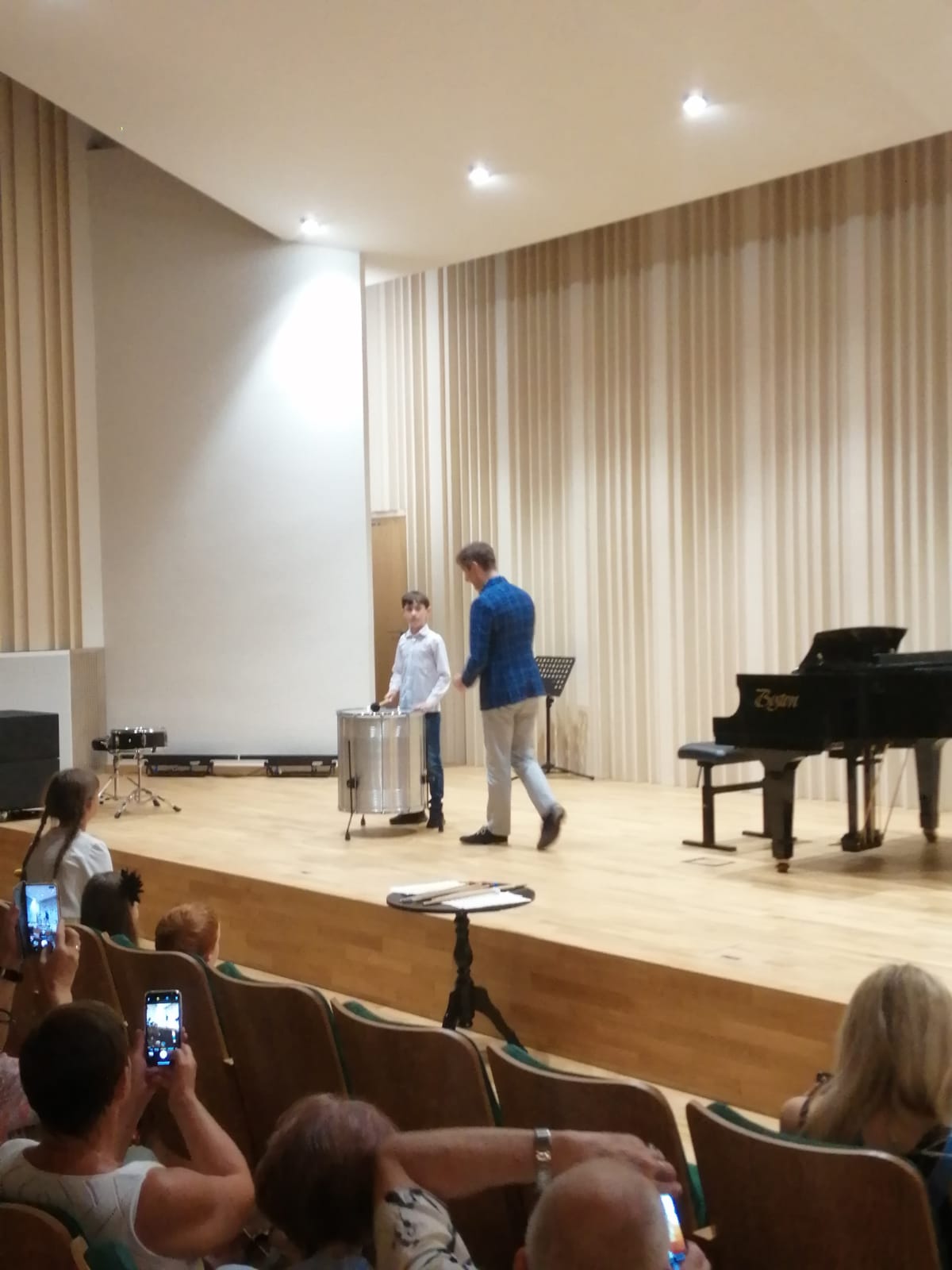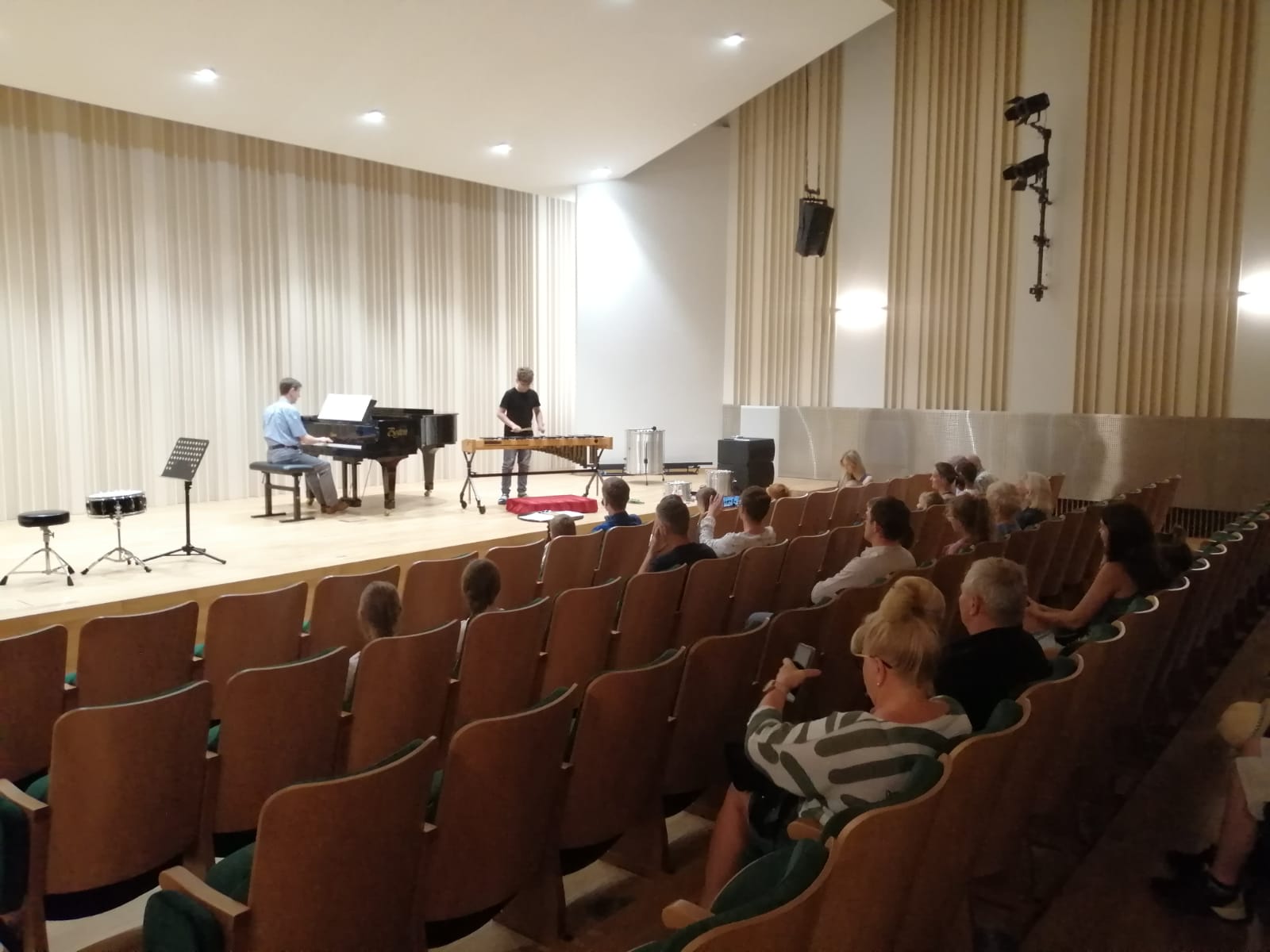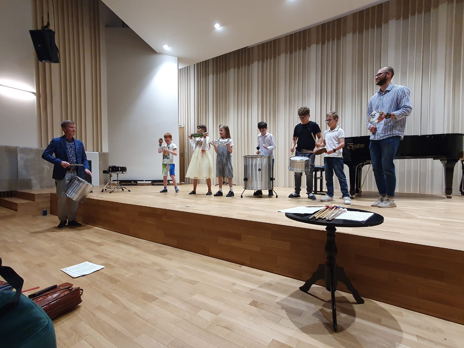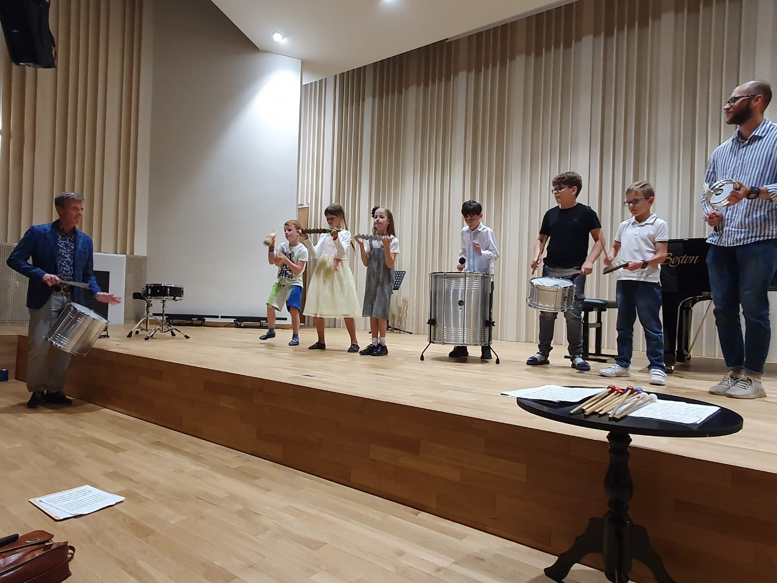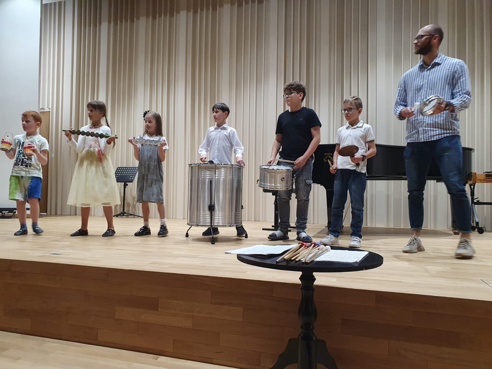 Nauka w naszej szkole to nie tylko edukacja w zakresie gry na instrumencie, udział w konkursach, czy koncertach. Nasi uczniowie biorą również udział w warsztatach prowadzonych przez profesorów akademii muzycznych z całej Polski. Ostatnio, tj. 19 czerwca 2023 r., z takiej możliwości skorzystali uczniowie klasy perkusji Pana Marka Czajki. Perkusiści uczestniczyli w warsztatach, które poprowadził w sali koncertowej naszej szkoły prof. dr hab. Piotr Sutt z Akademii Muzycznej w Łodzi. Zajęcia przebiegły w twórczej atmosferze, były doskonałym elementem integracyjnym dla wszystkich uczestników spotkania. W trakcie spotkania każdy uczeń brał czynny udział w ćwiczeniu i wspólnym tworzeniu muzyki. Na zakończenie warsztatów mogliśmy wysłuchać koncertu uczniów klasy perkusji wraz z udziałem gościa specjalnego- prof. dr hab. Piotra Sutta, przy fortepianie Pan Andrzej Nowak. Zachęcamy do wysłuchania fragmentu nagrania z warsztatów oraz obejrzenia zdjęć z zajęć udostępnionych w galerii.