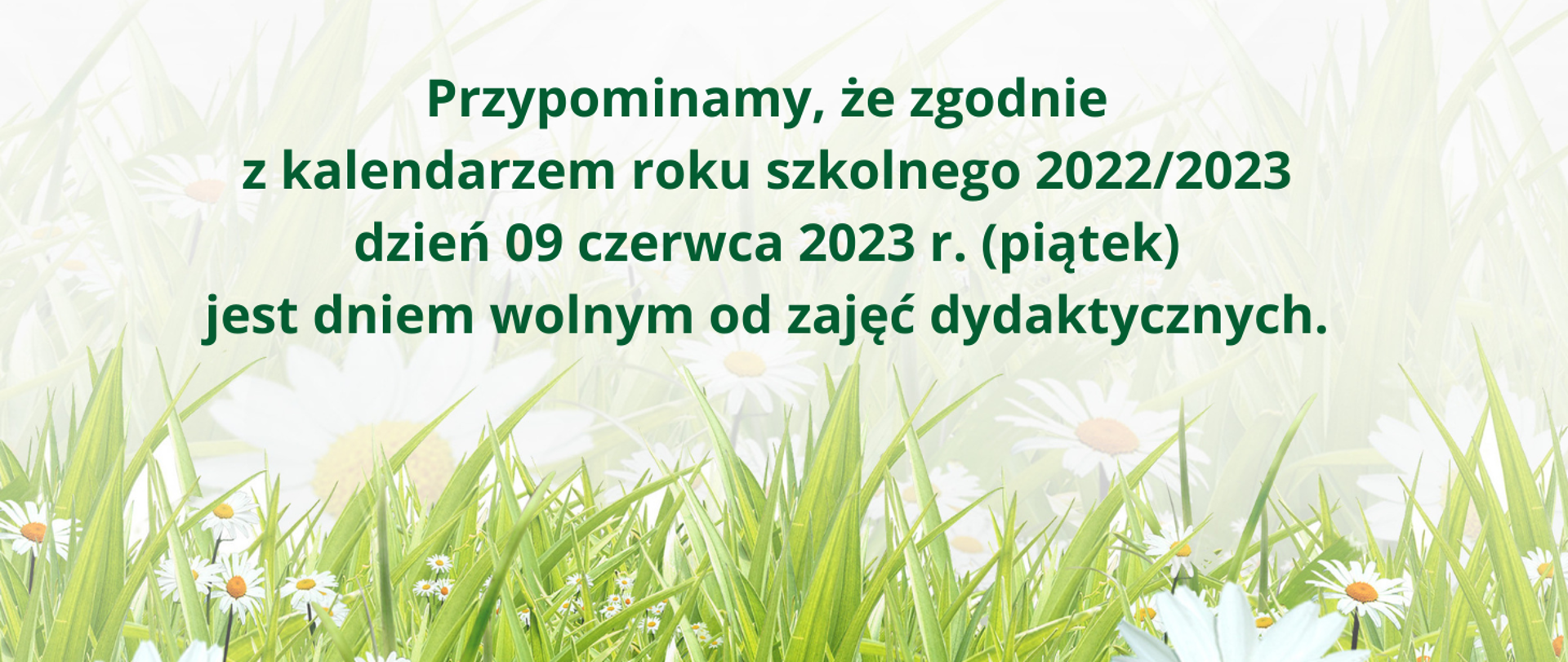 06.06.2023Dzień wolny od zajęć dydaktycznych- 09.06.2023 r.