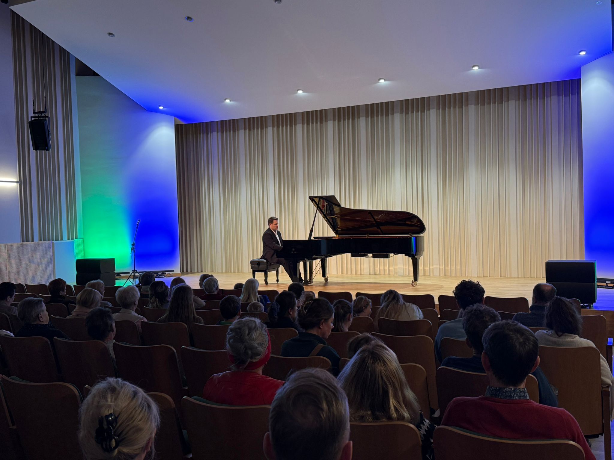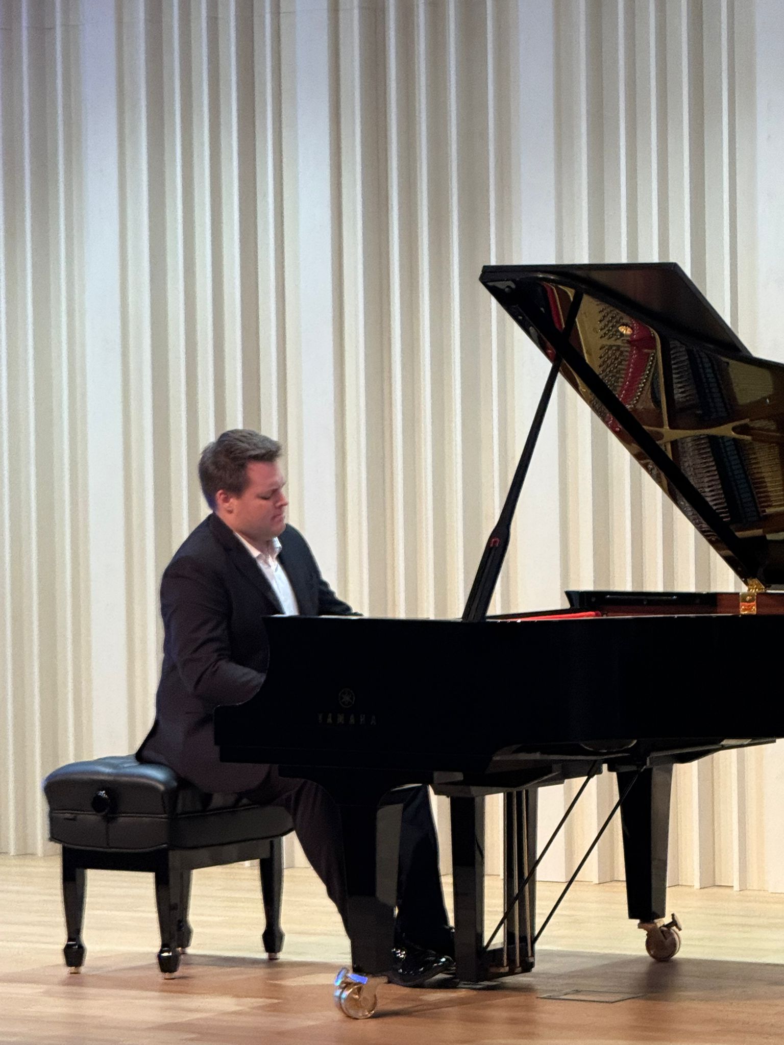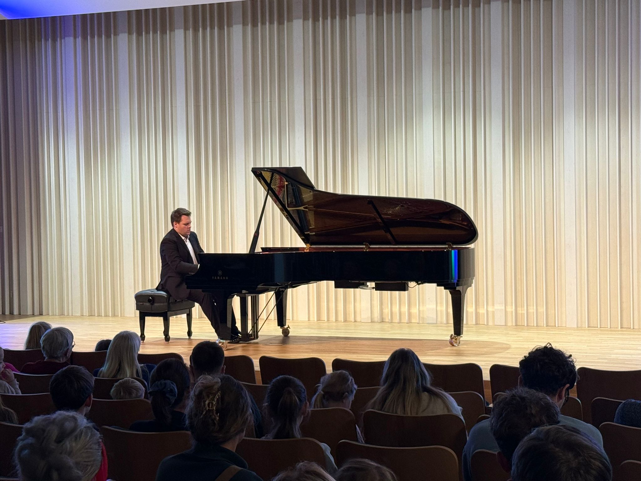 Już od pierwszych dźwięków publiczność mogła poczuć, że obcuje z artystą o niezwykłej wrażliwości i dojrzałości muzycznej. Artysta czarował subtelnym brzmieniem, doskonałym wyczuciem frazy oraz precyzyjną techniką. Każdy utwór stanowił osobną opowieść- pełną barw, nastrojów i kontrastów. Pianista potrafił wprowadzić słuchaczy zarówno w refleksyjny nastrój lirycznych miniatur, jak i w dramatyzm potężnych, pełnych energii kompozycji. Szczególnie imponujące było panowanie nad dynamiką i bogactwem odcieni barwowych fortepianu, które pianista wydobywał z niezwykłą naturalnością.