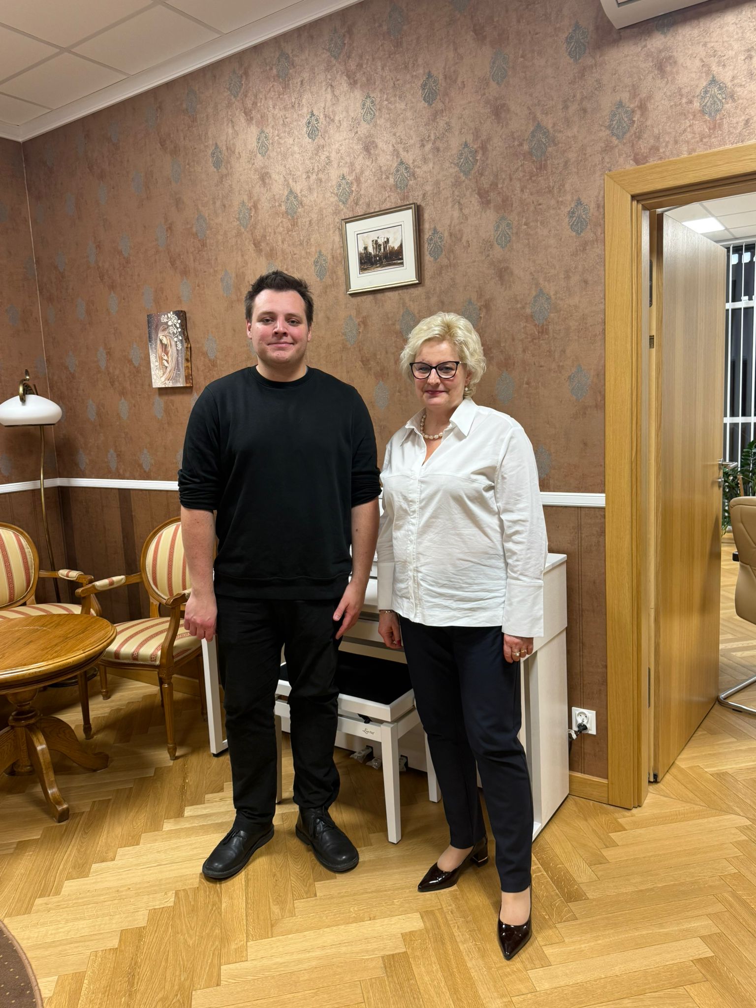 Wieczór 29 października 2025 r. na długo pozostanie w pamięci wszystkich, którzy mieli okazję uczestniczyć w koncercie fortepianowym w sali koncertowej naszej szkoły. Gościem i gwiazdą wydarzenia był wybitny pianista, kompozytor i pedagog- dr Mikołaj Sikała.