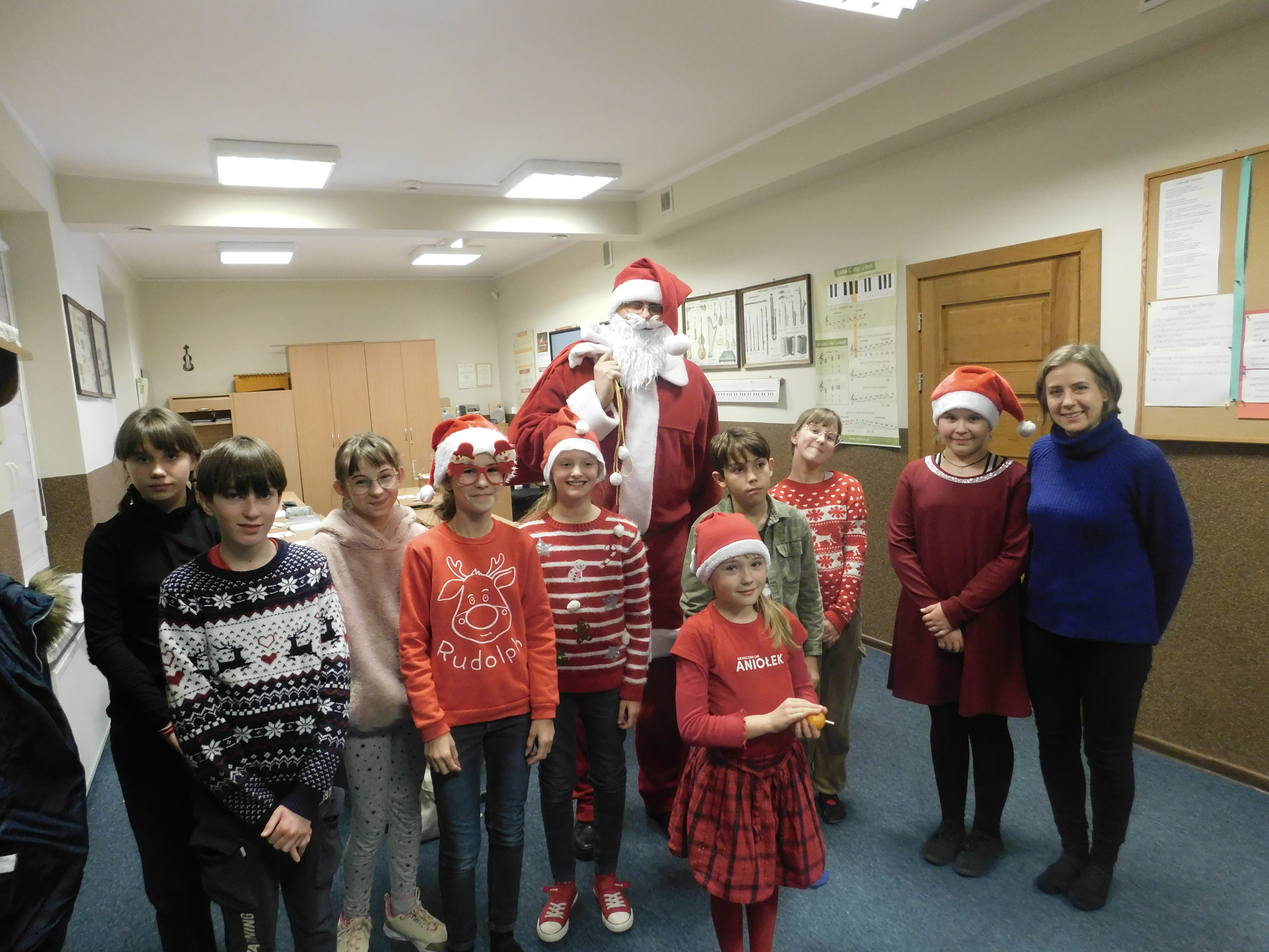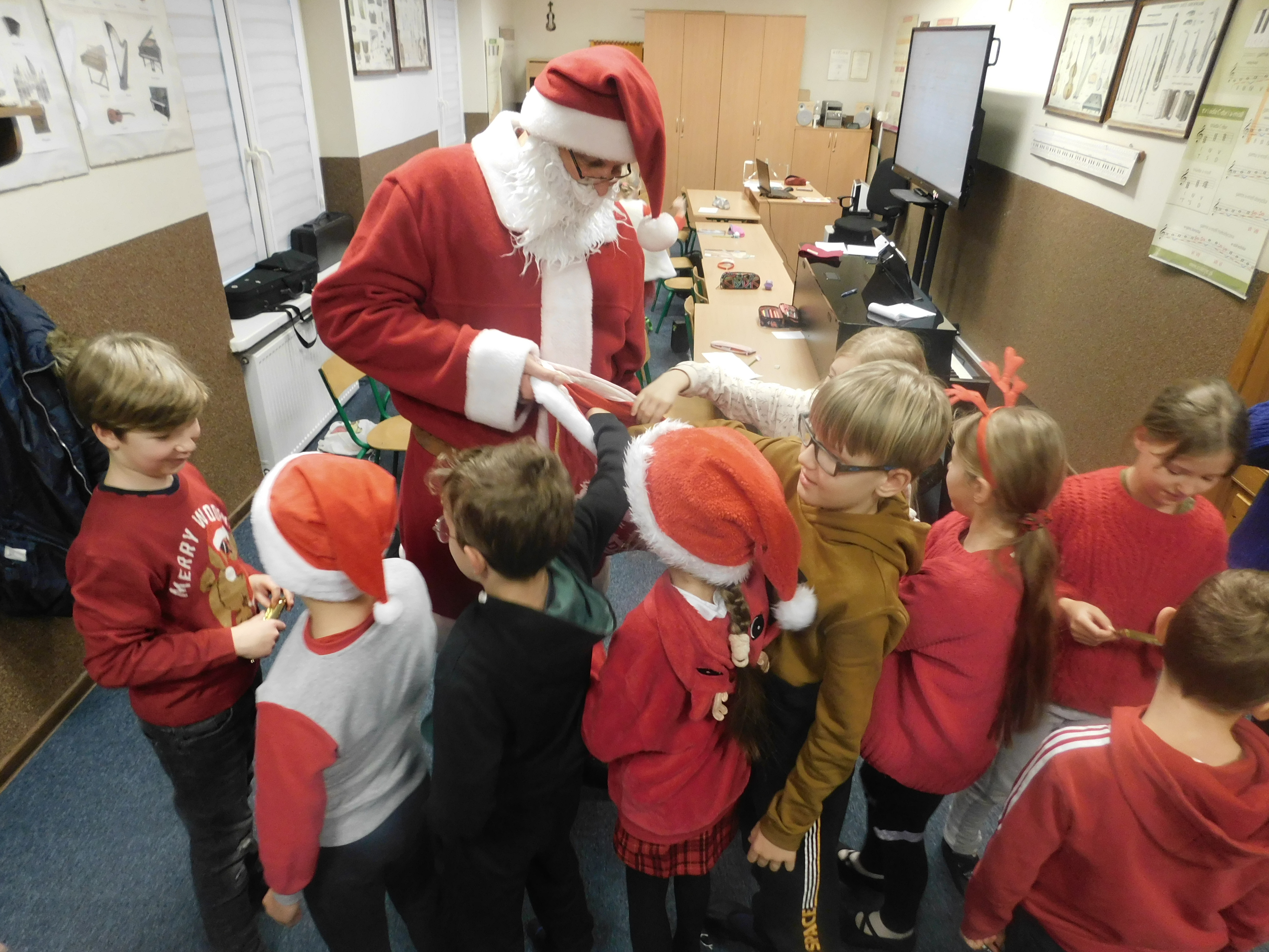 Wszyscy niecierpliwie oczekujemy zbliżających się Świąt Bożego Narodzenia. Na korytarzach szkoły pojawiły się już choinki. Szósty grudnia to data, którą zna każde dziecko i każdy dorosły. Mikołajki w naszej szkole już na stałe wpisały się w kalendarz wydarzeń. Jaka była radość, gdy zapukał do naszej szkoły Święty Mikołaj. Dzieci witały go z ogromnym entuzjazmem. W podziękowaniu za upominki uczniowie grali na instrumentach i śpiewali kolędy. Dziękujemy Mikołajowi, że o nas pamiętał i do zobaczenia za rok