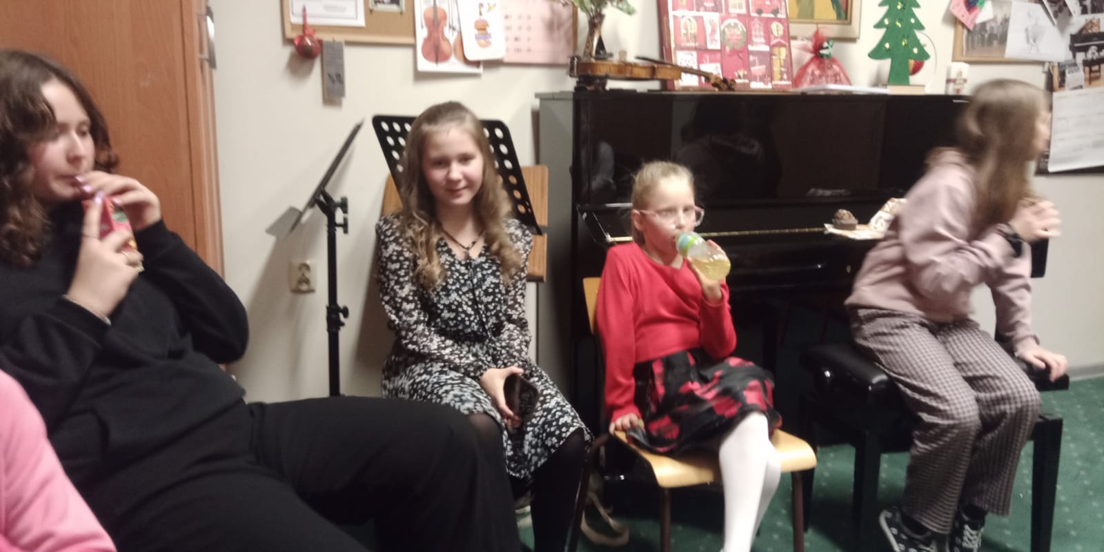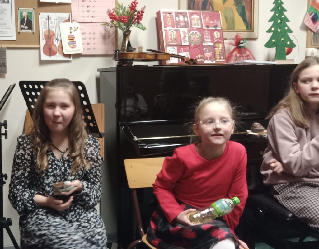 Wspólne kolędowanie uczniów klasy skrzypiec Pani Beaty Makowskiej