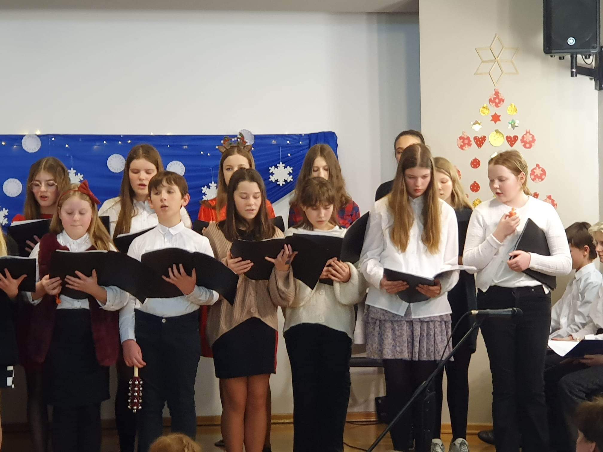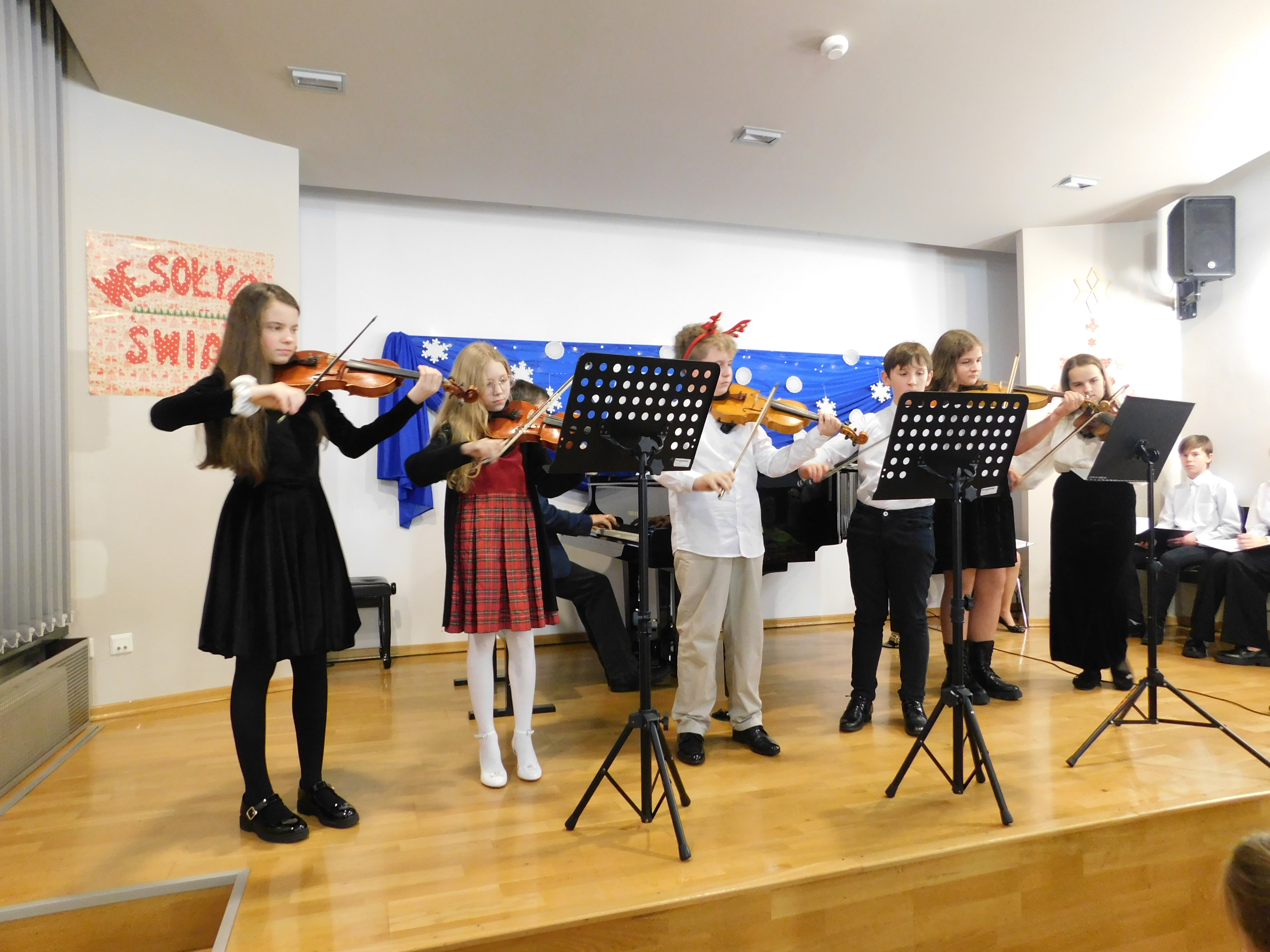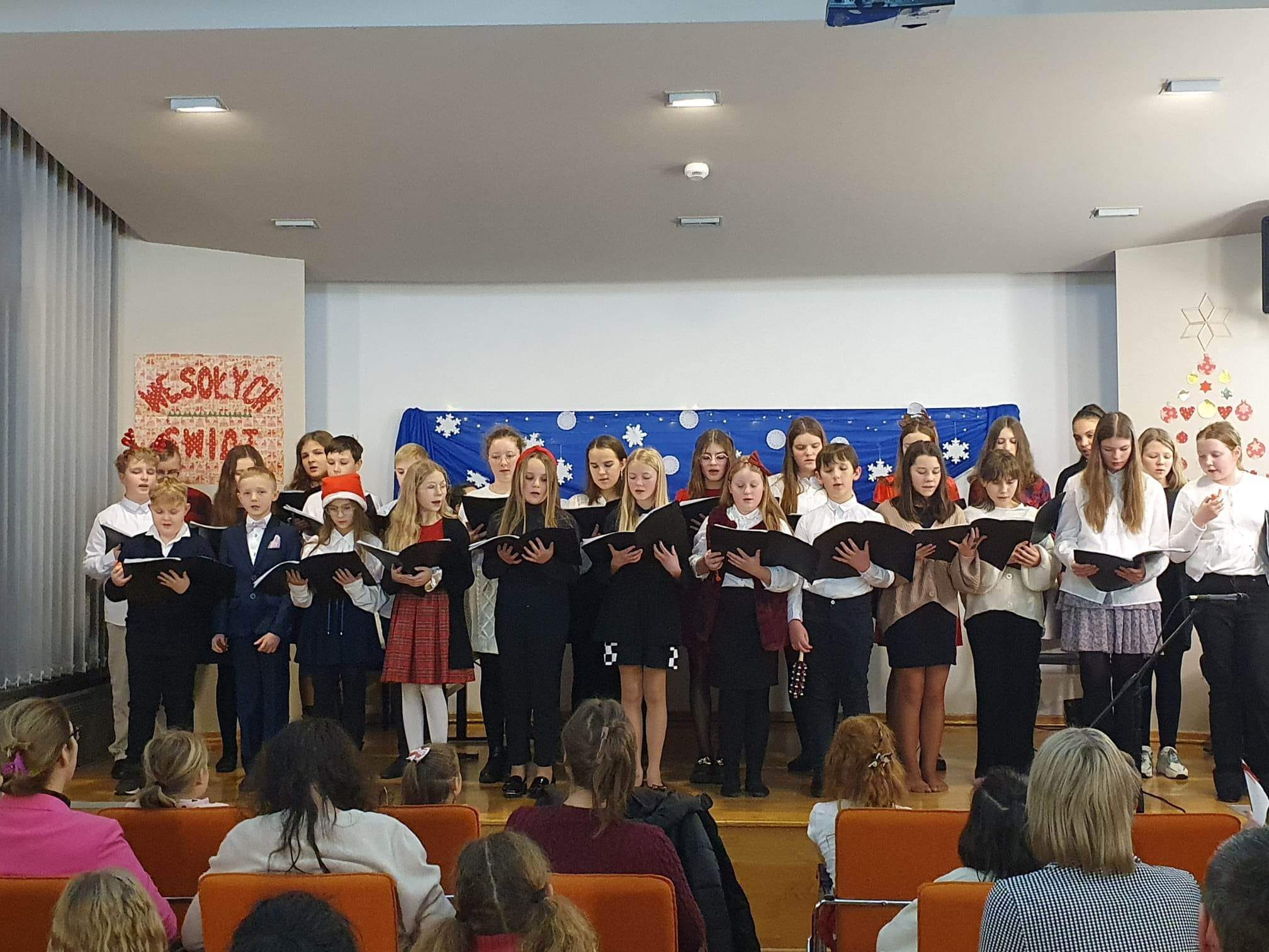 W galerii zdjęcia z występów uczniów podczas szkolnego wieczoru wigilijnego.