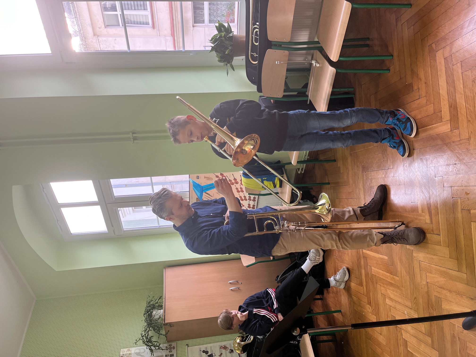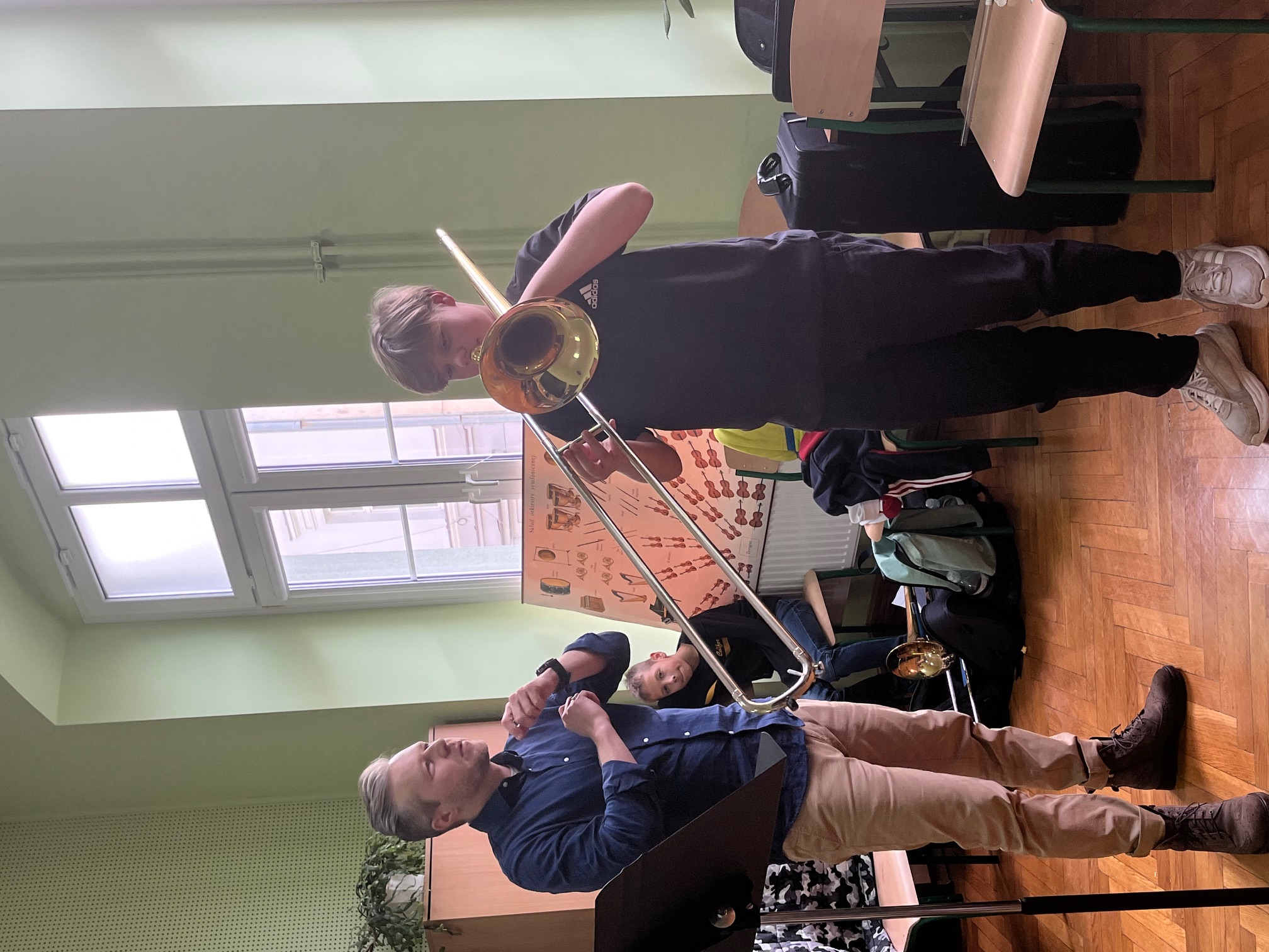 W dniu 24 listopada 2023 r. uczniowie klasy puzonu Fabian Templer i Arkadiusz Sędzicki razem z nauczycielem Panem Janem Konopem uczestniczyli w regionalnych warsztatach dla nauczycieli klas instrumentów dętych blaszanych szkół muzycznych I stopnia, które zostały zorganizowane przez Państwową Szkołę Muzyczną I stopnia im. Feliksa Nowowiejskiego w Kwidzynie. Podczas warsztatów uczniowie doskonalili swoje umiejętności gry na puzonie pod okiem mgr Roberta Żelazko z Akademii Muzycznej w Łodzi. Udział w warsztatach uświadomił uczniom, że edukacja to nie tylko przykry obowiązek, ale również wielka przygoda, która daje wiele radości i satysfakcji.