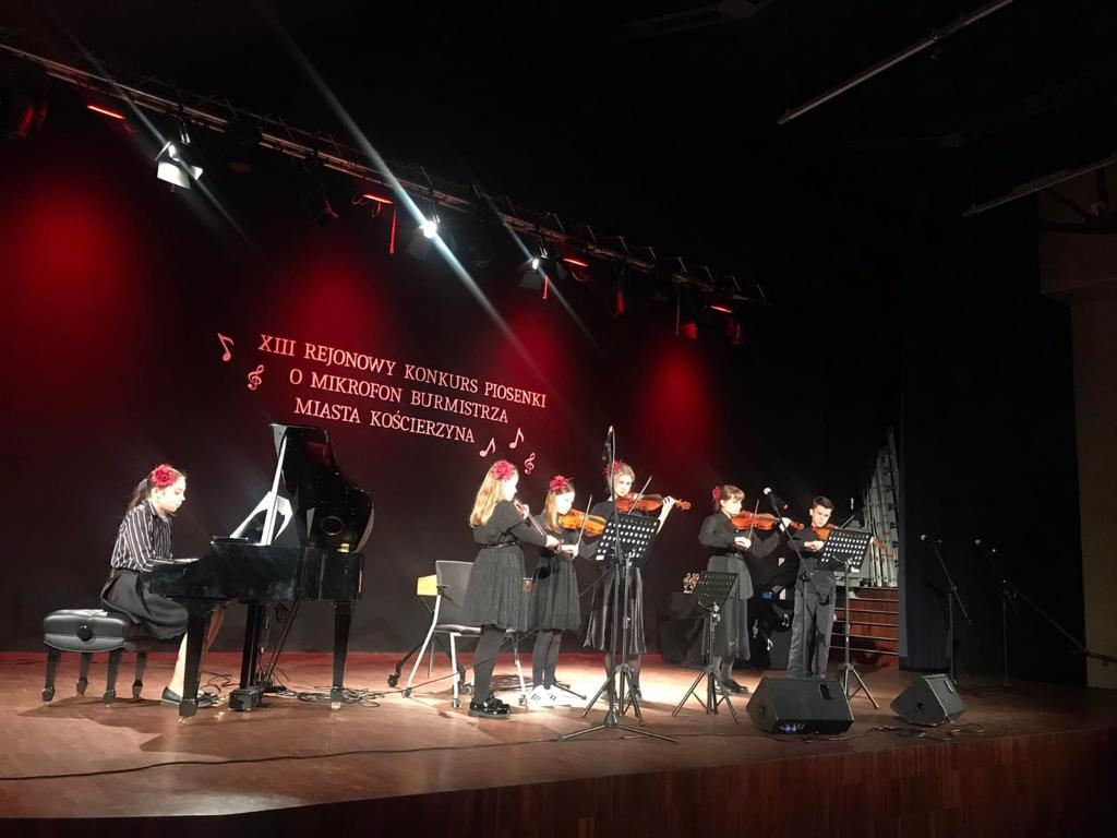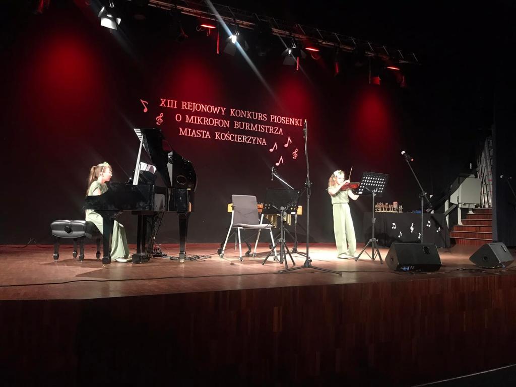 W dniu 26 kwietnia 2023 r. uczniowie Państwowej Szkoły Muzycznej I stopnia im. Mazurka Dąbrowskiego w Kościerzynie uświetnili swoim występem XIII Rejonowy Konkurs Piosenki o Mikrofon Burmistrza Miasta Kościerzyna, który odbył się w Sali im. Lubomira Szopińskiego. Konkurs został zorganizowany przez Szkołę Podstawową nr 6 z Kościerzyny, a w Jury zasiedli nauczyciele Państwowej Szkoły Muzycznej I stopnia im. Mazurka Dąbrowskiego w Kościerzynie: Pani Katarzyna Karczewska- przewodnicząca, Pani Izabela Hoffmann- Fortuna i Pan Andrzej Nowak. Warto dodać, że I miejsce w kategorii klas IV- VI zajął Jan Marcinkowski, który uczy się w naszej szkole w klasie skrzypiec Pani Izabeli Hoffmann- Fortuny.