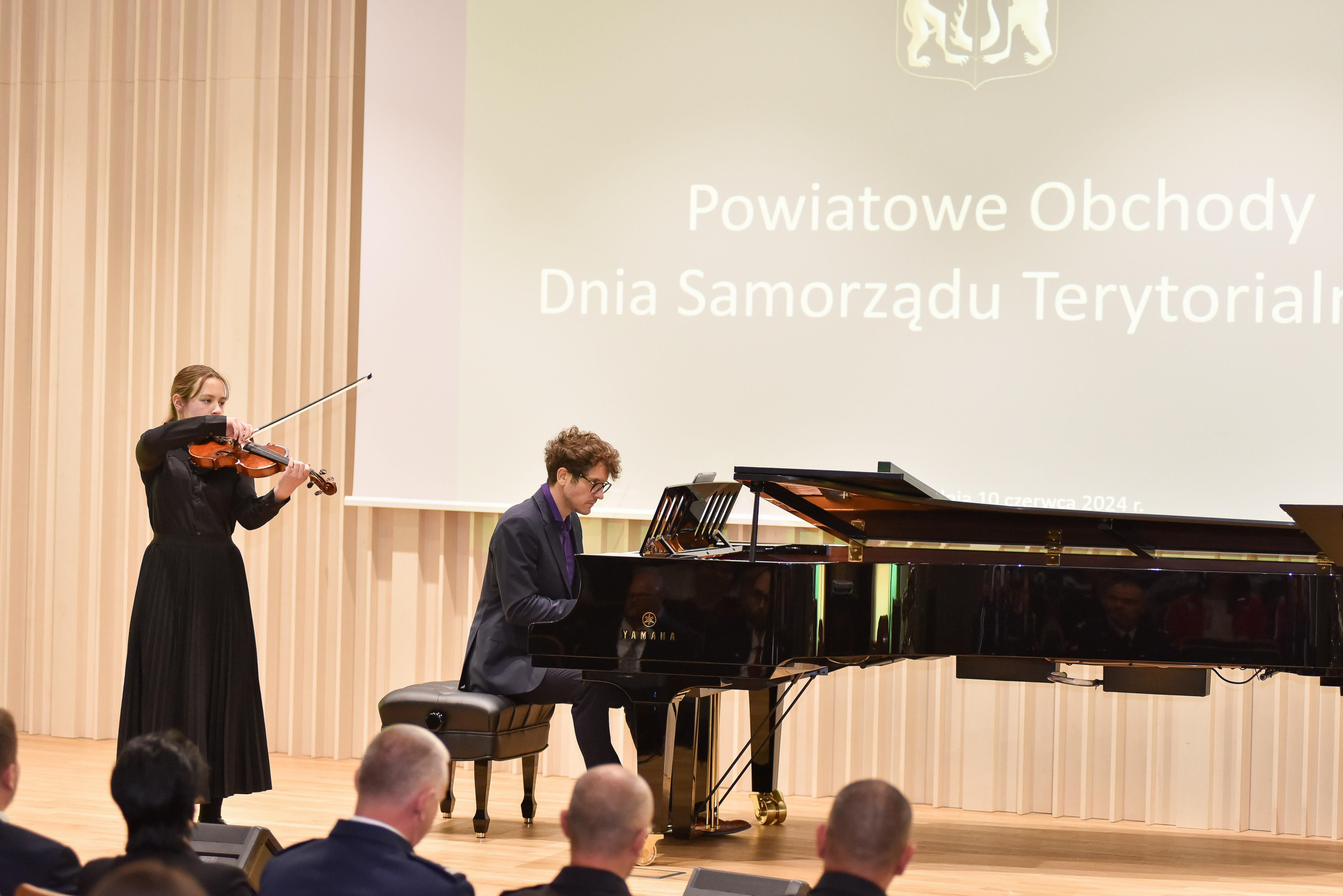 Występ uczniów podczas Powiatowych Obchodów Dnia Samorządu Terytorialnego