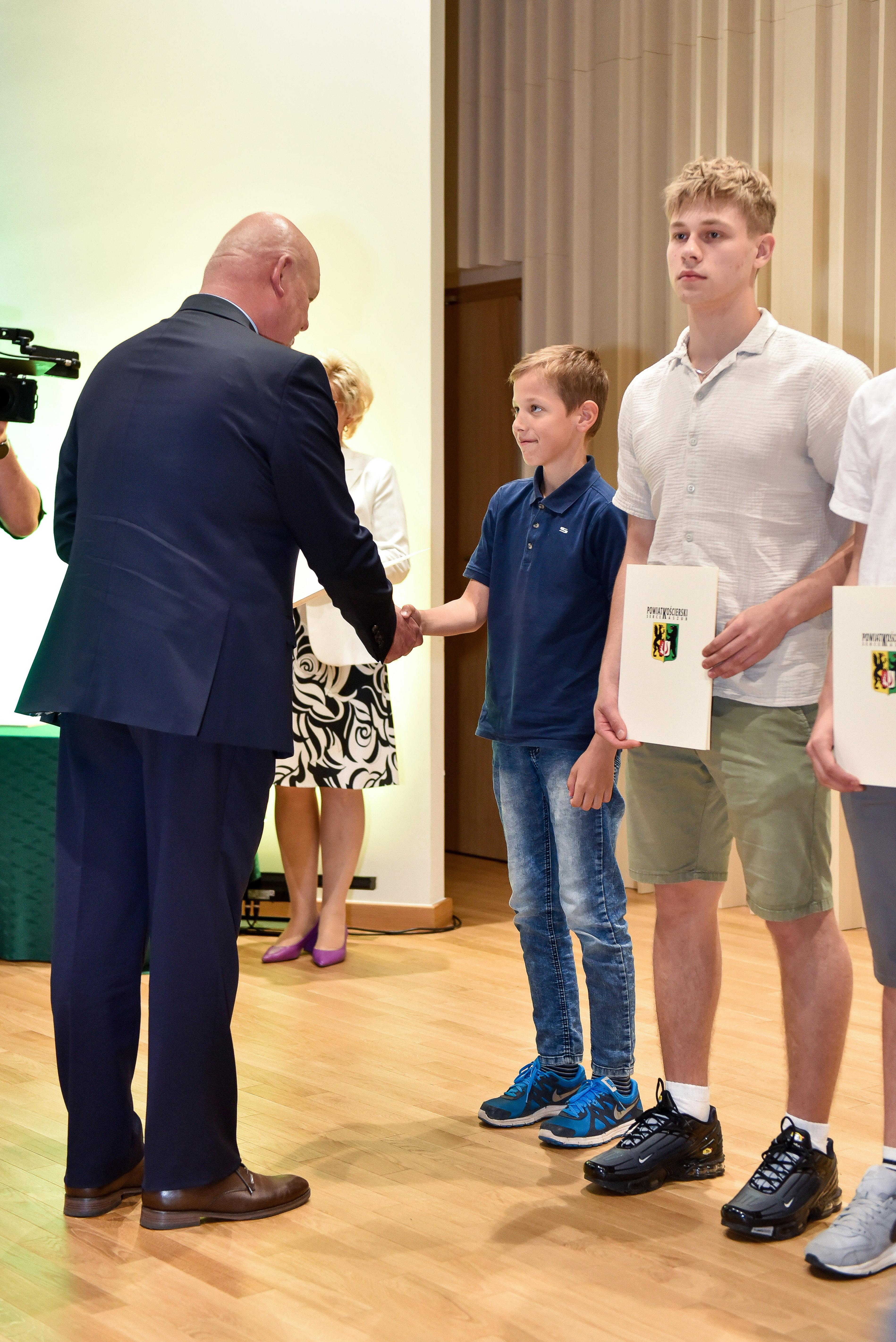 Dnia 10 czerwca 2024 r. w sali koncertowej naszej szkoły odbyły się Powiatowe Obchody Dnia Samorządu Terytorialnego. Podczas gali nagrodzono zawodników oraz trenerów za wysokie osiągnięcia sportowe i szkoleniowe za rok 2023. Nagrodę Starosty Kościerskiego za zdobycie I miejsca na Mistrzostwach Polski w Pływaniu Długodystansowym w Płetwach otrzymał uczeń naszej szkoły Arkadiusz Sędzicki, który kształci się w klasie puzonu Pana Jana Konopa. Serdecznie gratulujemy. O oprawę artystyczną uroczystości zadbali uczniowie i nauczyciele naszej szkoły. Przed zgromadzoną publicznością zaprezentowały się: