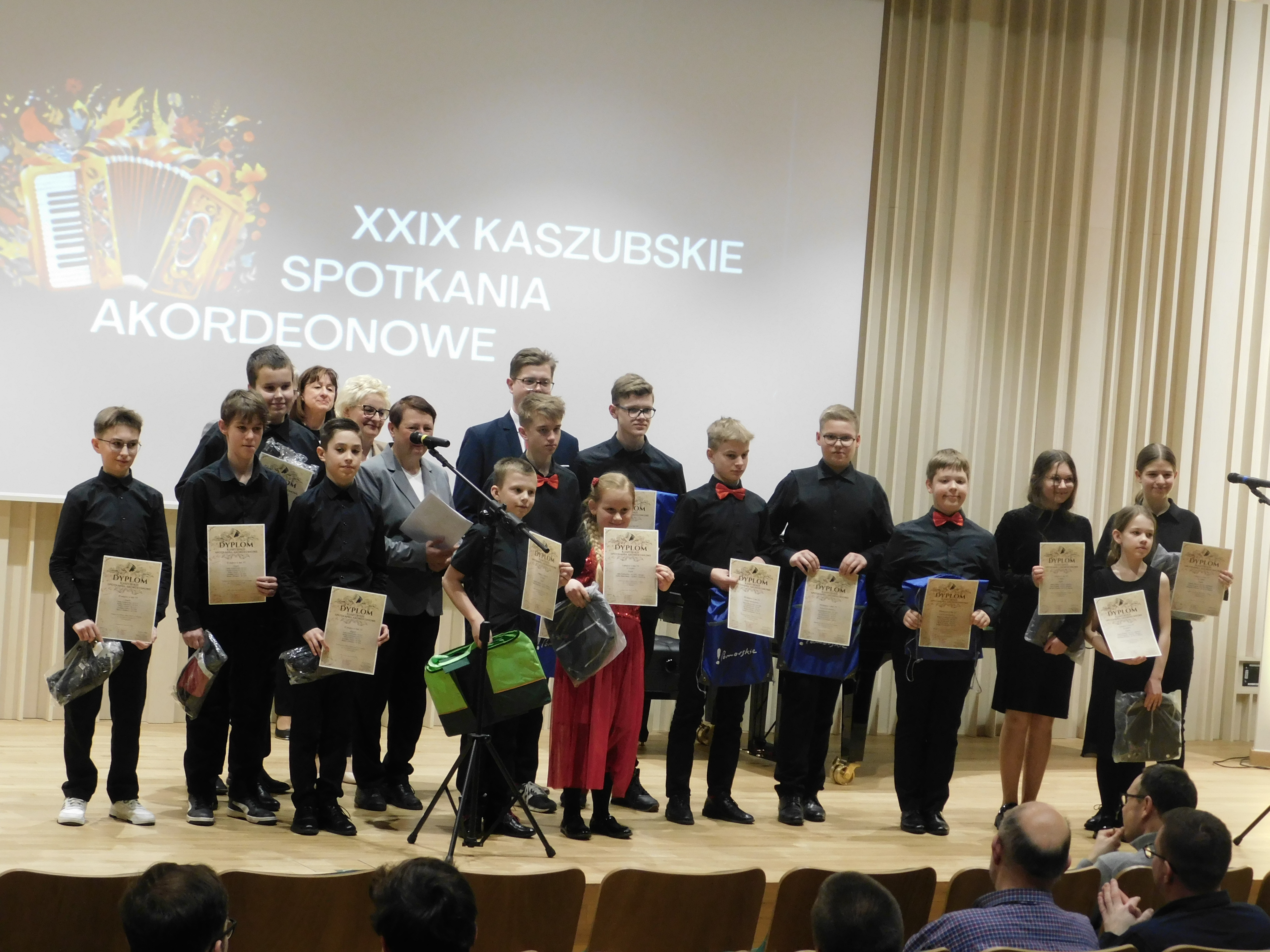 W dniu 20 marca (środa) 2024 r. w Państwowej Szkole Muzycznej I stopnia im. Mazurka Dąbrowskiego w Kościerzynie odbyły się XXIX Kaszubskie Spotkania Akordeonowe. Jury w składzie: prof. dr hab. Elżbieta Rosińska, prof. dr hab. Krzysztof Olczak i mgr Jakub Stefaniak przesłuchało 31 uczniów oraz 4 zespoły z 13 szkół muzycznych Polski północnej. Uczniów przygotowało 15 nauczycieli. W ramach XXIX Kaszubskich Spotkań Akordeonowych odbył się wykład seminaryjny dla nauczycieli szkół muzycznych I stopnia na temat: „Ergonomia gry na akordeonie. Aspekt dydaktyczny”. Na wszystkich uczestników i nauczycieli, jak co roku, czekały pamiątkowe kubeczki. W wolnym czasie można było podziwiać wystawę akordeonów, którą przygotował Pan Zygmunt Czupryn- przedstawiciel akordeonów Scandalli w Polsce.