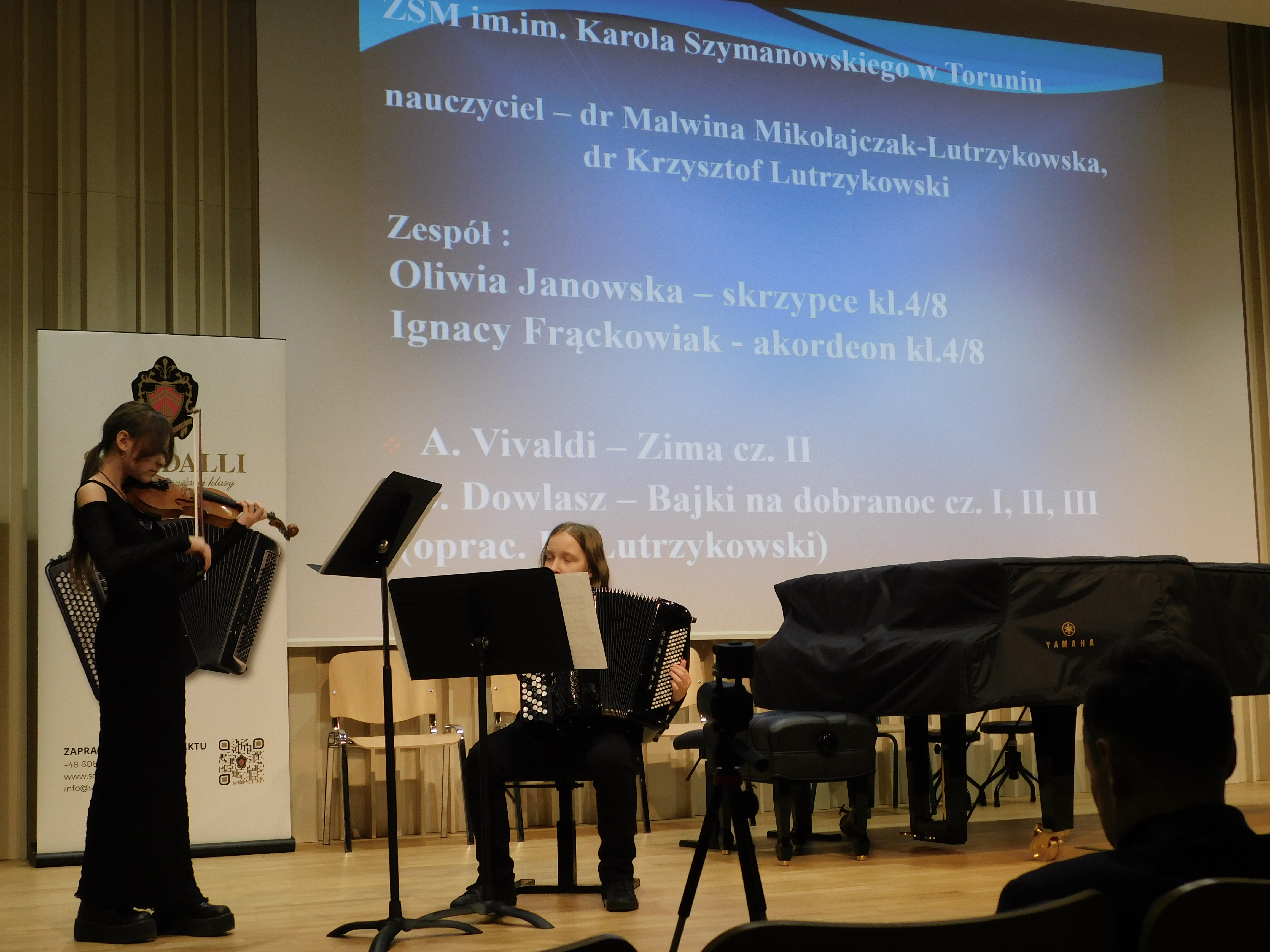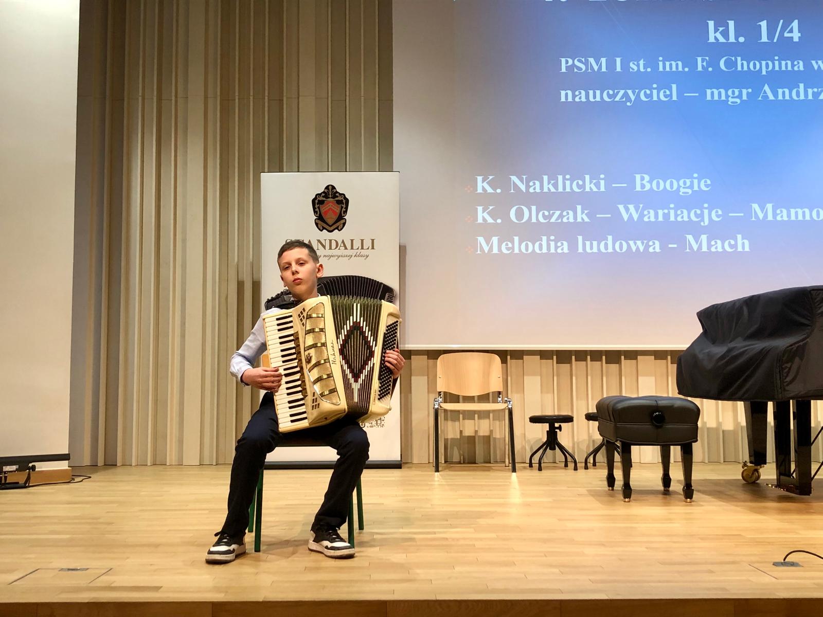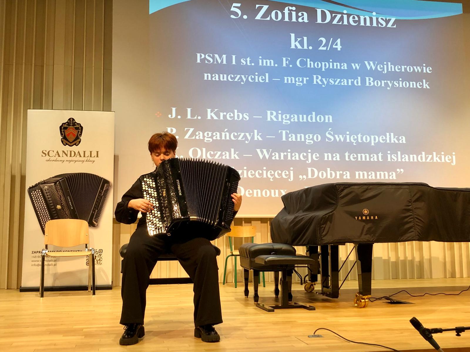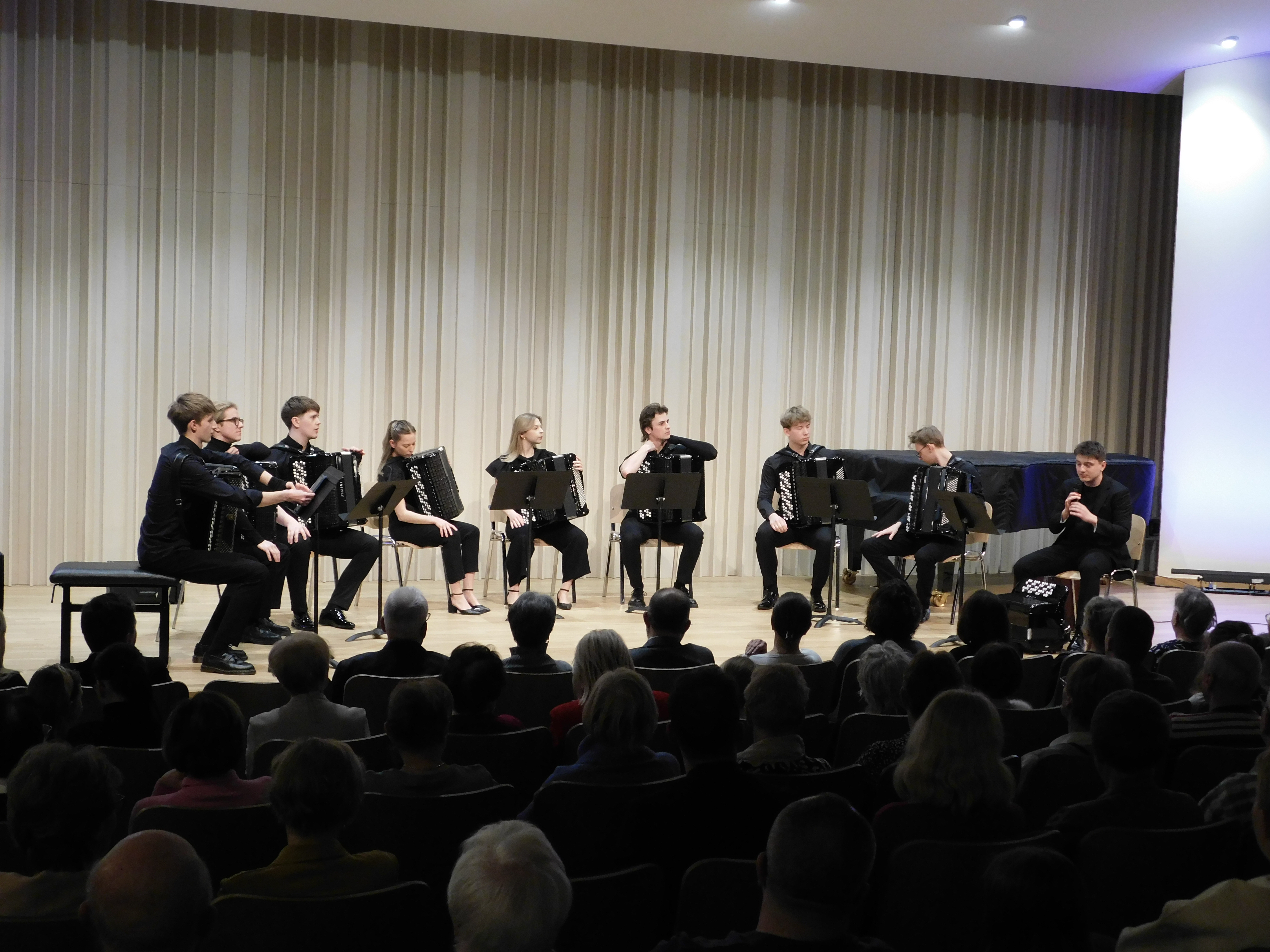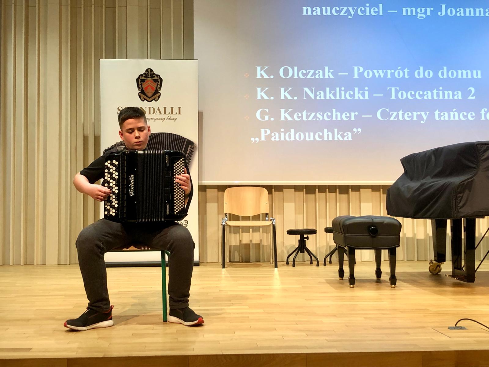 W dniu 19 marca (środa) 2025 r. w naszej szkole odbyły się XXX Jubileuszowe Kaszubskie Spotkania Akordeonowe. Jury w składzie: prof. dr hab. Krzysztof Olczak, prof. dr hab. Elżbieta Rosińska i mgr Marcin Warduliński przesłuchało 36 uczniów oraz 3 zespoły z 17 szkół muzycznych województw: pomorskiego, kujawsko- pomorskiego, zachodniopomorskiego i warmińsko- mazurskiego. Uczniów przygotowało 21 nauczycieli. W ramach XXX Kaszubskich Spotkań Akordeonowych odbył się wykład seminaryjny dla nauczycieli szkół muzycznych I stopnia na temat: „Jak motywować uczniów do ćwiczenia”. Na wszystkich uczestników i nauczycieli, jak co roku, czekały pamiątkowe kubeczki. W wolnym czasie można było podziwiać wystawę akordeonów, którą przygotował Pan Zygmunt Czupryn- przedstawiciel akordeonów Scandalli w Polsce. Zwieńczeniem uroczystości był koncert w wykonaniu gdańskiej orkiestry akordeonowej Pulsanti, którego sponsorem było Starostwo Powiatowe w Kościerzynie.