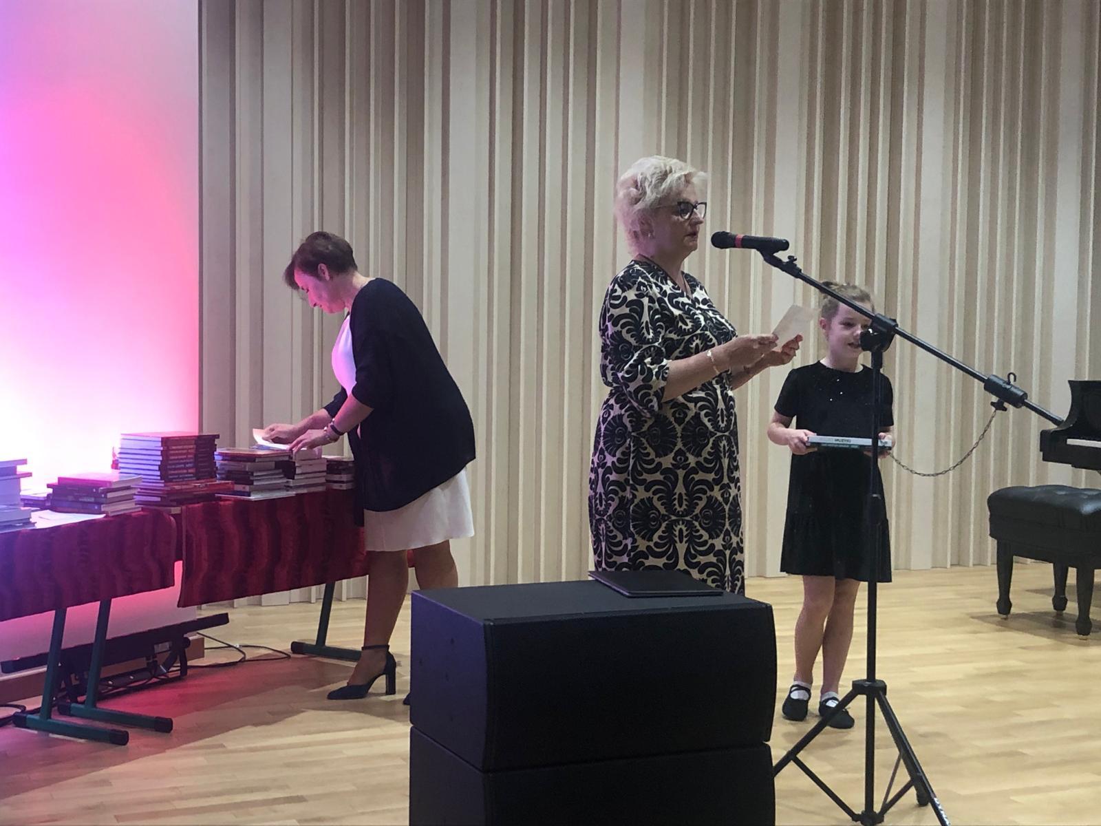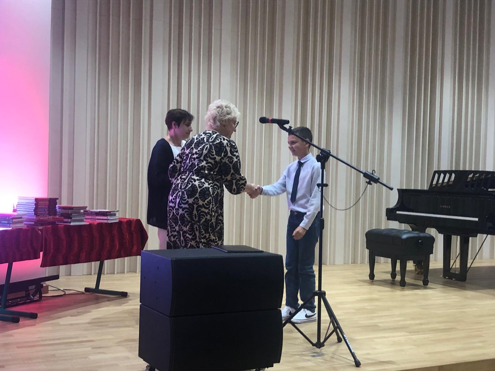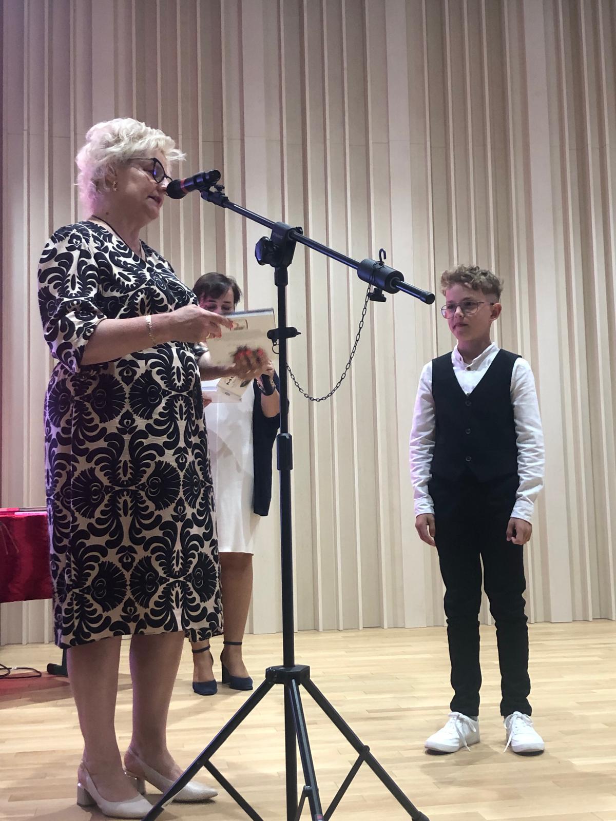 21 czerwca 2024 r. w sali koncertowej szkoły odbyło się uroczyste zakończenie roku szkolnego. Uroczystość poprowadziła dyrektor szkoły Pani Katarzyna Karczewska. Dyrekcja podziękowała Uczniom, Rodzicom i Nauczycielom za całoroczną pracę, trud, zaangażowanie i wysiłek. Pogratulowała uczniom osiągniętych wyników w nauce i nabytych doświadczeń. Podczas gali nagrodzeni zostali uczniowie, którzy osiągnęli najwyższe wyniki w nauce, sukcesy w konkursach, a także Ci, którzy wyróżnili się w pracy na rzecz szkoły. Nagrody dla uczniów zostały ufundowane przez Radę Rodziców. Wyjątkowo miłym akcentem uroczystości było podziękowanie od Rady Rodziców dla całego grona pedagogicznego za wysiłek i trud włożony w edukację dzieci. Podziękowanie kierujemy dla pocztu sztandarowego, którego opiekunem jest Pani Marzena Wirzba oraz dla hejnalistów, których przygotował Pan Wojciech Bednarek.