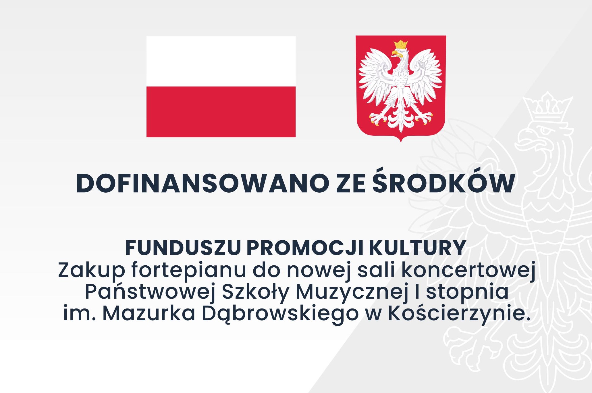 Z radością informujemy, że w miesiącach lipiec- sierpień 2023 r. Państwowa Szkoła Muzyczna I stopnia im. Mazurka Dąbrowskiego w Kościerzynie realizowała zadanie pod nazwą: „Zakup fortepianu do nowej sali koncertowej Państwowej Szkoły Muzycznej I stopnia im. Mazurka Dąbrowskiego w Kościerzynie ”. Szkole udało się zakupić ze środków Ministra Kultury i Dziedzictwa Narodowego pochodzących z Funduszu Promocji Kultury- państwowego funduszu celowego fortepian koncertowy Yamaha CFX PE wraz z pokrowcem i dwiema ławami hydraulicznymi. Wartość zakupu wyniosła 680 000 zł, z czego 400 000 zł pochodziło z programu Ministra Kultury i Dziedzictwa Narodowego „Infrastruktura szkolnictwa artystycznego”, a pozostałe 280 000 zł- ze środków Centrum Edukacji Artystycznej w Warszawie. Zakup nowego fortepianu do sali koncertowej posłuży młodym adeptom do rozwijania swoich umiejętności pianistycznych. Nowy, profesjonalny fortepian spełni oczekiwania artystów i odbiorców sztuki.