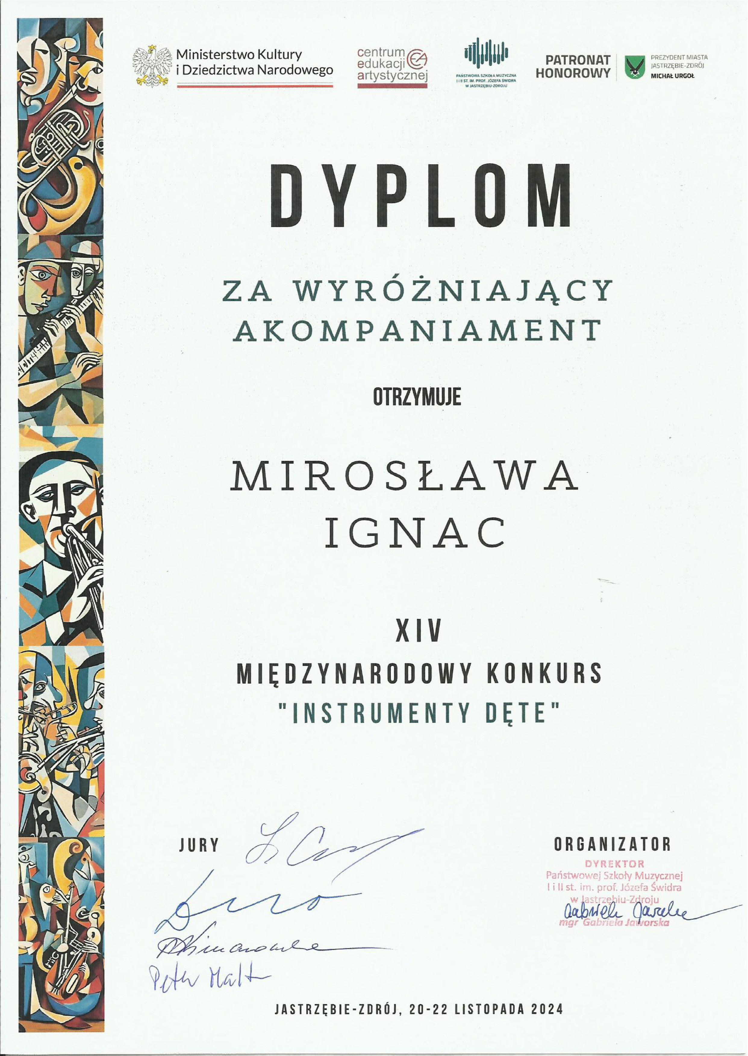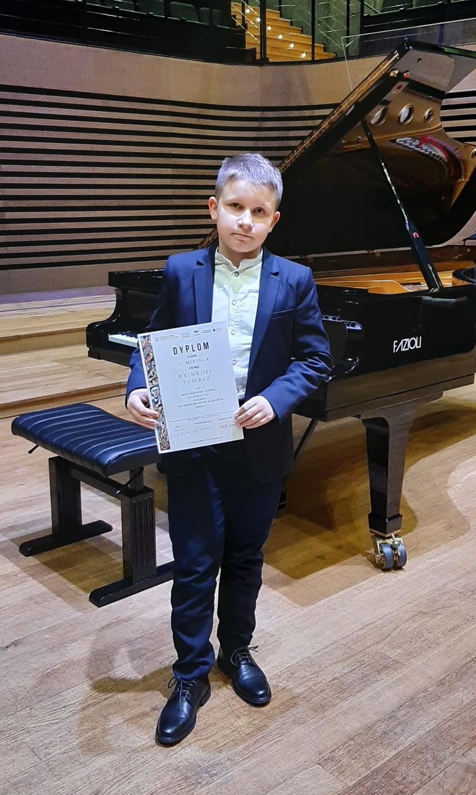 Sukcesem zakończył się udział Tomasza Weinkopfa, ucznia klasy V c.6-l. w XIV Międzynarodowym Konkursie "Instrumenty Dęte" w Jastrzębiu-Zdrój. Otrzymał on w nim II miejsce w kategorii instrumentów dętych blaszanych (grupa I). Gratulujemy Tomaszowi oraz jego nauczycielowi, panu Andrzejowi Weinkopfowi oraz pani akompaniator Mirosławie Ignac tego wyróżniającego wystąpienia.