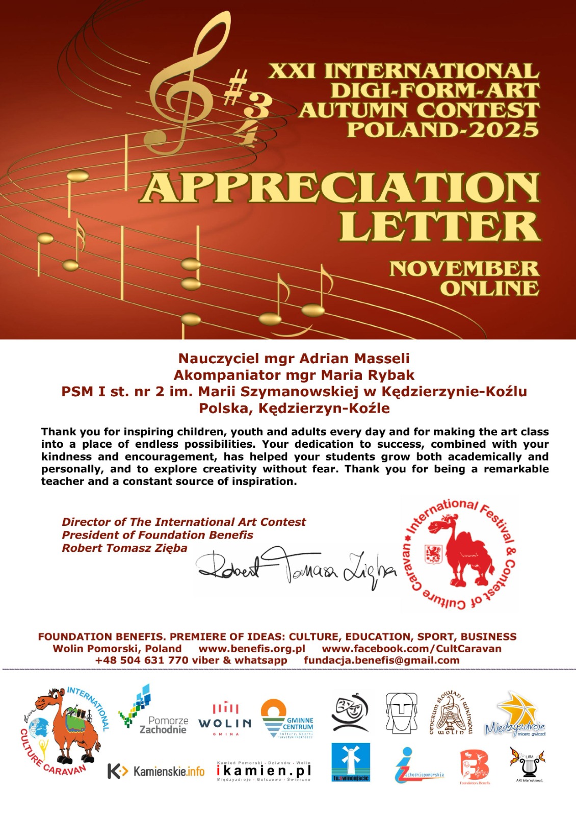 • I miejsce w XXI Międzynarodowym Konkursie „ Digi-Form-Art ” w kategorii Junior III (13-15 lat)