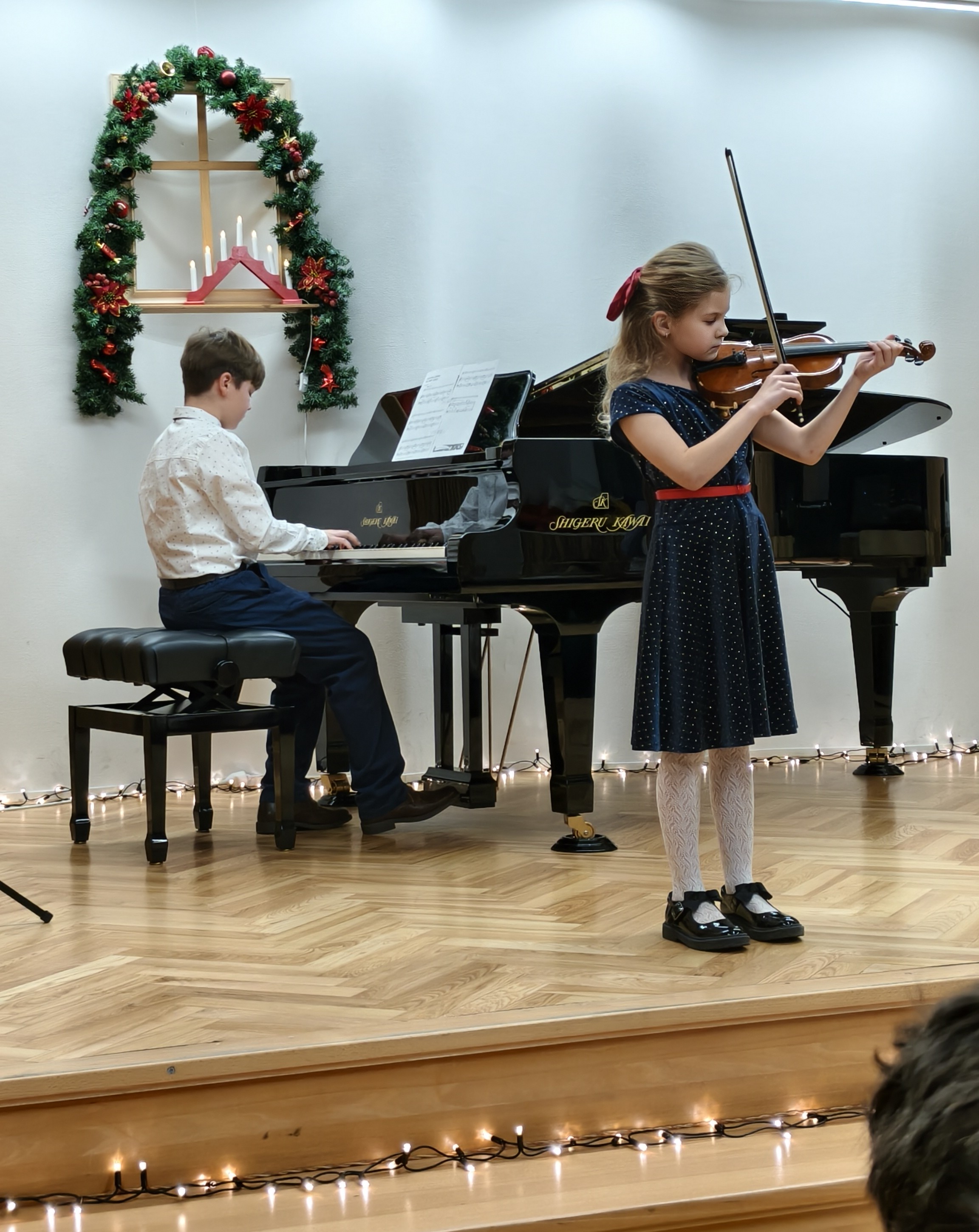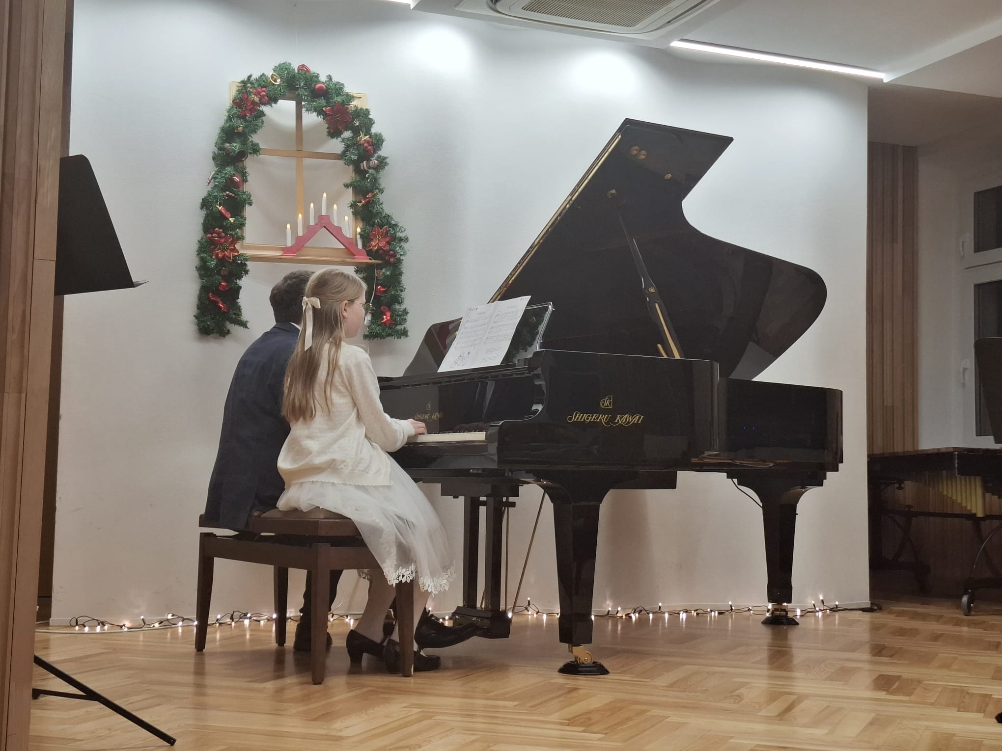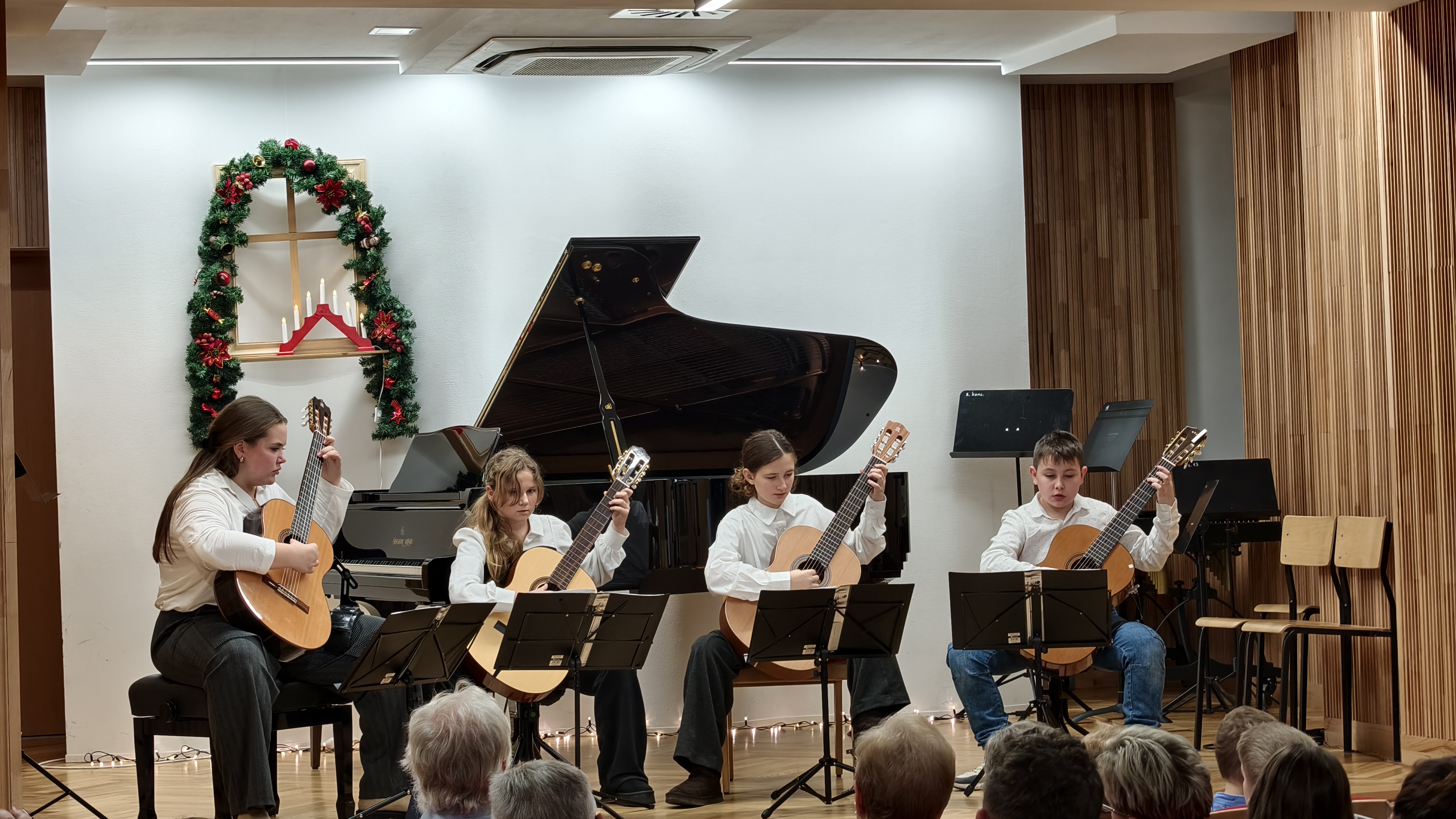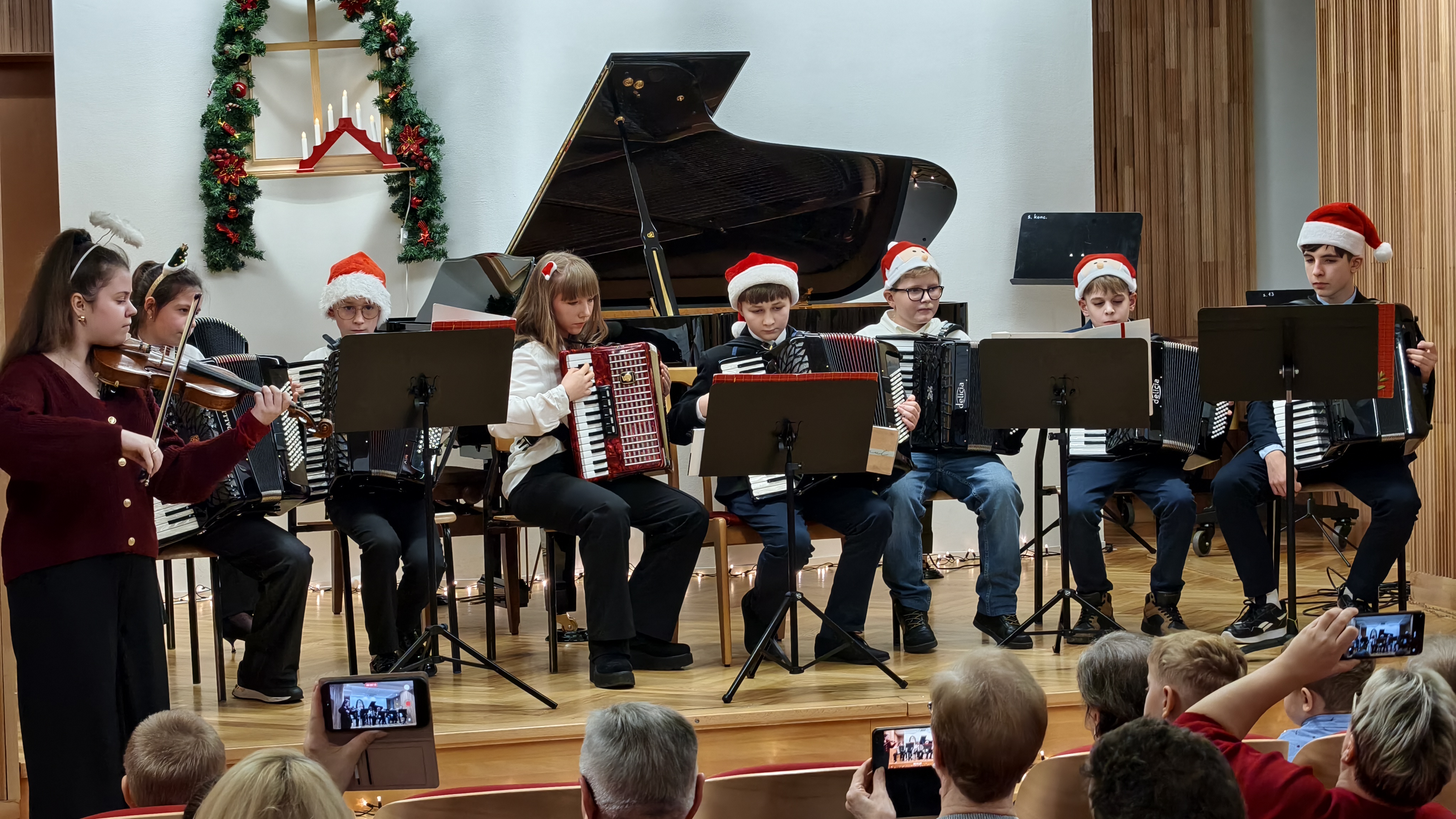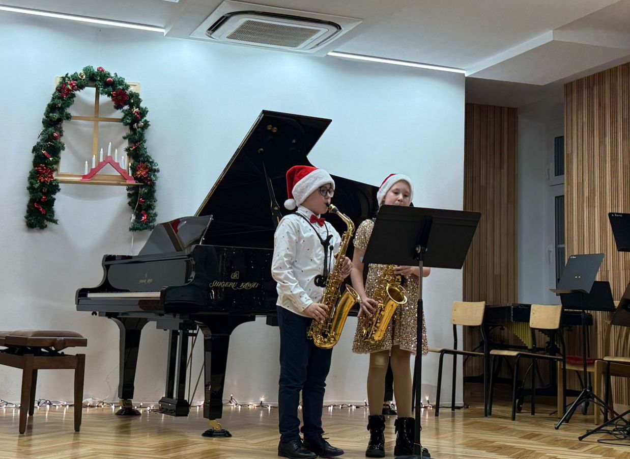 18 grudnia 2025 r. w radosnym świątecznym nastroju, uczniowie muzykowali w różnych zespołach, a licznie zgromadzona publiczność ze wzruszeniem wsłuchiwała się w melodie kolęd.