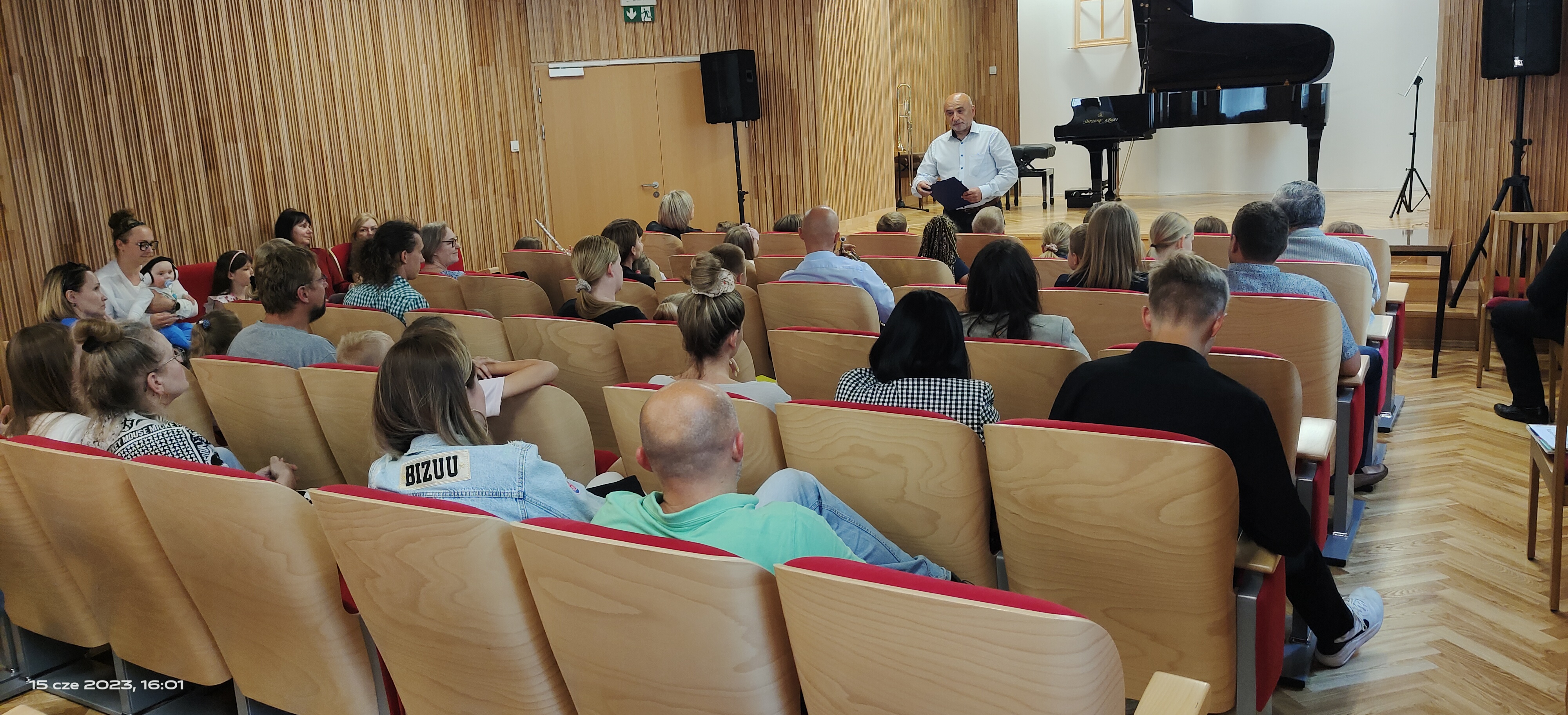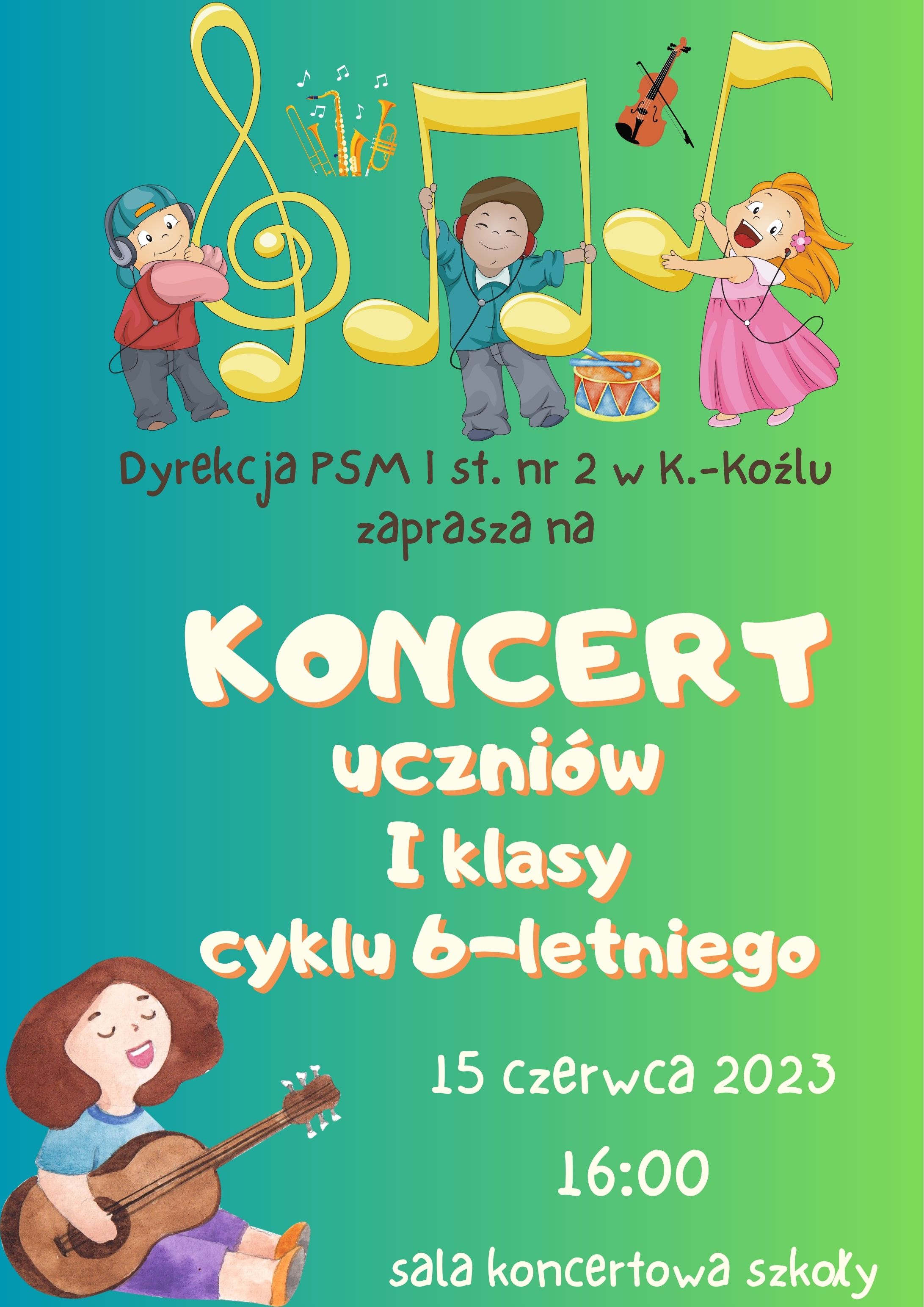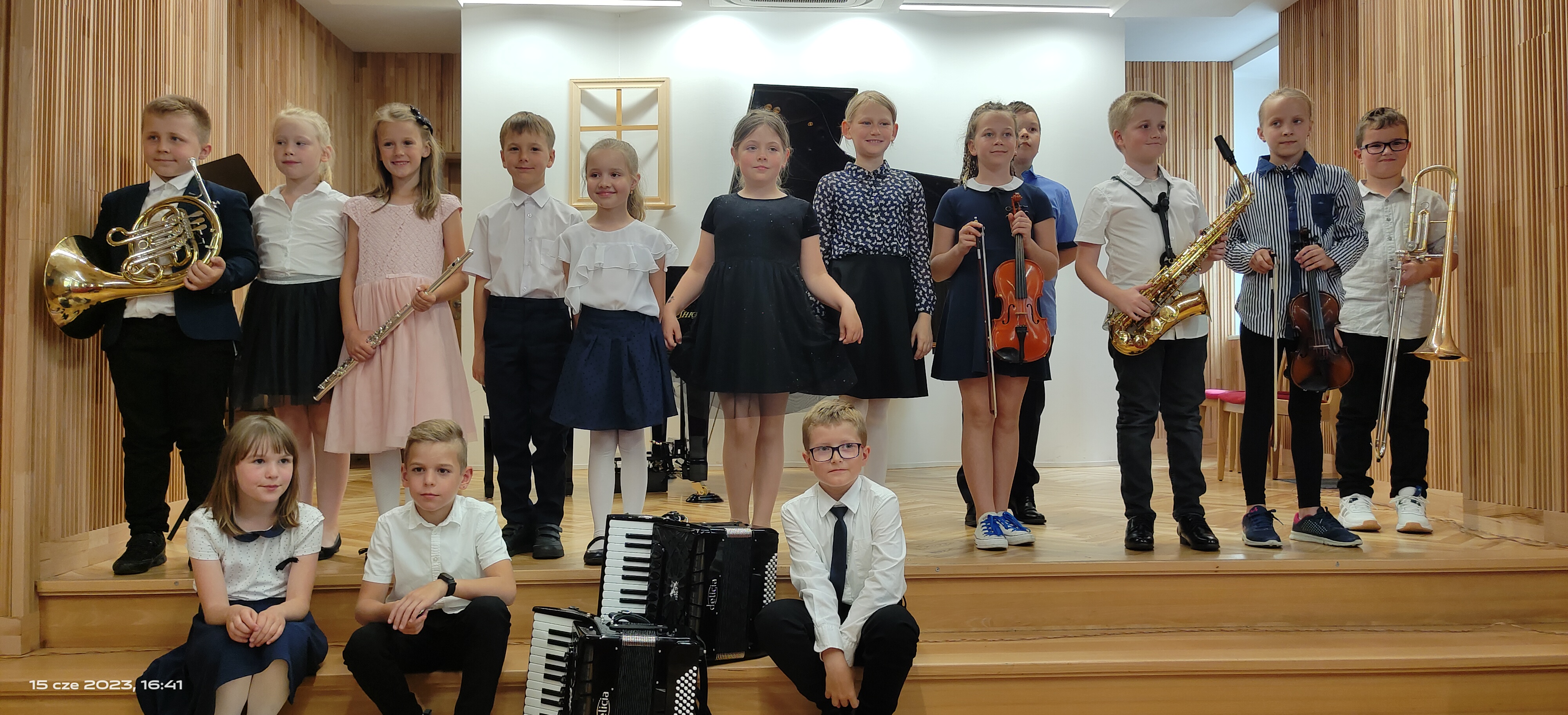 Koncert wszystkich uczniów I klasy cyklu 6-letniego odbył się 15 czerwca 2023 roku o godzinie 16.00 w sali koncertowej szkoły.