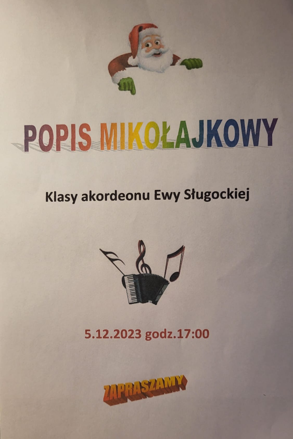 We wtorek 05.12.2023 odbył się w szkole "Mikołajkowy koncert" uczniów klasy akordeonu naucz. Ewy Rudzkiej-Sługockiej.