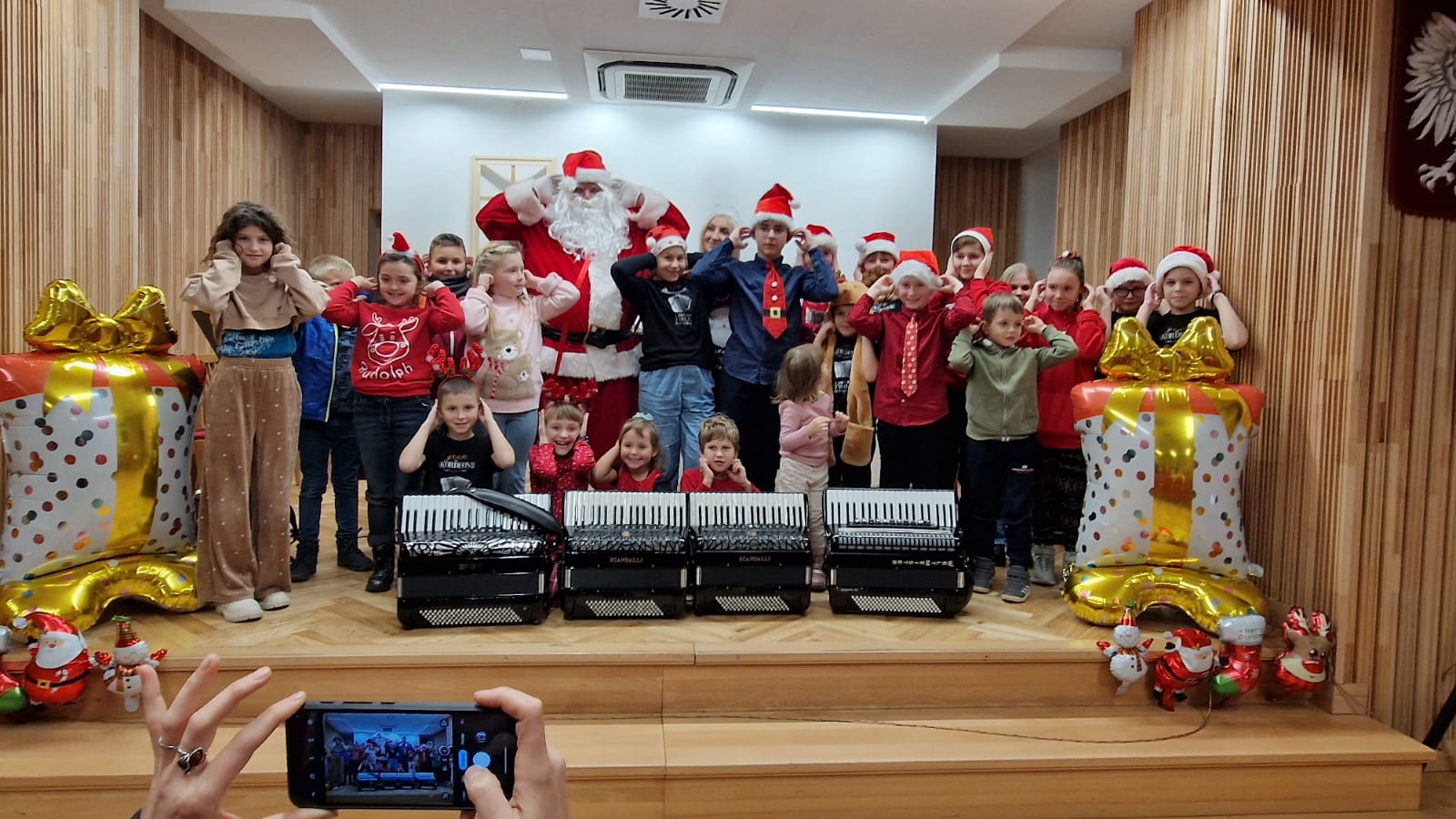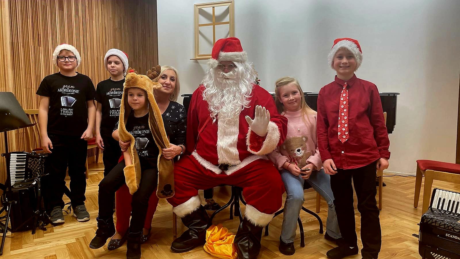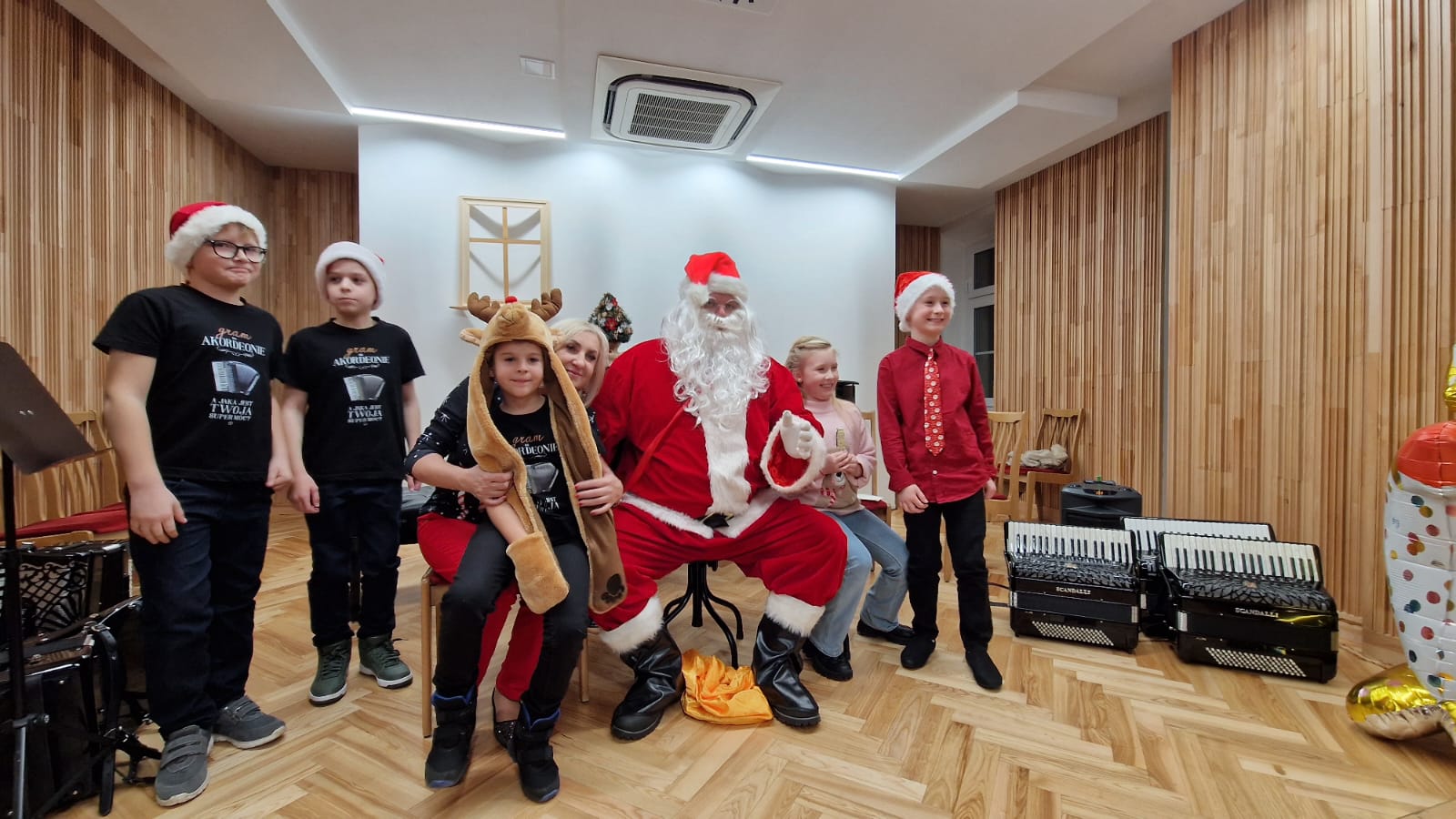3 grudnia 2024 r. uczniowie klasy akordeonu naucz. Ewy Rudzkiej-Sługockiej wystąpili w popisie klasowym. Specjalnym gościem koncertu był Mikołaj, co było dla młodych muzyków wspaniałą niespodzianką.