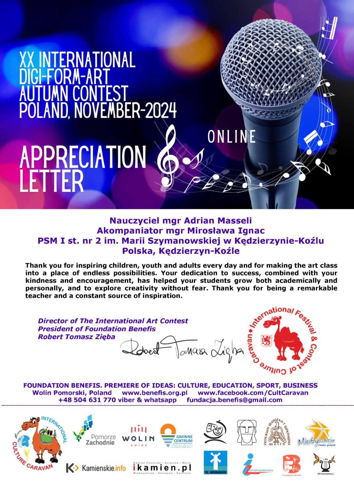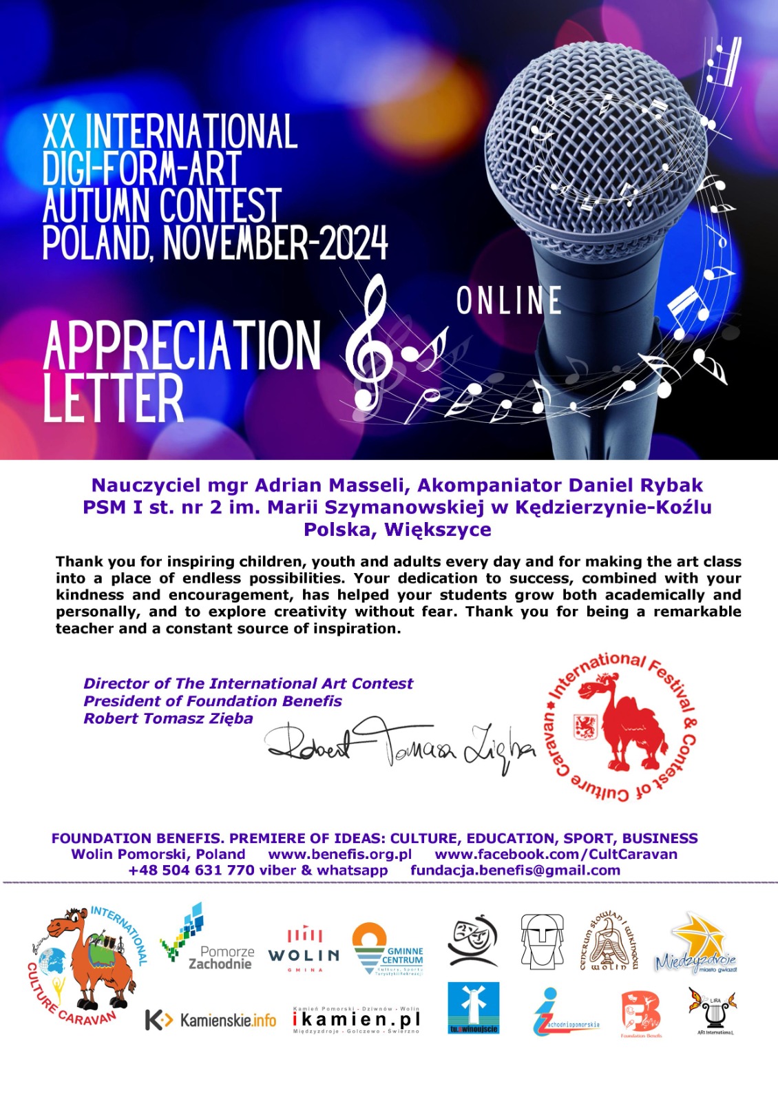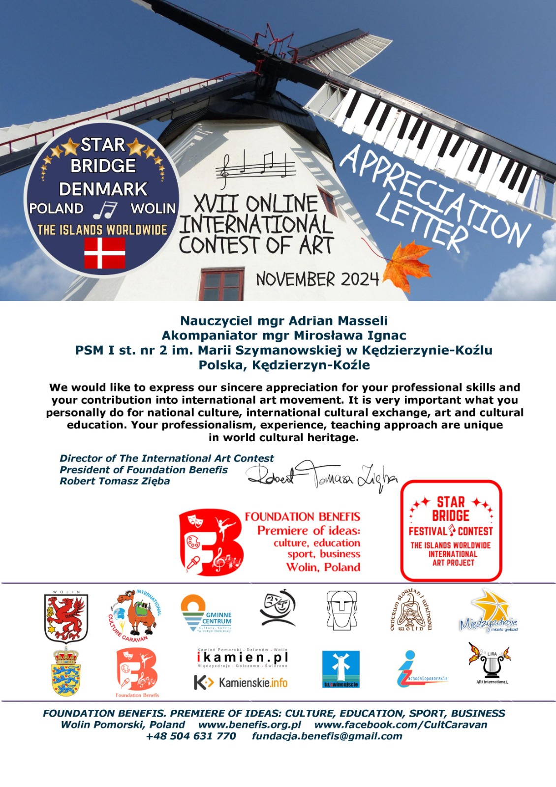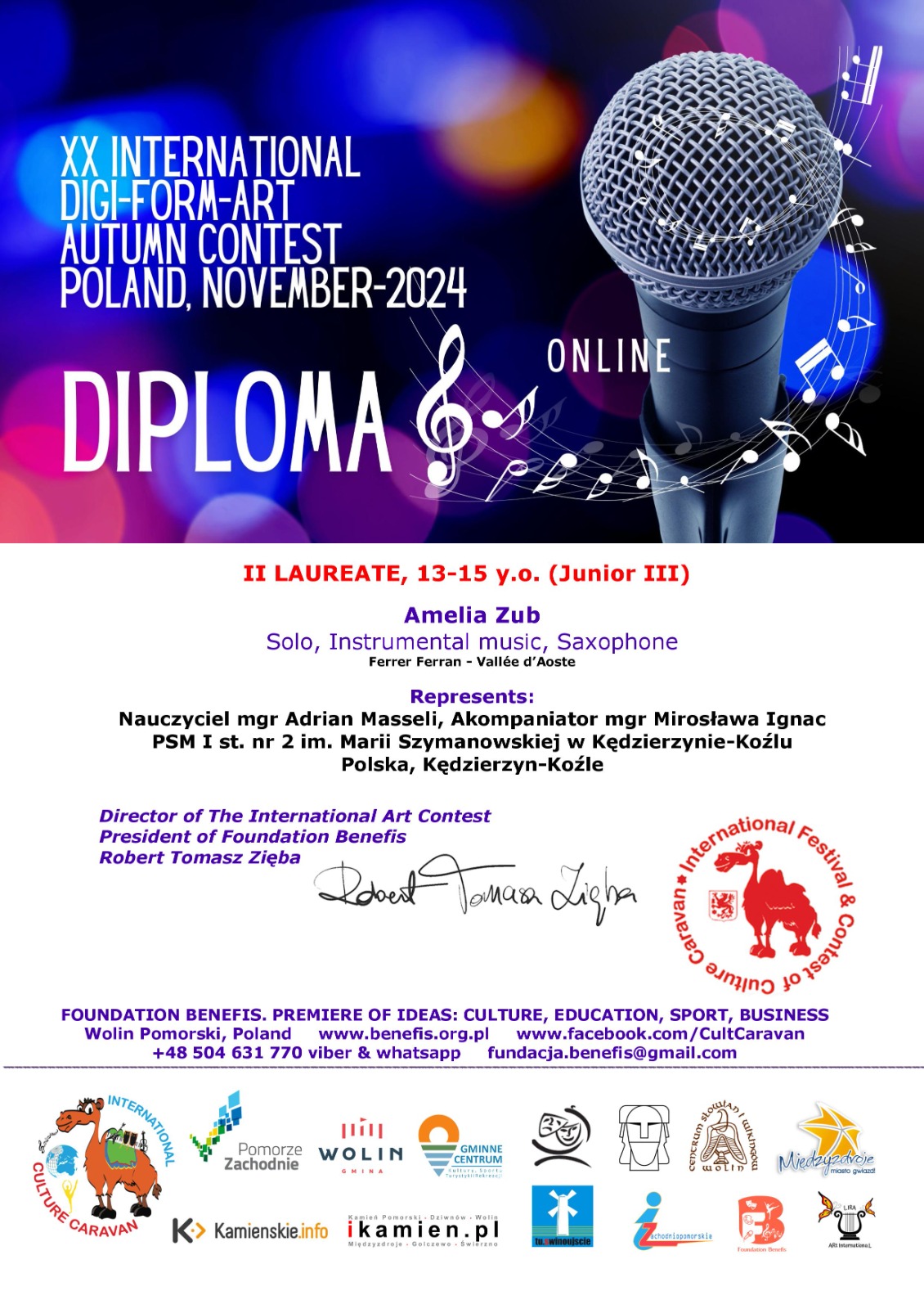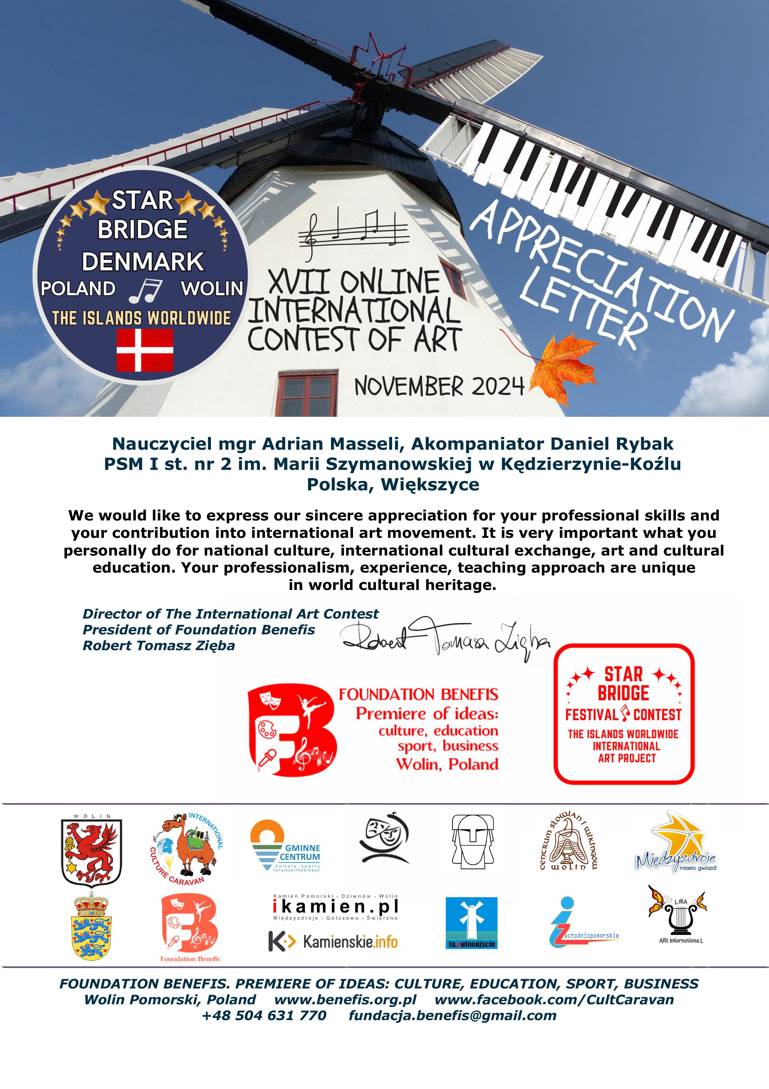 - II miejsce w "XVII International Contest of Art "Star Bridge of the Islands Worldwide Wolin- Dania 2024” w kategorii - Junior III (13-15 lat)