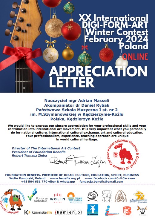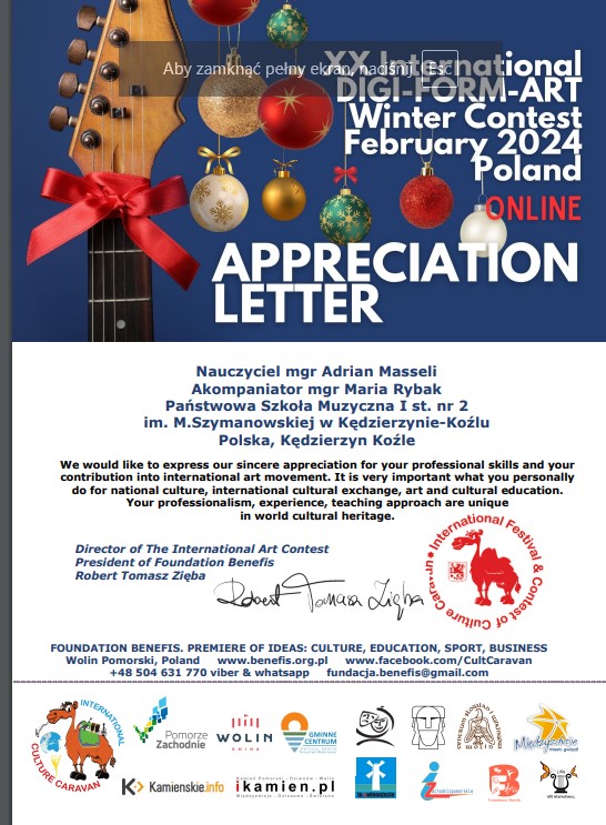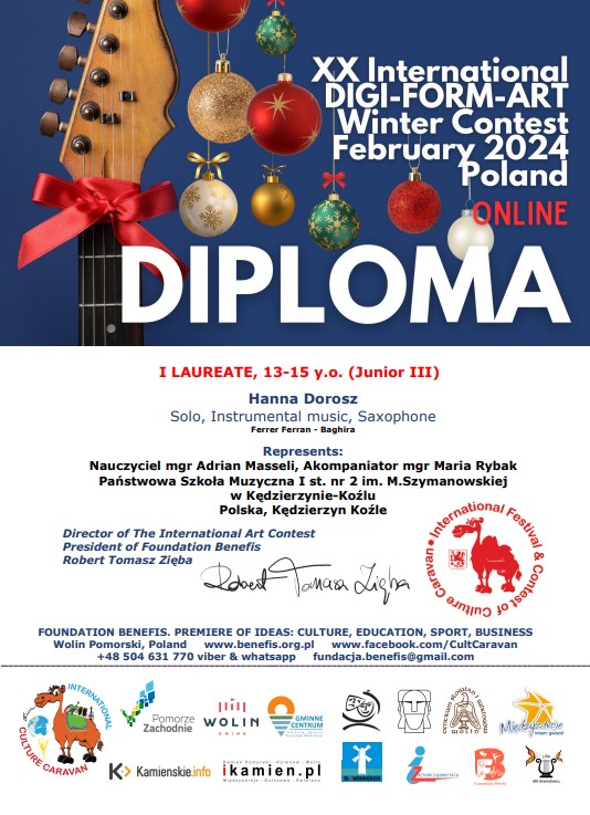 - I miejsce w Międzynarodowym Konkursie Internetowym "XX International Winter Contest „Digi-Form-Art 2024 ” w kategorii - Junior III (13-15 lat)