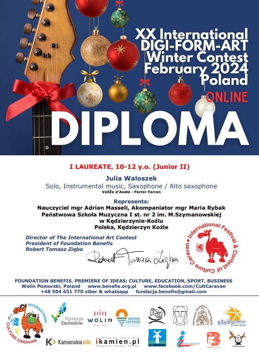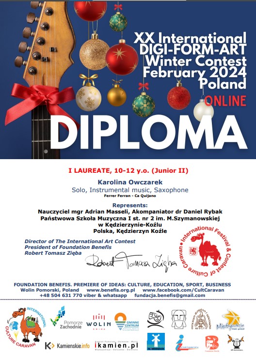 - I miejsce w Międzynarodowym Konkursie Internetowym "XX International Winter Contest „Digi-Form-Art 2024 ” w kategorii - Junior II (10-12 lat)