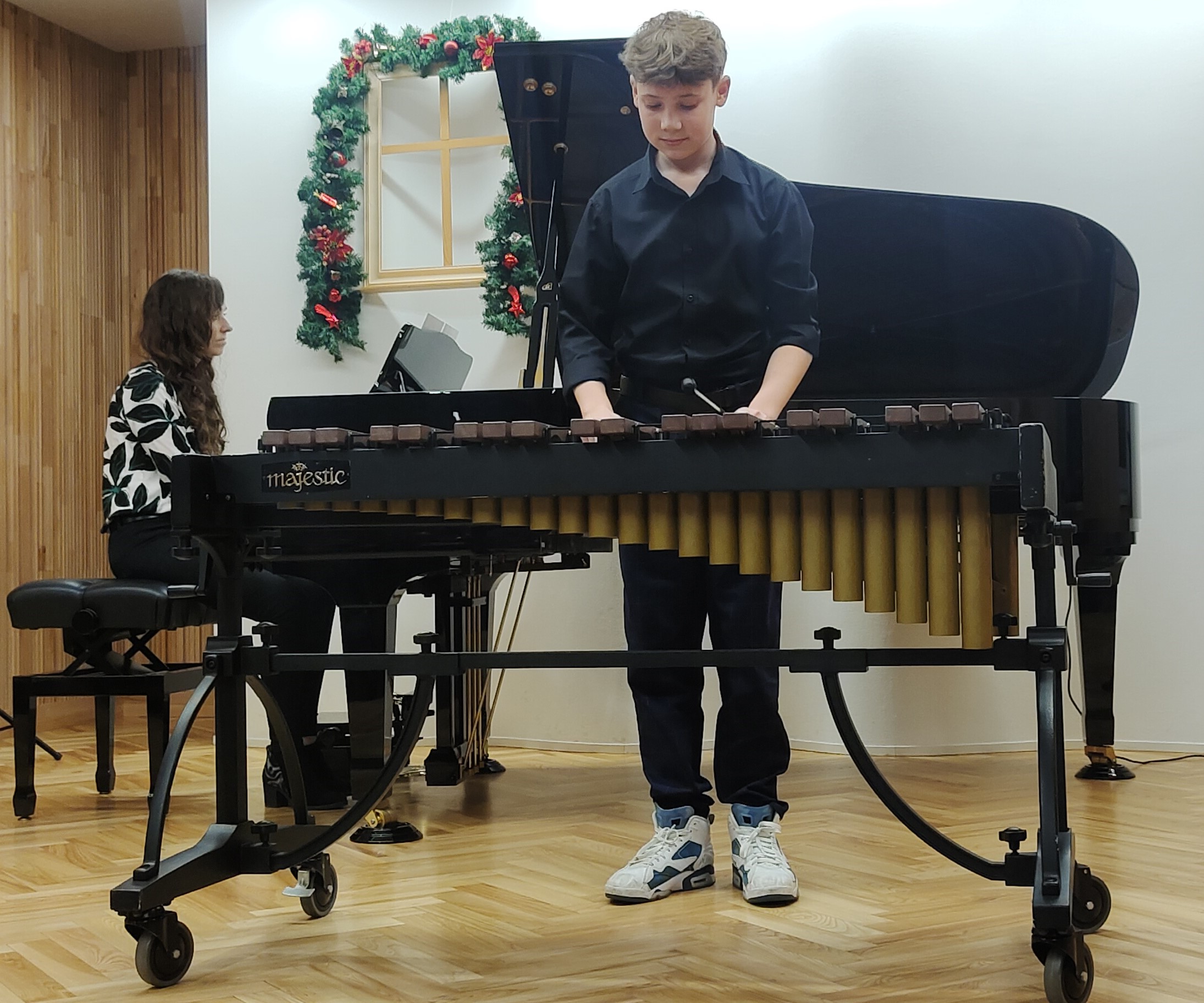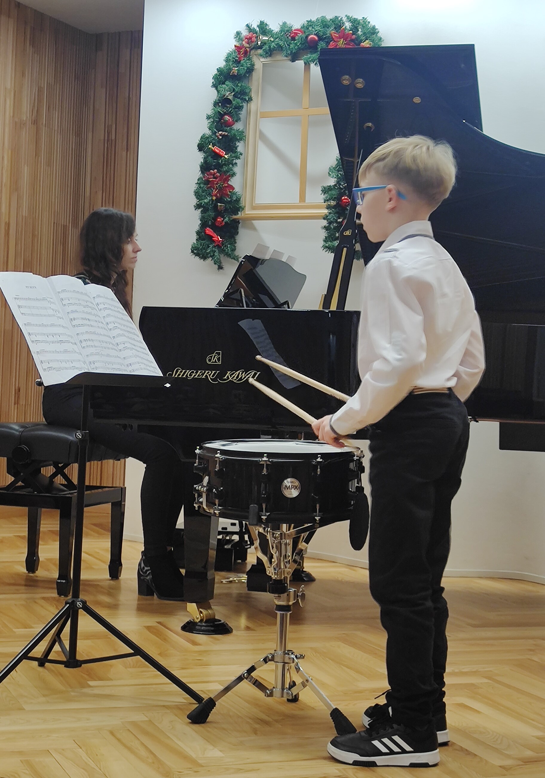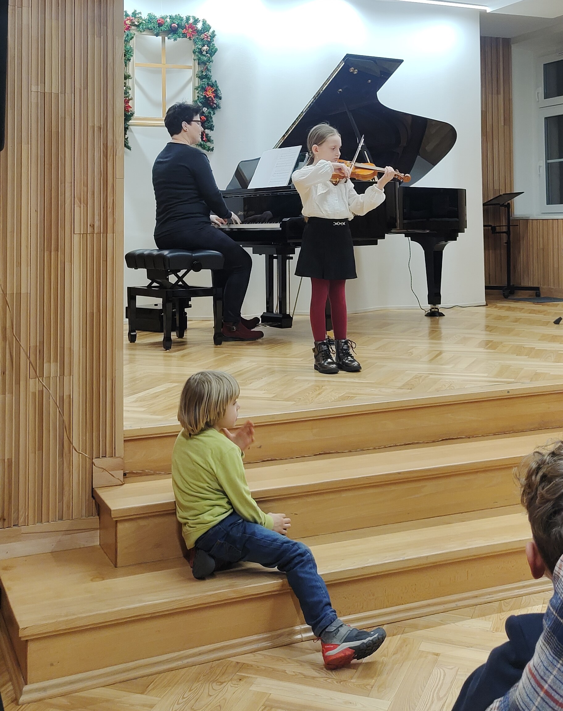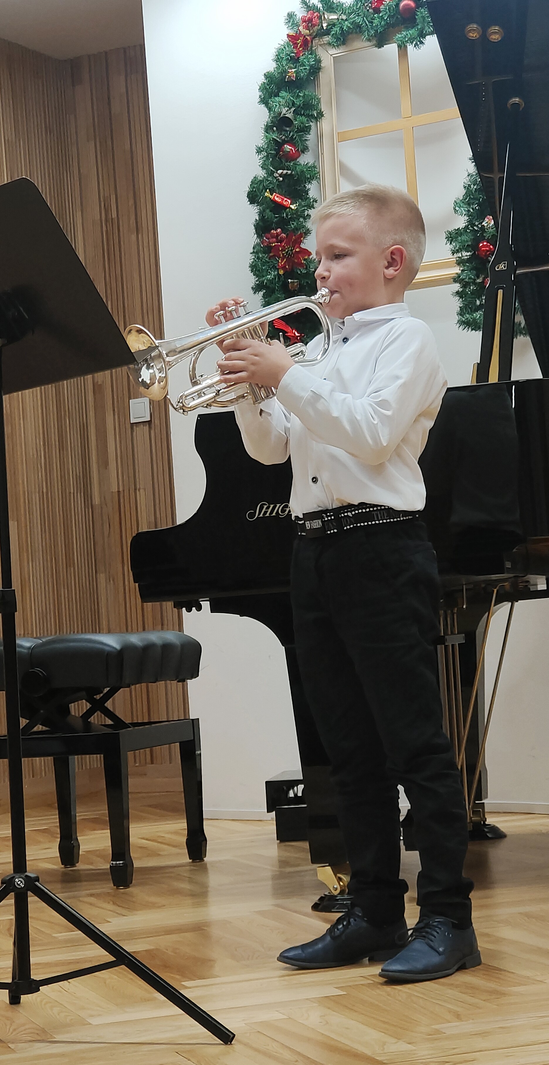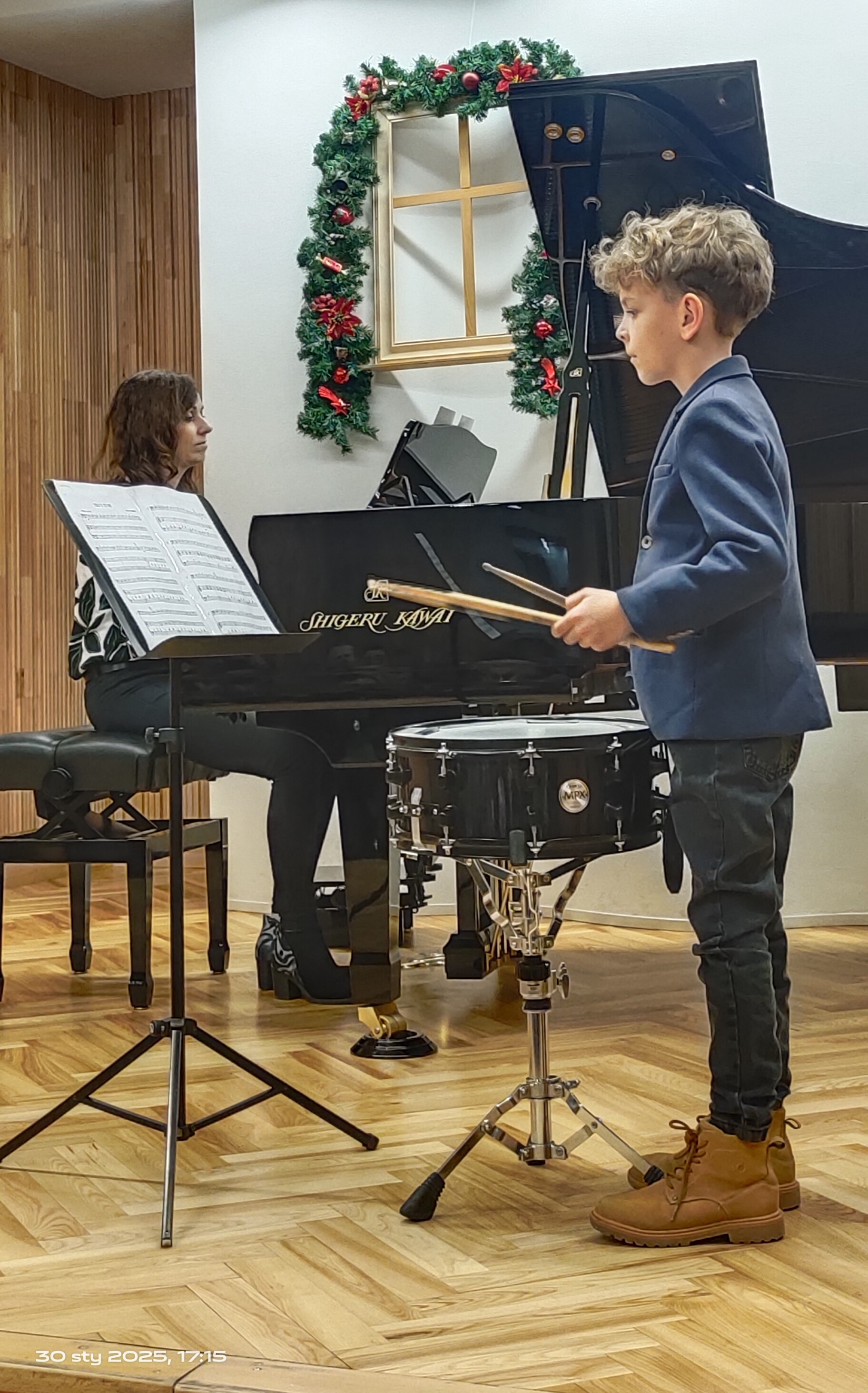Ostatnim muzycznym akcentem pierwszego półrocza był popis uczniów klasy I cyklu 6-letniego, dla których w większości był to pierwszy występ na scenie. Popis poprowadziła naucz. Mirosława Ignac, a uczniom akompaniowali ich nauczyciele.