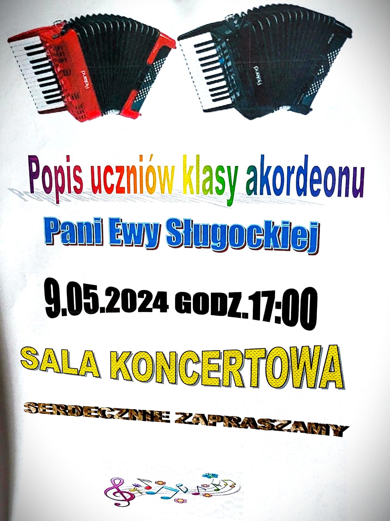9 maja odbył się popis klasowy uczniów akordeonu naucz. Ewy Rudzkiej-Sługockiej. Dziękujemy za przygotowanie uczniów i serdecznie gratulujemy występów.