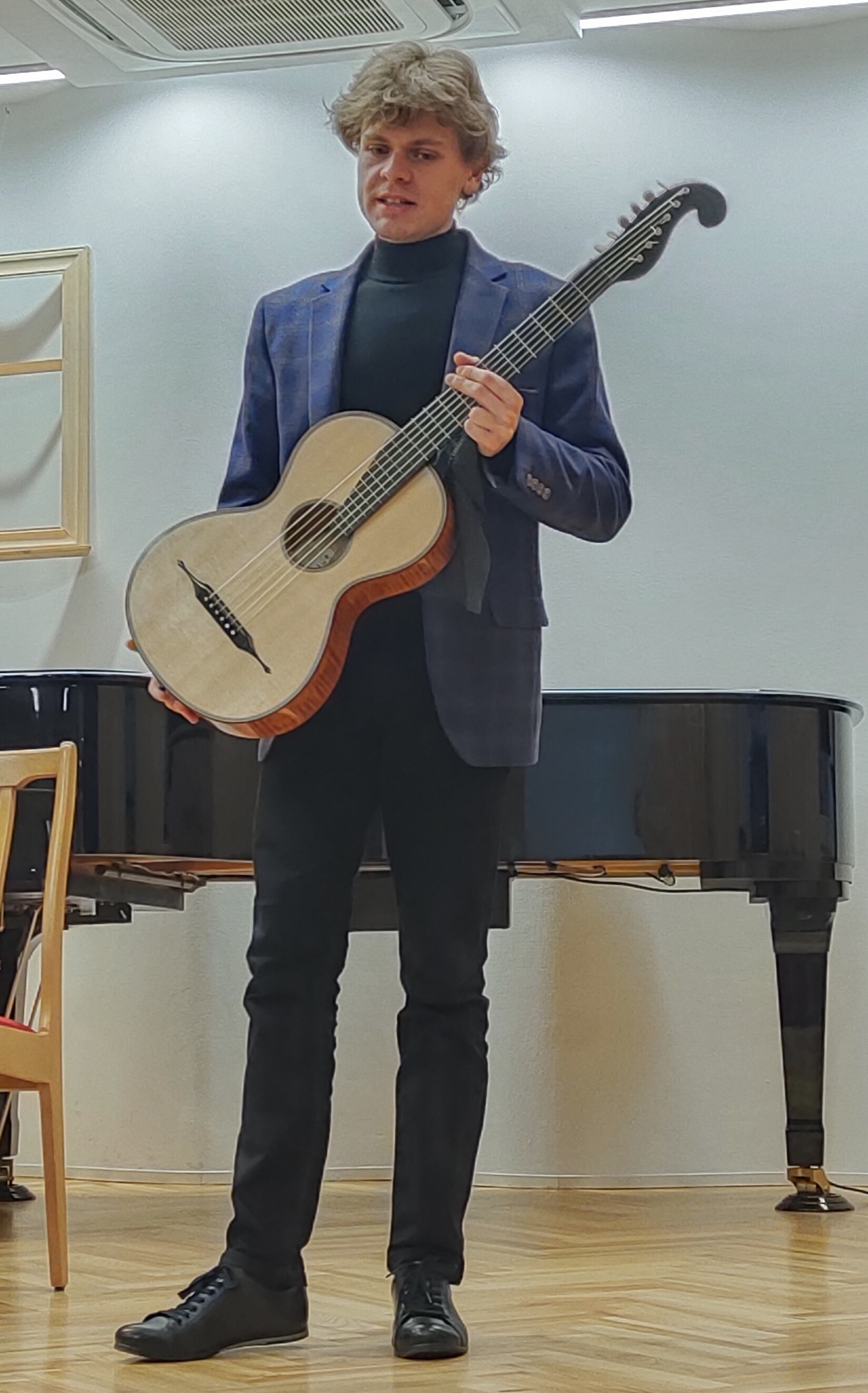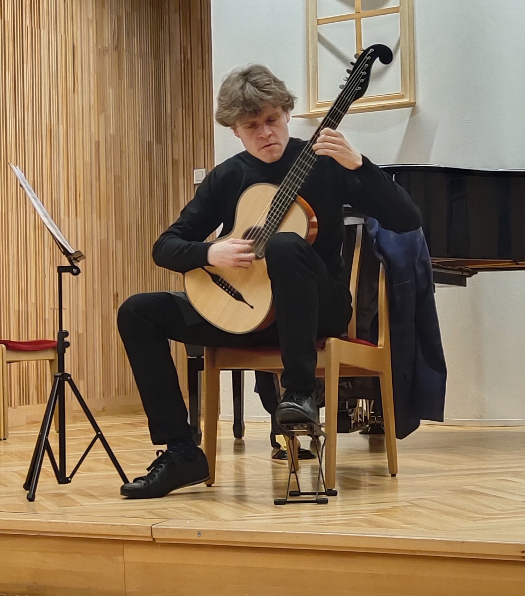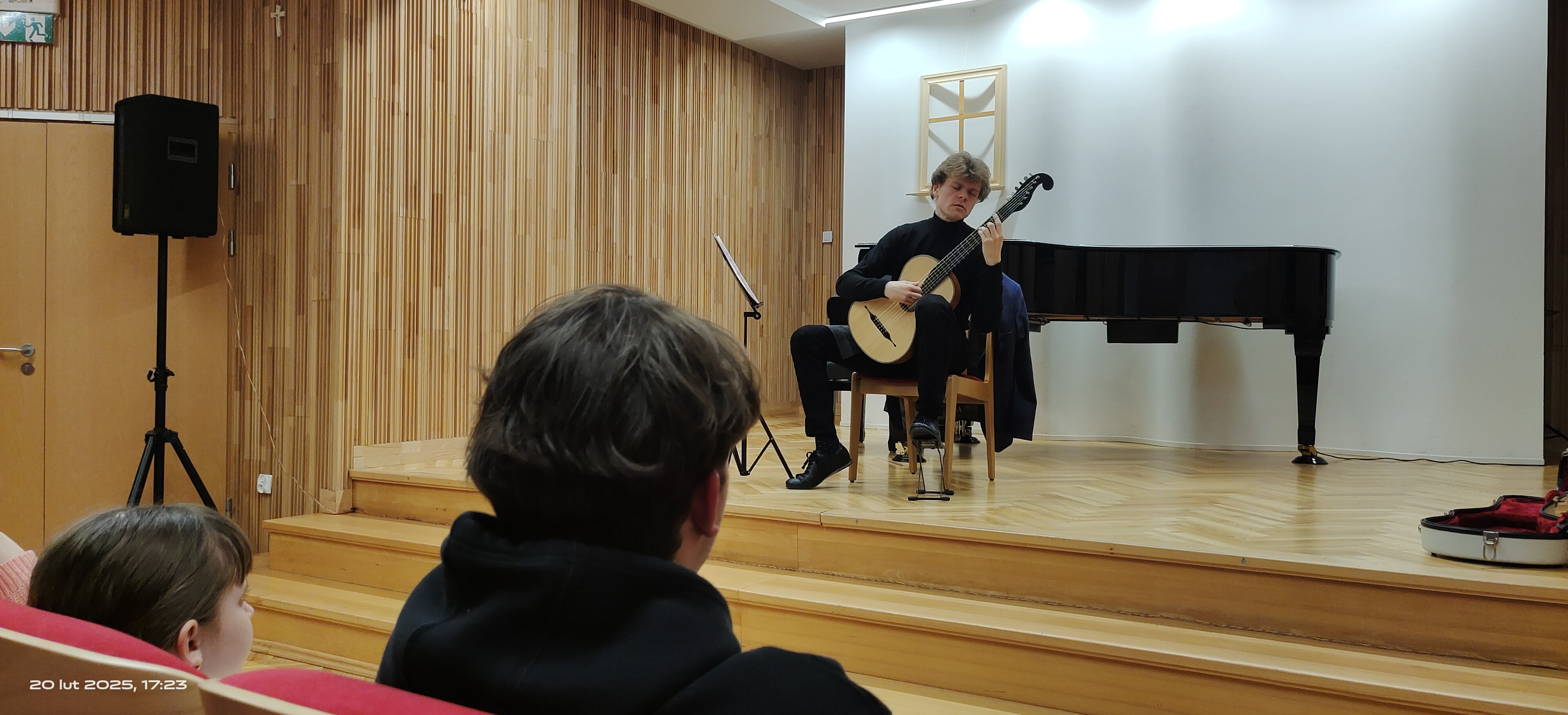 20 lutego 2025 roku w murach naszej szkoły wystąpił Jakub Moroziński - solista i kameralista, absolwent katowickiej Akademii Muzycznej, laureat konkursów ogólnopolskich i międzynarodowych oraz pedagog Państwowej Szkoły Muzycznej I i II stopnia im. Ludomira Różyckiego w Gliwicach. W repertuarze usłyszeliśmy gitarową suitową muzykę dawną.