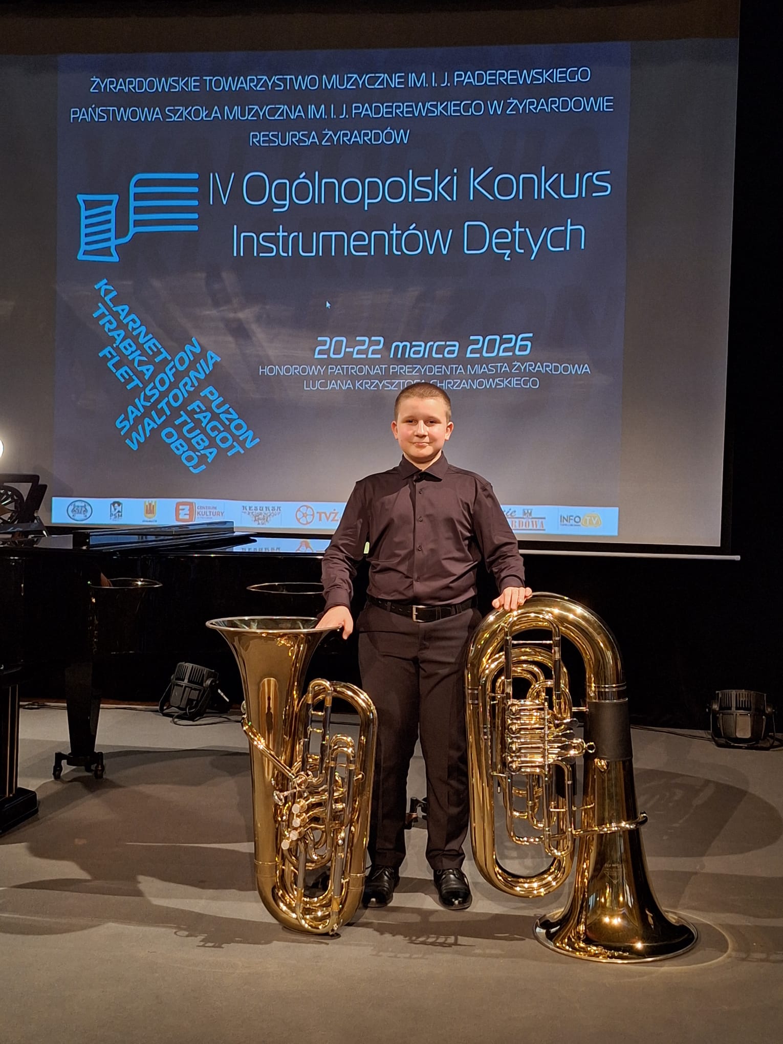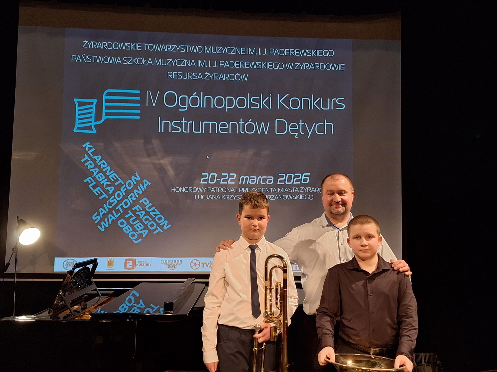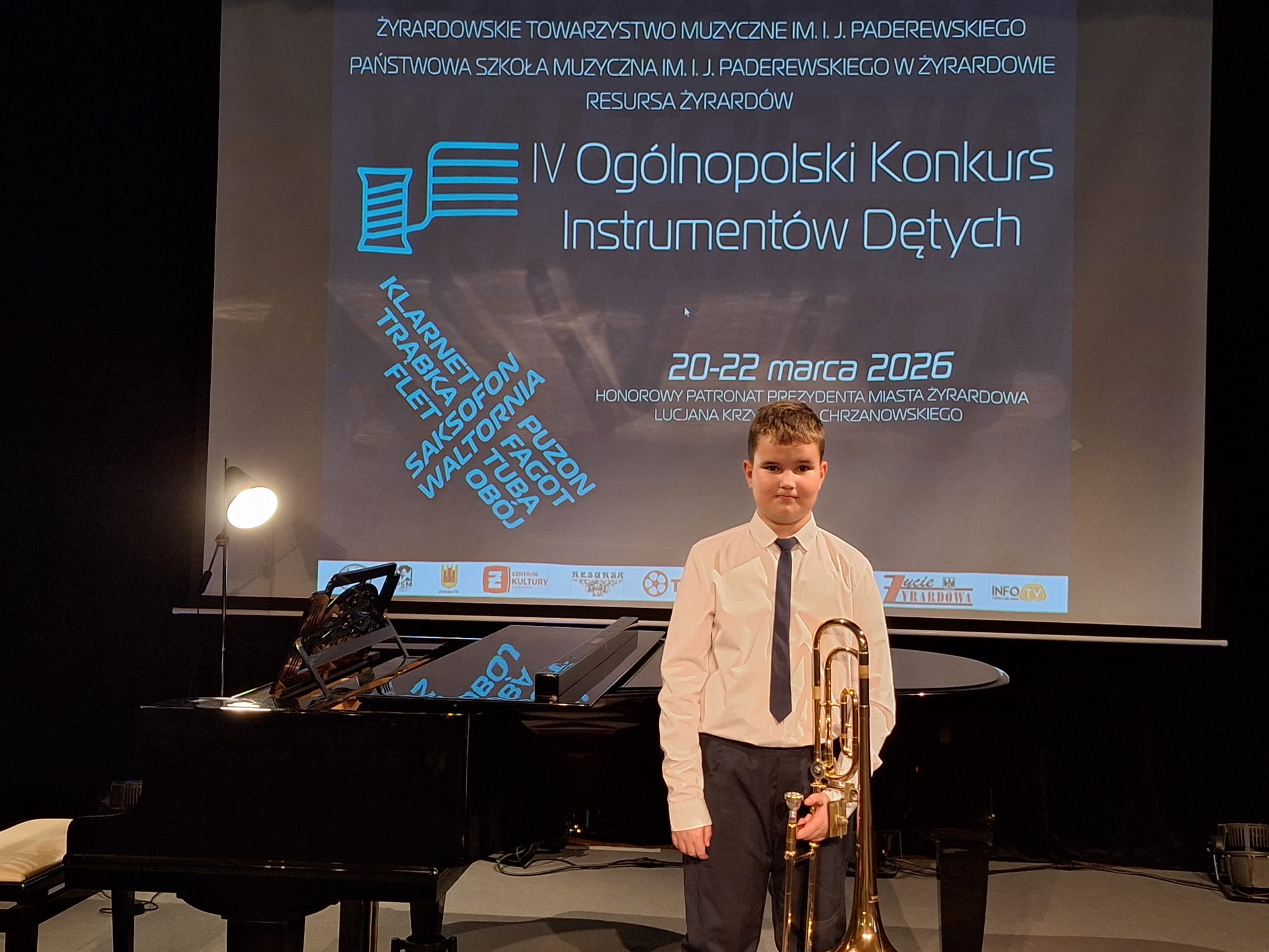 Z dumą informujemy o wynikach naszych uczniów podczas IV Ogólnopolskiego Konkursu Instrumentów Dętych, który odbył się w dniach 20-22 marca 2026 r. w Żyrardowie.