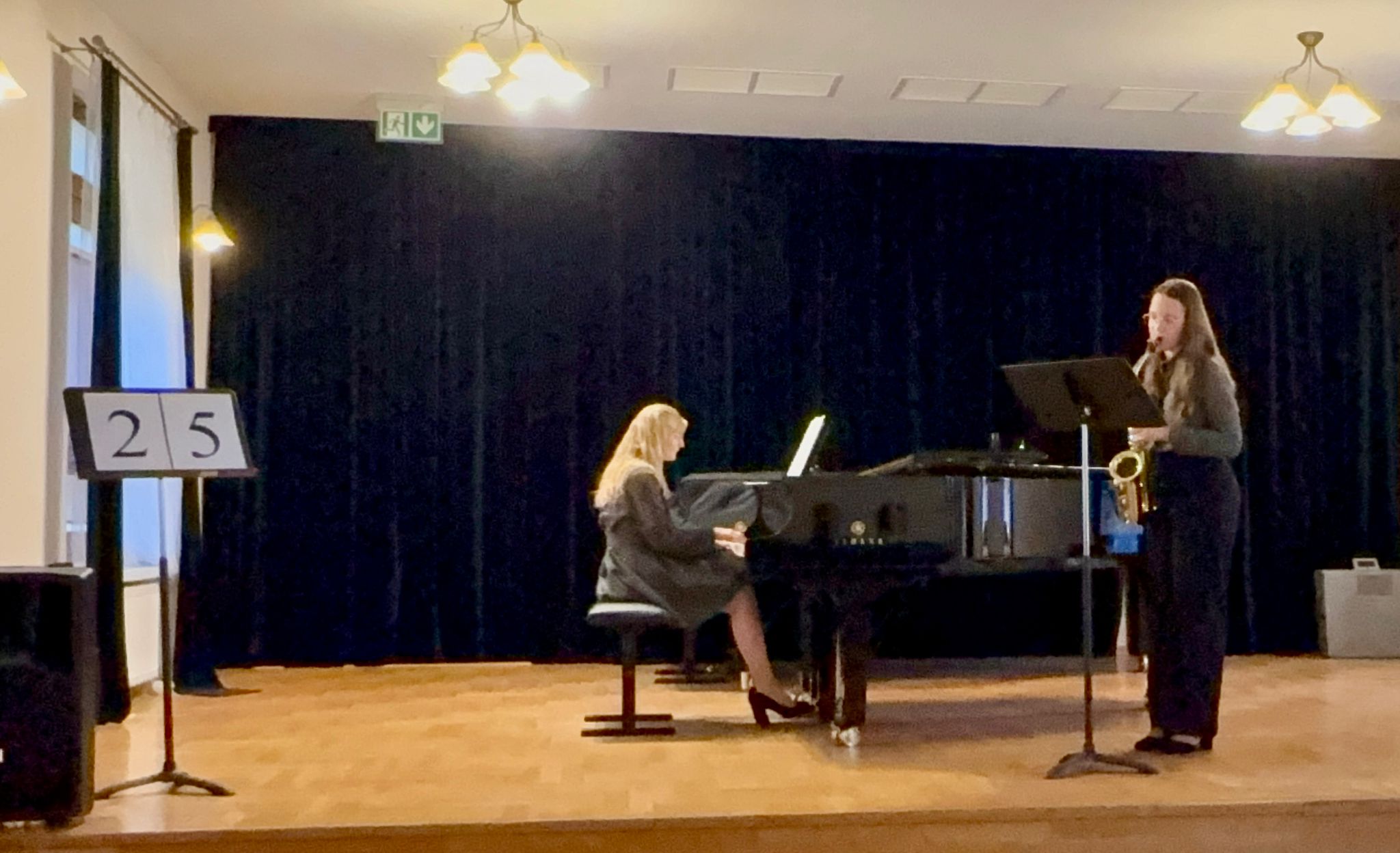 Uczniom podczas prezentacji konkursowych towarzyszyły pianistki-akompaniatorki - Mirosława Ignac i Maria Rybak.