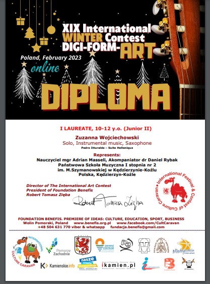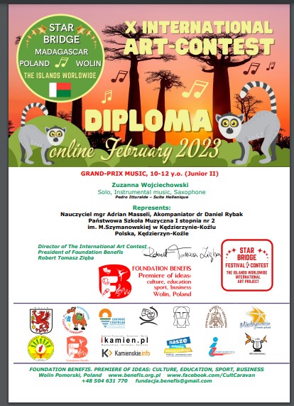 - GRAND PRIX w konkursie "Star Bridge of the Islands Worldwide Wolin-Madagascar 2023” w kategorii Junior II (10-12 lat)