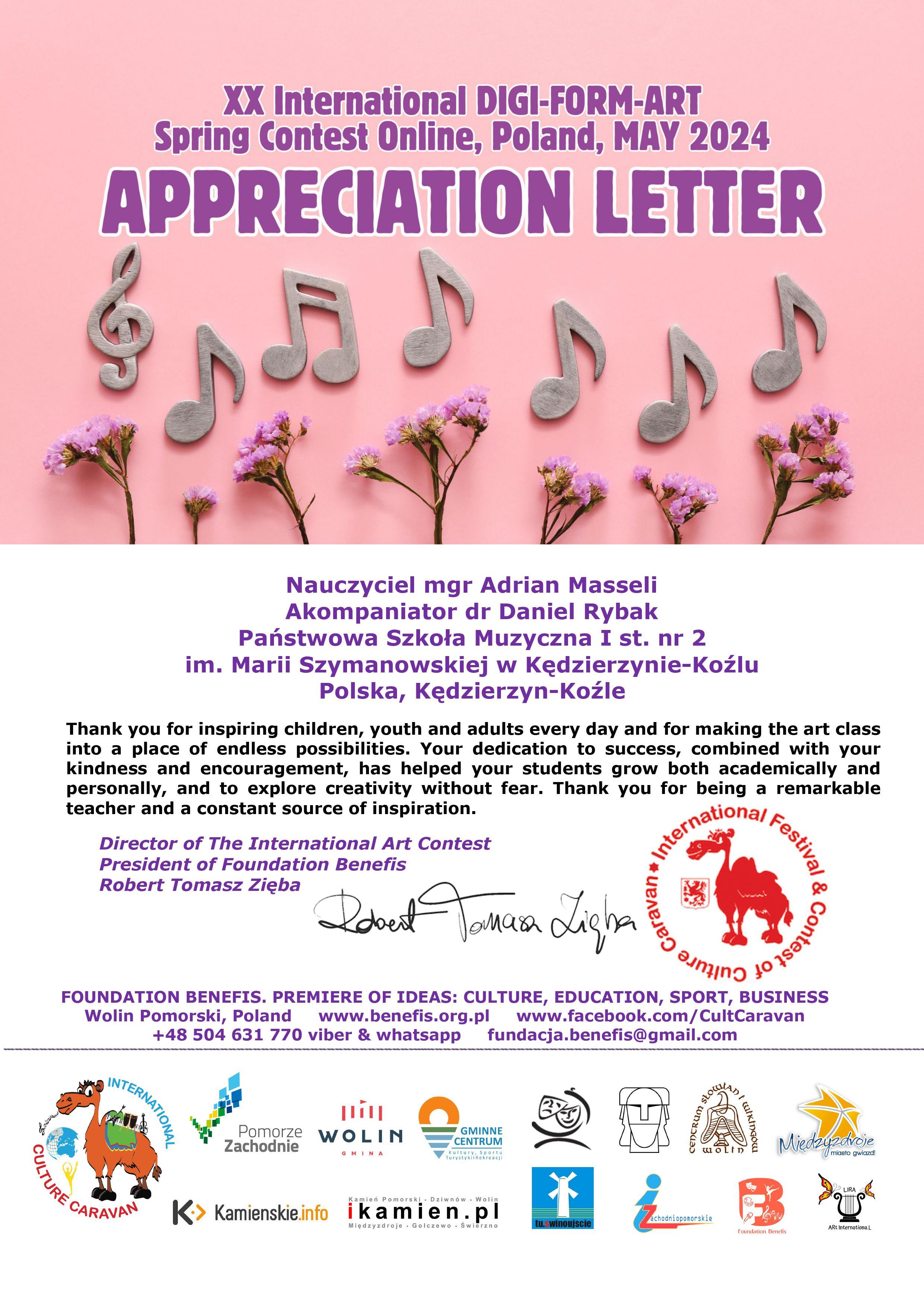 - I miejsce w Międzynarodowym Konkursie Internetowym "XX International Winter Contest „Digi-Form-Art 2024 ” w kategorii - Junior III (13-15 lat)