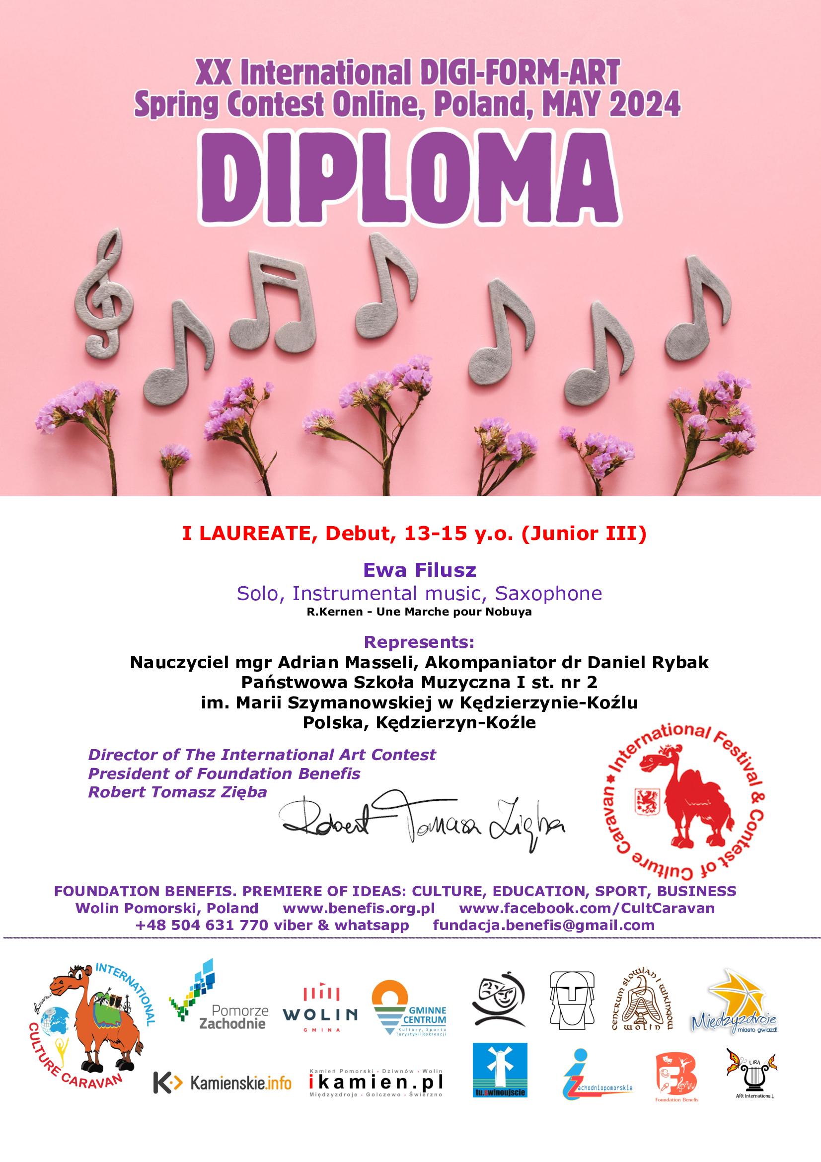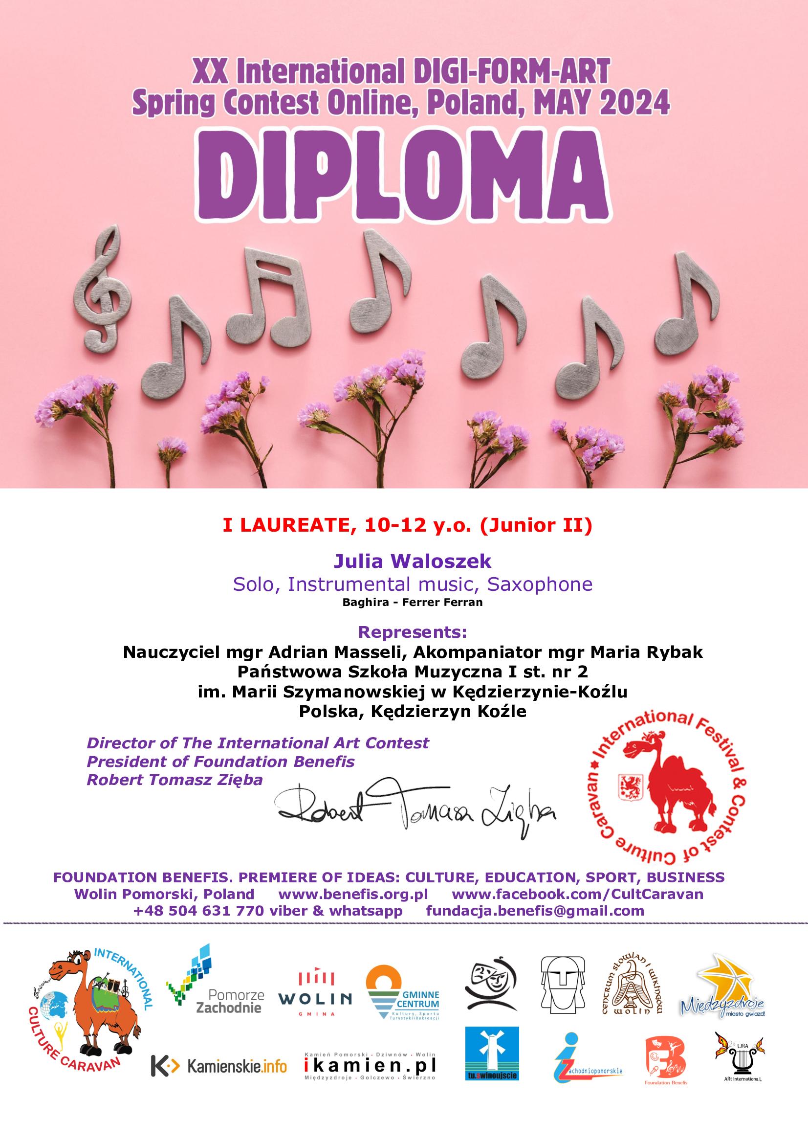 - I miejsce w Międzynarodowym Konkursie Internetowym "XX International 'Spring Contest Digi-Form-Art 2024” w kategorii - Junior II (10-12 lat)