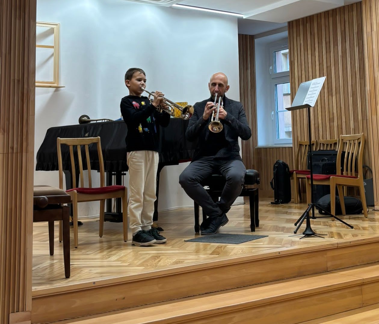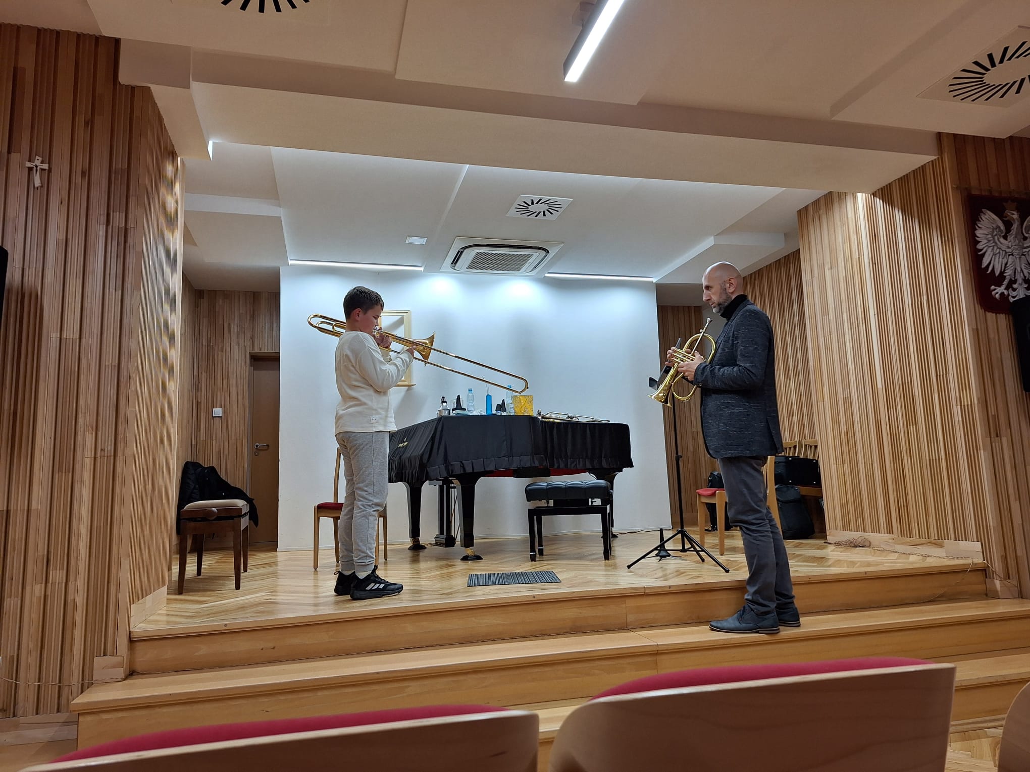 28 października 2025 r. uczniowie klasy instrumentów dętych blaszanych wzięli udział w warsztatach, które poprowadził prof. Bartosz Gaudyn (I trębacz - solista Filharmonii Śląskiej oraz prof. Akademii Muzycznej im. Krzysztofa Pendereckiego w Krakowie)