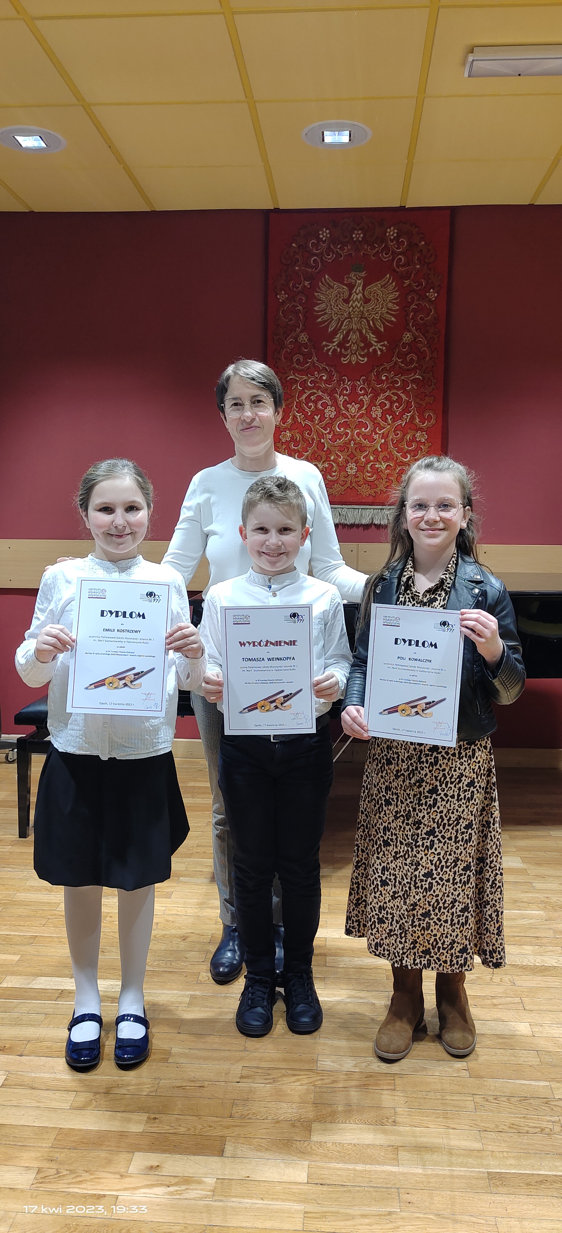17 kwietnia 2023 roku uczniowie: Emilia Kostrzewa, Pola Kowalczyk i Tomasz Weinkopf wzięli udział w XI Turnieju Pisania Dyktand regionu opolskiego adresowanym do uczniów klas III cyklu sześcioletniego szkół muzycznych I stopnia. Uczniowie zostali przygotowani przez panią Małgorzatę Meyse. Wyróżnienie w turnieju zdobył Tomasz Weinkopf. Serdecznie gratulujemy!