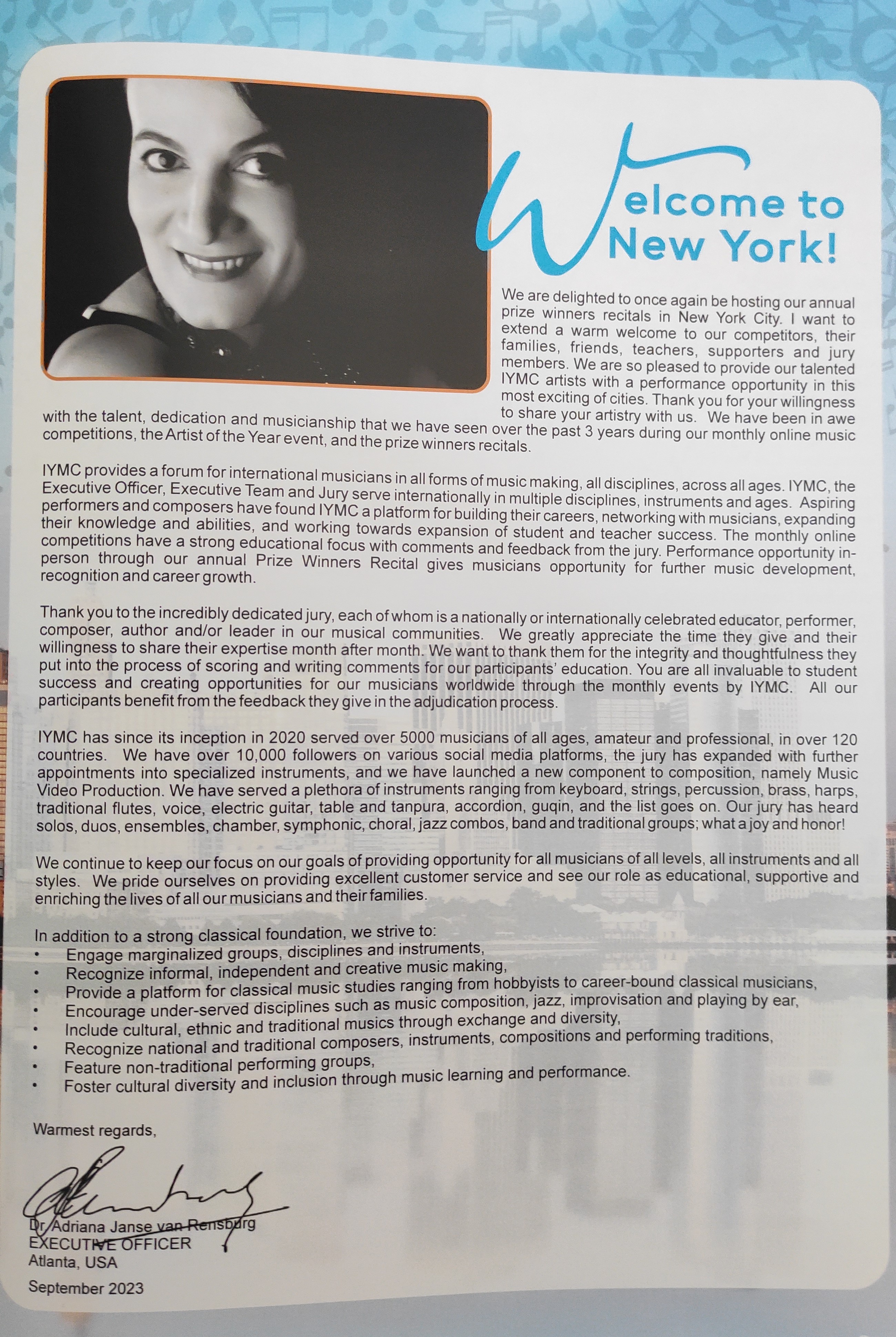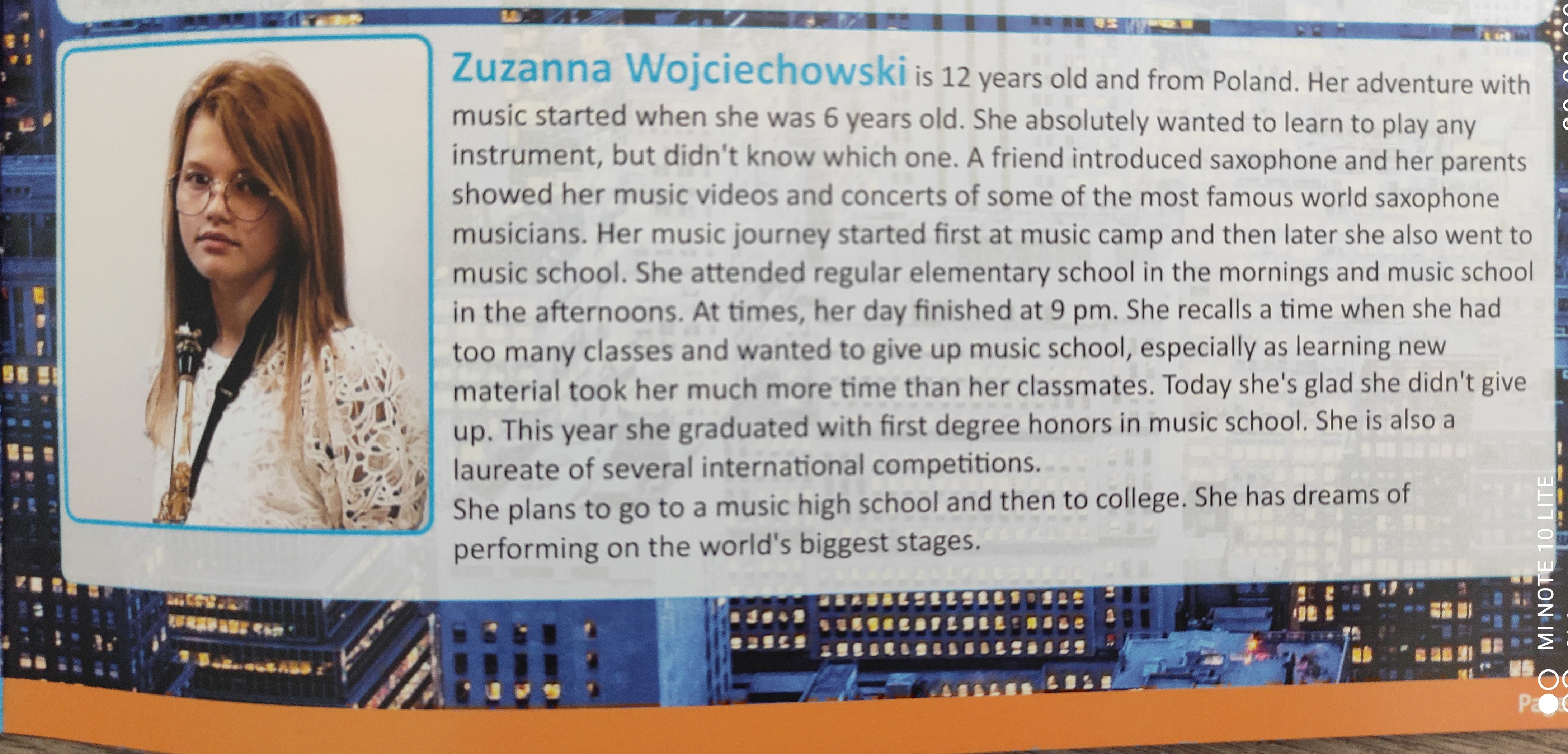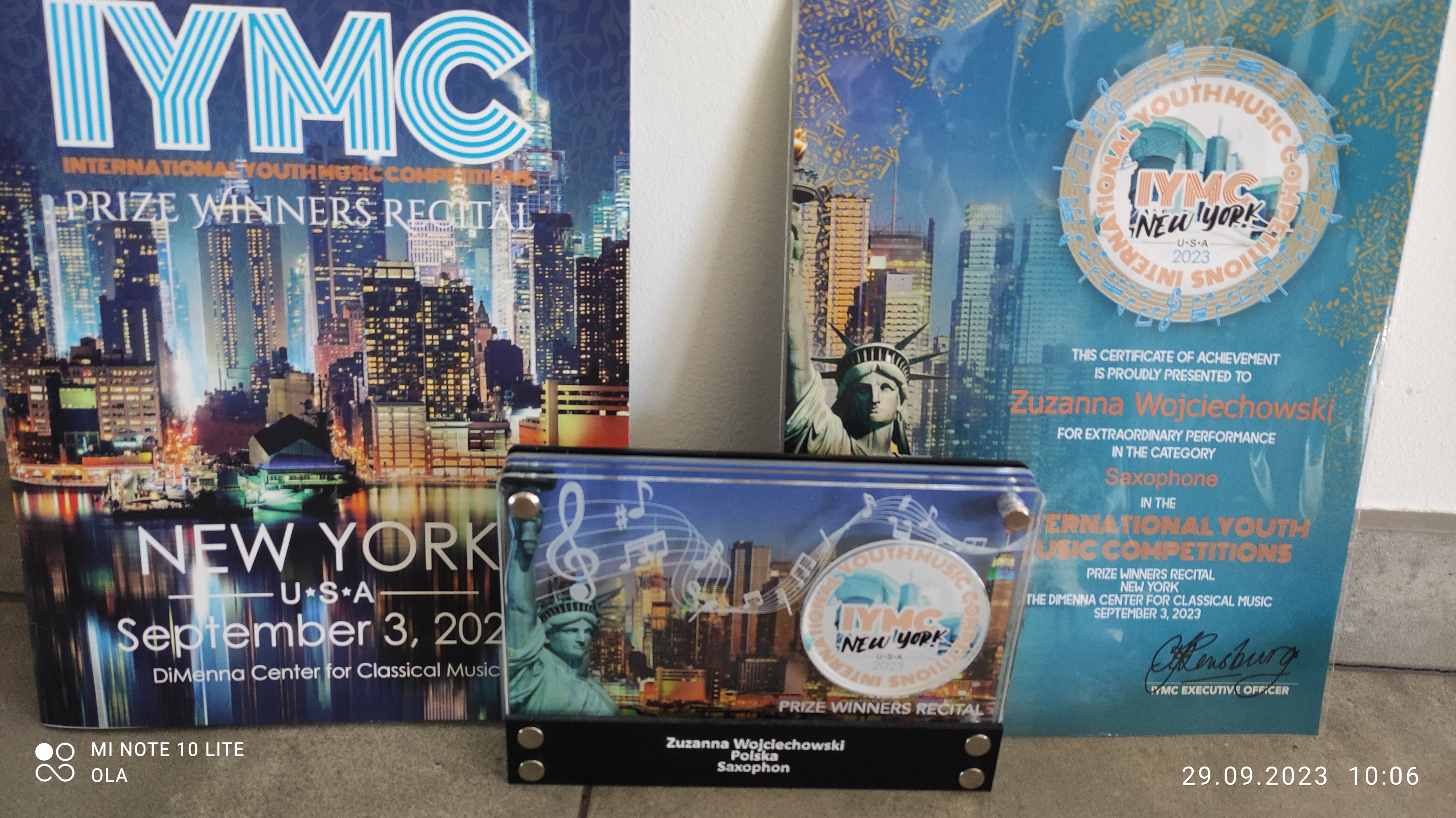 W roku szkolnym 2022/2023 nasza tegoroczna absolwentka Zuzanna Wojciechowski została laureatką w kilku międzynarodowych konkursach online. Był wśród nich również organizowany w USA „Interniational Youth Music Competition”. Dla zwycięzców konkursu, w Nowym Jorku 3 września 2023, odbył się specjalny koncert, w którym Zuzanna wzięła udział.