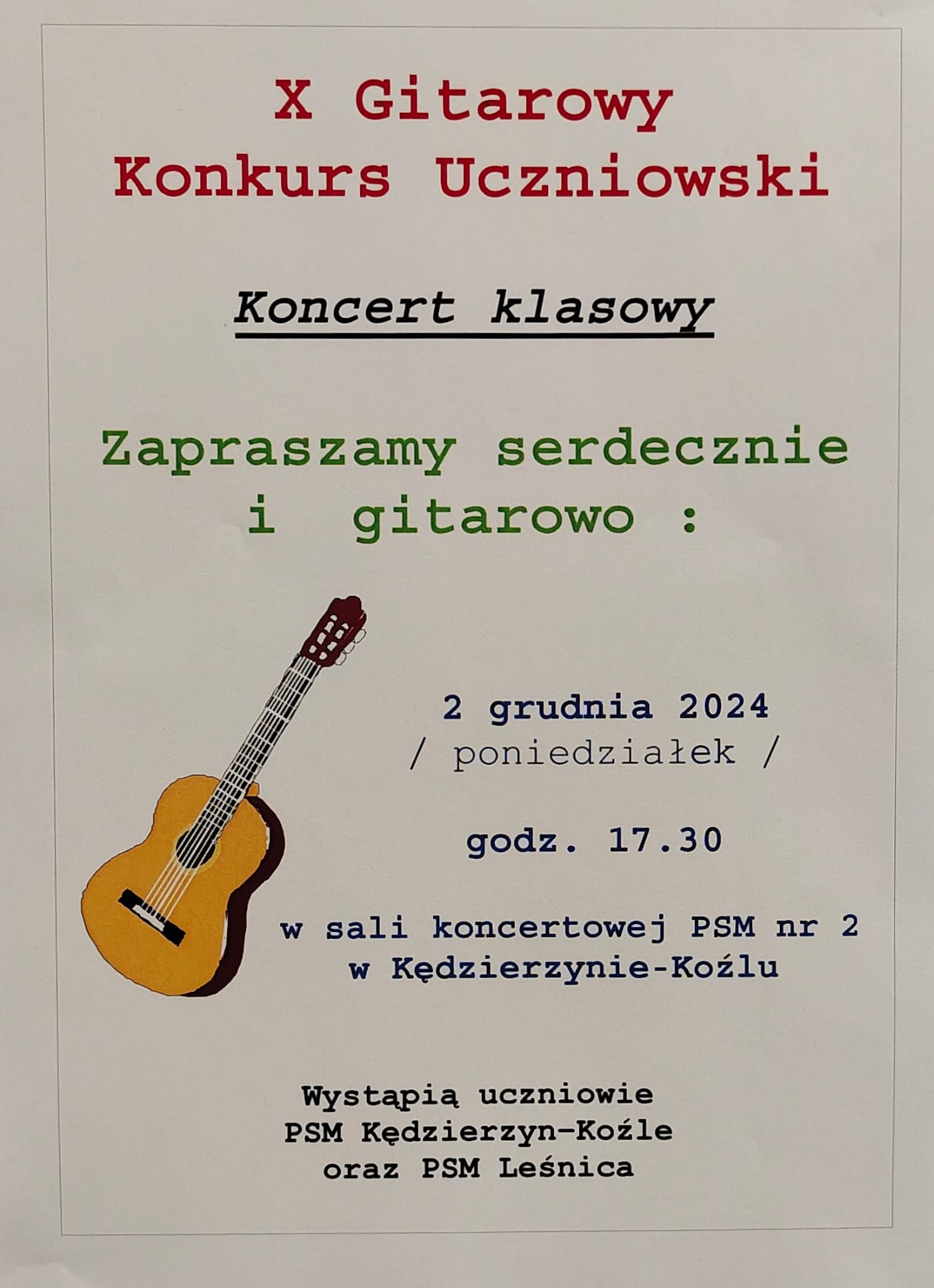 X Gitarowy Konkurs Uczniowski - Koncert klasowy uczniów klasy gitary PSM W Kędzierzynie-Koźlu oraz Leśnicy