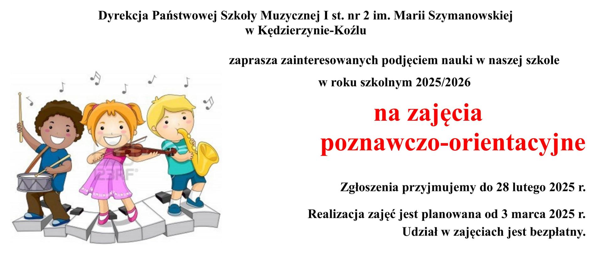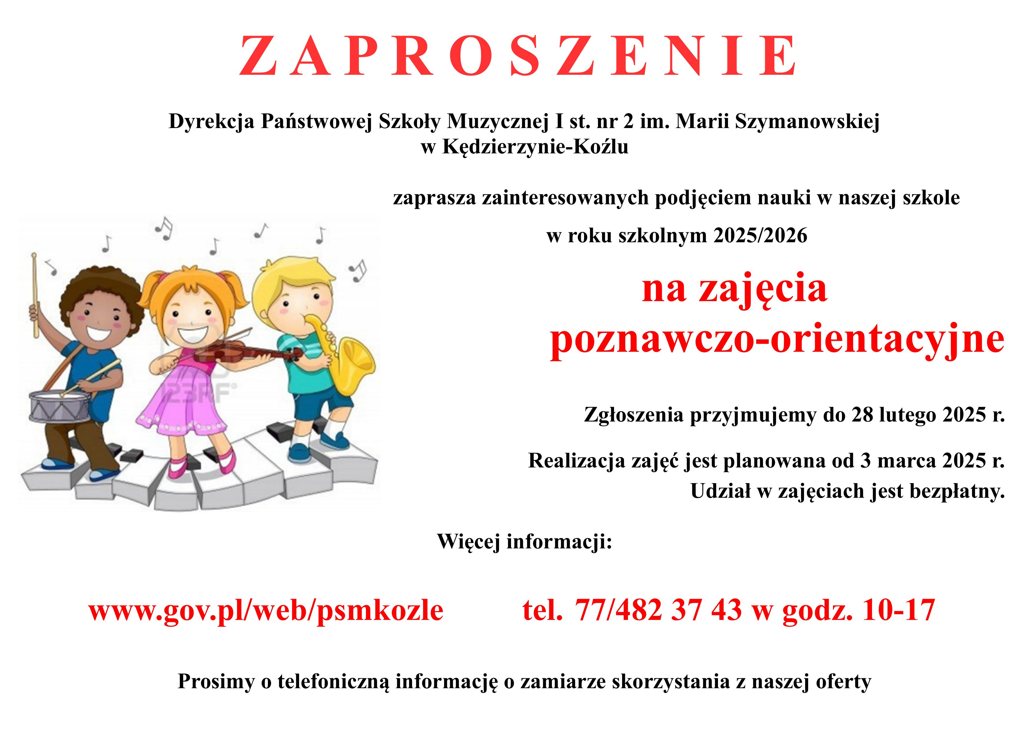Dyrekcja Państwowej Szkoły Muzycznej I st. nr 2 im. Marii Szymanowskiej w Kędzierzynie-Koźlu zaprasza wszystkich zainteresowanych podjęciem nauki w naszej szkole w roku szkolnym 2025/2026 na zajęcia poznawczo-konsultacyjne