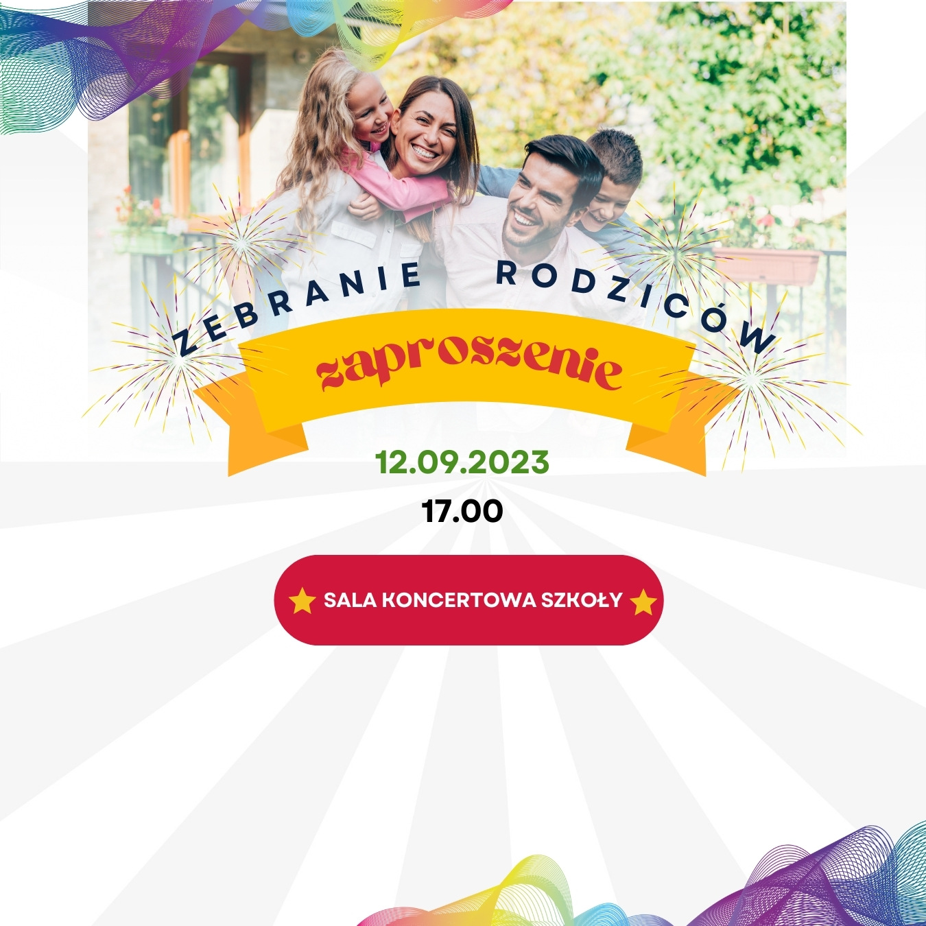 Zapraszamy rodziców uczniów na spotkanie z dyrektorem szkoły we wtorek 12 września o godzinie 17.00. Zebranie odbędzie się w sali koncertowej
