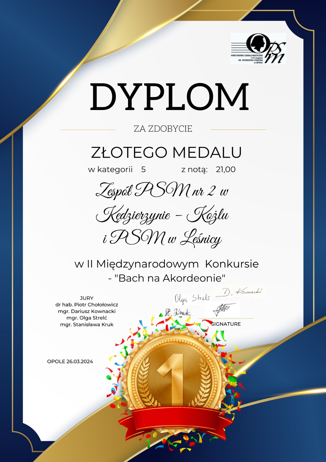 Złoty Medal dla zespołu akordeonowego na Międzynarodowym Konkursie "Bach na akordeonie" w Opolu